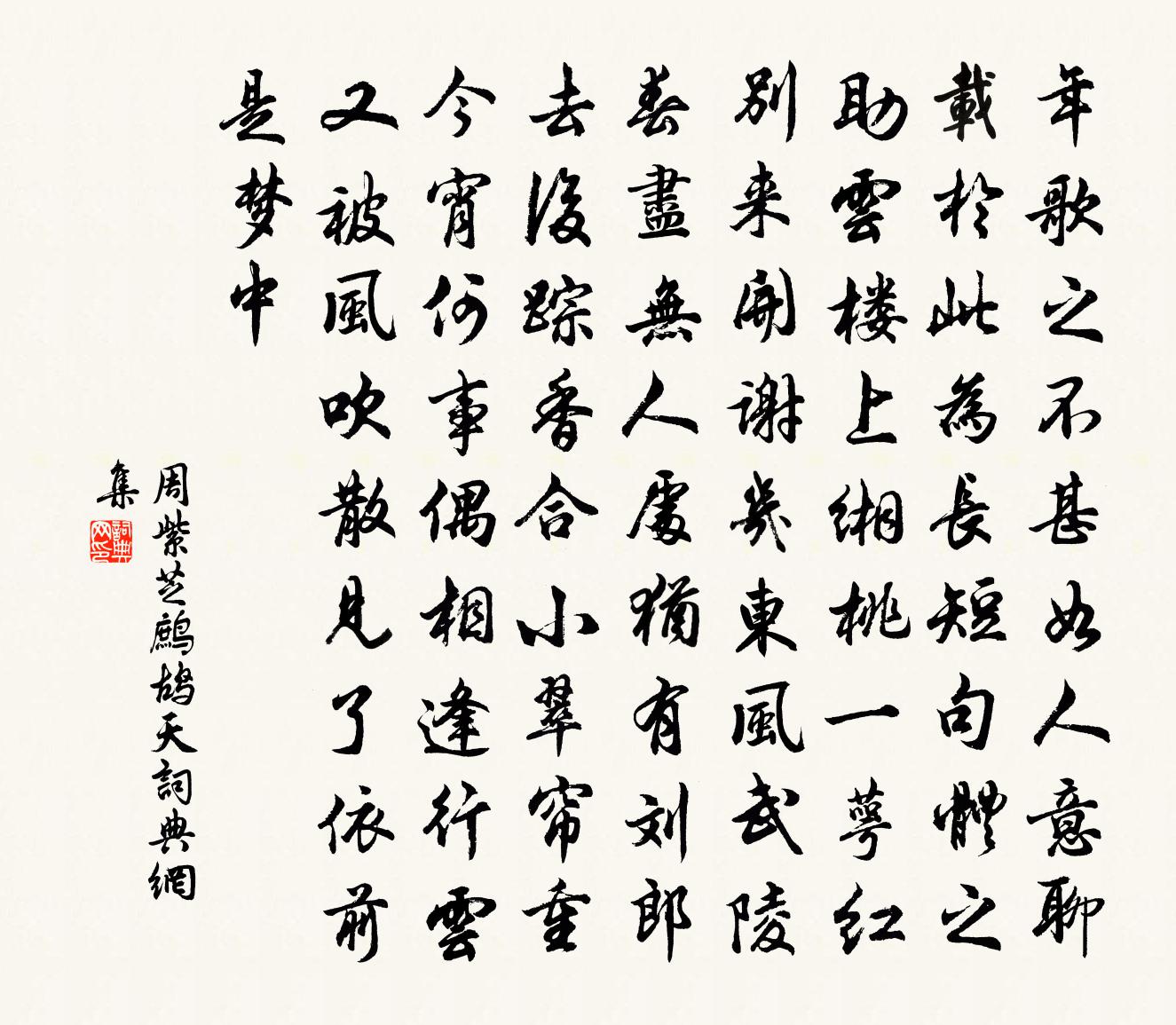 樓上緗桃一萼紅。別來開謝幾東風。武陵春盡無人處,猶有劉郎去後蹤。