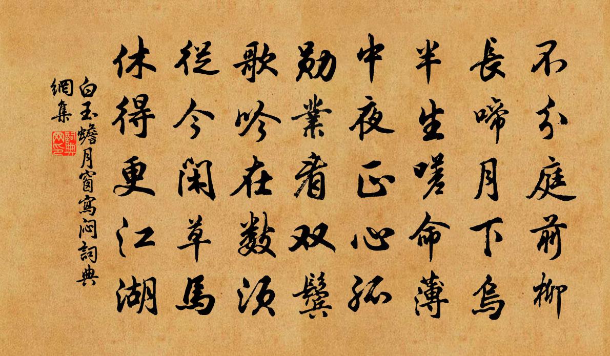 詩詞名句歷史字典書法欣賞書法字典國語詞典說文解字康熙字典古漢語字典標 題 作 者 詩 句 月窗寫悶作者:白玉蟾 朝代:宋代月窗寫悶原文不分庭前柳,長啼月下烏。半生嗟命薄,中夜正心孤。勳業看雙鬢,歌吟在數須。從今閒草馬,休得更江湖。詩詞問答問:月窗寫悶的作者是誰?答:白玉蟾問:月窗寫悶寫於哪個朝代?答:宋代問:月窗寫悶是什麼體裁?答:五律白玉蟾月窗寫悶書法欣賞月窗寫悶書法作品詩詞推薦永嘉試院謝曾使君送酒樓鑰〔宋代〕脫身場屋幾春秋,故步重尋我自羞。閉置有如三日婦,畫成應遣一生愁。與錢誰是老司業,送酒更無賢郡侯。掩卷送王伯初通判婺州梅堯臣〔宋代〕隱侯沒來久,八詠無繼作。星宿少光芒,虹霓掛樓角。邇來數百年,才彥森台閣。君平請是行,有意在岩壑。手持秋日與諸君馬頭山登高歐陽修〔宋代〕晴原霜後若榴紅,佳節登臨興未窮。日泛花光搖露際,酒浮山色入樽中。金壺恣灑毫端墨,玉麈交揮席上風。惟有讀趙張嵲〔宋代〕漫漫積雪被崗坻,宜主當時有暗期。忽見梅花照夜發,只疑猶待射鵰兒。念奴嬌趙師律〔宋代〕鏡天露洗,盪仁風,滿縣正開桃李。無訟堂深睛畫永,簾卷鵝山濃翠。吏散棠陰,鳥啼花散,簫鼓弦歌地。印封碧贈方處士李群玉〔唐代〕白衣方外人,高閒溪中鶴。無心戀稻粱,但以林泉樂。赤霄終得意,天池俟飛躍。歲晏入帝鄉,期君在寥廓。暮到張氏園和壁間舊題黃庭堅〔宋代〕邵平不見見園瓜,三徑還尋二仲家。莫道暫來無所得,未秋先已碧蓮華。步溪頭趙蕃〔宋代〕草軟沙平路不泥,岸巾扶策步循堤。江南春事信能早,正月已聞林鳥啼。交秋不雨戴表元〔宋代〕淤水飛成雨,焦田灌作秋。江潮雙趼底,伏蠟肩頭。蝦螺知何罪,蛟龍自不憂。吳兒有高廩,正盪采菱舟。感春申君張祜〔唐代〕薄俗何心議感恩,諂容卑跡賴君門。春申還道三千客,寂寞無人殺李園。代同舍上黃相生辰三首仲並〔宋代〕列宿東南夜有輝,門弧此際誕英奇。晏嬰儉德人皆仰,召虎中興日可斯。名譽雅為天下望,孤忠自結聖君知。大椿傷歌行(元和中,楊憑貶臨賀尉)張籍〔唐代〕黃門詔下促收捕,京兆尹系御史府。出門無復部曲隨,親戚相逢不容語。辭成謫尉南海州,受命不得須臾留。身著游普向十首陳造〔宋代〕日冒風埃鬢腳黃,歸懷絆驥可能忘。誰知碧嶺蒼雲外,占斷人間五月涼。繡州張相公見訪貫休〔唐代〕德符唐德瑞通天,曾叱讒諛玉座前。千襲彩衣宮錦薄,數床御札主恩偏。出師暫放張良箸,得罪惟撐范蠡船。未報春霽(春晴)胡浩然〔宋代〕遲日融和,乍雨歇東郊,嫩草凝碧。紫燕雙飛,海棠相襯,妝點上林春色。黯然望極。因人天氣渾無力。又聽得。次曾都倉韻釋善珍〔宋代〕學問淵源汲綆深,逢時肯作子光瘖。平泉舊圃多奇石,栗里閒居只素琴。終竟封侯憑燕頷,莫夸對客割牛心。向來塔銘釋如珙〔宋代〕病叟今年六十六,死日將至,火化好,土化好。西堂唯庵貫和尚云:古鄮山中有片荒地,因疊石為塔,為銘曰:天五日晨興說既濟彖殊愜因古調錢時〔宋代〕端平元年初復古,歡喜群生脫危阻。蠶香麥熟喧里閭,蒲糝艾花照樽俎。我本宜俗俗不宜,未學痴兒□蠅虎。朝來贈彭器資王安石〔宋代〕鄱水滔天竟東注,氣澤所鍾賢可慕。文章浩渺足波瀾,行義迢迢有歸處。中江秋浸兩崖間,逆洄與我相往還。我挹次韻徐宰題岳王祠方岳〔宋代〕殺氣猶纏岳字旗,秋風鐵馬已南歸。和之一字誤人國,今且百年遭禍機。白骨自荒公論在,青山良是物情非。羊腥名句推薦殺一無罪,非仁也;非其有而取之,非義也。孟子《孟子·盡心章句上·第三十三節》 信者人之乾也,義者行之節也。劉向《列女傳·貞順傳·陳寡孝婦》 桃花塢裏桃花庵,桃花庵裏桃花仙。唐寅《桃花庵歌》 美人慵翦上元燈,彈淚倚瑤瑟。朱敦儒《好事近·春雨細如塵》 好風朧月清明夜,碧砌紅軒刺史家。白居易《清明夜》 一念慈祥,可以醞釀兩間和氣;寸心潔白,可以昭垂百代清芬。洪應明《菜根譚·概論》 崑山玉碎鳳凰叫,芙蓉泣露香蘭笑。李賀《李憑箜篌引》 義膽包天,忠肝蓋地,四海無人識。施耐庵《念奴嬌·天南地北》 寒波淡淡起,白鳥悠悠下。元好問《潁亭留別》 還怕掩、深院梨花,又作故人清淚。吳文英《無悶·催雪》