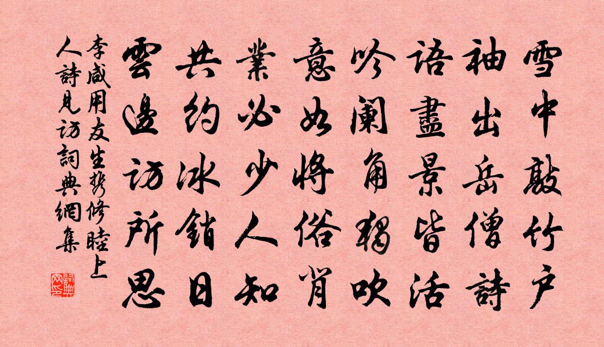 - 庭前雪壓松桂叢,廊下點點懸紗籠。