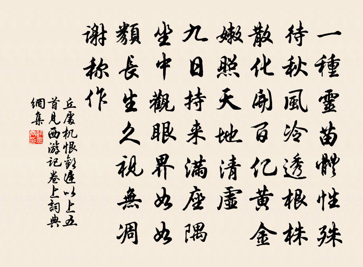 詩詞名句歷史字典書法欣賞書法字典國語詞典說文解字康熙字典古漢語字典標 題 作 者 詩 句 恨歡遲 以上五首見西遊記卷上作者:丘處機 朝代:元代原文一種靈苗體性殊。待秋風、冷透根株。散化開、百億黃金嫩,照天地清虛。九日持來滿座隅。坐中觀、眼界如如。類長生、久視無凋謝,稱作詩詞問答問:《恨歡遲 以上五首見西遊記卷上》的作者是誰?答:丘處機問:該詩寫於哪個朝代?答:元代問:該詩是什麼體裁?答:詞書法欣賞恨歡遲 以上五首見西遊記卷上書法作品詩詞推薦總頌釋師體〔宋代〕釋迦觀音,文珠普賢。驀鼻牽來,作一串穿。橫拖倒拽,痛報深冤。彌天罪過,一任流傳。轉運彭季長學士小集數辭宴集宋祁〔宋代〕此日疾為解,遂將杯酒疏。多愁庾開府,苦瘦沈尚書。倦曲琴襓後,霏香藥裹餘。莫令詩思劇,正是落花初。宿牧牛亭秦太師墳庵楊萬里〔宋代〕兩關只有一樓侯,瀛館寧無再帝丘。天極八重心未死,台星三點坼方休。只看壁後新亭策,恐作栘中屬國羞。今日十疊劉克莊〔宋代〕霜搞皜千林凍欲僵,經旬不爨只餐香。何曾轉授休糧訣,卻是單傳屑玉方。漁父詞佚名〔宋代〕江上浪花飛灑天。拍階鞺EC61屋如船。月不夜,水無邊。何處笛聲人未眠。送謝希深學士北使歐陽修〔宋代〕漢使入幽燕,風煙兩國間。山河持節遠,亭障出疆閒。征馬聞笳躍,雕弓向月彎。禦寒低便面,贈客解刀環。鼓角長樂宮孟浩然〔唐代〕秦城舊來稱窈窕,漢家更衣應不少。紅粉邀君在何處,青樓苦夜長難曉。長樂宮中鍾暗來,可憐歌舞慣相催。歡娛范陽驛范成大〔宋代〕郵亭偪仄但宜冬,恰似披裘坐土空。枕上驚回丹闕夢,屋頭白塔滿鈴風。示從子樓鑰〔宋代〕東院敲棋西院琴,固知猶勝別勞心。少年不比老痴叔,且向書窗惜寸陰。次省齋韻覓友梅縈笑集不蒙見惠再借韻楊公遠〔宋代〕巨編藏古錦,風雅續遺音。雷電欲下取,辟易不敢侵。真趣誰領會,一如陶潛琴。所言正而大,詎比鄭聲淫。疑有病中絕句范成大〔宋代〕石鼎颼颼夜煮湯,亂拖芝術斗溫涼。化兒幻我知何用?只與人間試藥方。洪丞相輓辭二首楊萬里〔宋代〕乾道扶初旭,中台煥五雲。才登右丞相,巳拜大觀文。胡不遲暮月,看渠集茂勛。一朝驚玉折,千載嘆芝焚。納火禮祀大辰十二首佚名〔宋代〕神靈降鑒,天地迴旋。惟聲薦矣,媽醉歆焉。諸宰斯入,式禮莫愆。隤祉降祥,天子萬年。山居閒思羅與之〔宋代〕雲散山月吐,星稀山月高。相羊負露底,望月誦離騷。扈從鳳泉和崔黃門喜恩旨解嚴罷圍之作蘇頲〔唐代〕輦路岐山曲,儲胥渭水湄。教成提將鼓,禮備植虞旗。不取從畋樂,先流去殺慈。舜韶同舞日,湯祝盡飛時。物應翠蛟亭吳某〔宋代〕蒼崖決水下雷霆,掉尾蜿蜒不暫停。傍作翠蛟猶未稱,不如喚作舞蛟亭。羽師院假山強至〔宋代〕累石作危峰,軒然曲沼中。山形在眉睫,人意自衡嵩。影駭魚蝦避,路疑猨鳥通。宦途尤巧險,匠手莫言工。詠龍舒岳祥〔宋代〕曾見老人潭上坐,忽然不見石泓深。至今月白風清夜,潭底時聞似笛吟。烏頭金翅賈似道〔宋代〕烏頭青項翅金黃,腿腳班狸肉帶蒼。牙鉗更生烏紫色,諸蟲見了豈能當。論語絕句一百首張九成〔宋代〕哀公真自不尋常,雖是年飢亦較量。二猶不足如何徹,紬繹斯言味更長。名句推薦江湖多風波,舟楫恐失墜。杜甫《夢李白二首·其二》 帝鄉三千里,杳在碧雲間。李白《登敬亭北二小山余時送客逢崔侍御並登此地》 一時輕信人言語.自有明人話不平。馮夢龍《警世通言·卷四》 柳葉隨歌皺,梨花與淚傾。黃庭堅《南歌子·槐綠低窗暗》 酒已都醒,如何消夜永!周邦彥《關河令·秋陰時晴漸向暝》 道同方獲其利,道異惟受其害。來俊臣《羅織經·察奸卷第八》 借問此何時?春風語流鶯。李白《春日醉起言志》 玉爐香,紅蠟淚,偏照畫堂秋思。溫庭筠《更漏子·玉爐香》 高梧百尺夜蒼蒼,亂掃秋星落曉霜。鄭燮《詠梧桐》 卻愁擁髻向燈前,說不盡、離人話納蘭性德《一絡索·過盡遙山如畫》