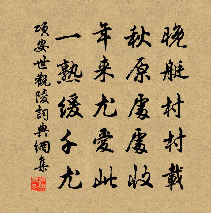 詩詞名句歷史字典書法欣賞書法字典國語詞典說文解字康熙字典古漢語字典標 題 作 者 詩 句 觀陵作者:項安世 朝代:宋代觀陵原文晚艇村村載,秋原處處收。年來尤愛此,一熟緩千尤。詩詞問答問:觀陵的作者是誰?答:項安世問:觀陵寫於哪個朝代?答:宋代項安世觀陵書法欣賞觀陵書法作品詩詞推薦斗百花近拍仲殊〔宋代〕九鳳嘯歌苑轉。鶴舞長生排遍。采衣朱紱。醉挹綺園彭羨。香在雲頭,星宮壽紀重新,東斗瑞光昏見。嘉慶留西宴和黃德欽韻贈公路二孫劉子翬〔宋代〕佩{蝶蟲換角}趨蹌政妙年,階庭蘭玉固天然。人間百世皆由學,惟有讀書如子賢。寄歐陽侍郎(時在嘉州饋遺)齊己〔唐代〕又聞繁總在嘉州,職重身閒倚寺樓。大象影和山面落,兩江聲合郡前流。棋輕國手知難敵,詩是天才肯易酬。畢竟宿西京府署晚游東池韓維〔宋代〕牢落悲春事,蕭條作晚游。清光溢平沼,涼思近高樓。碧樹森將合,朱欄渺若浮。公來慰羈寓,華月許移舟。逆旅題壁,次周伯恬原韻龔自珍〔清代〕名場閱歷莽無涯,心史縱橫自一家。秋氣不驚堂內燕,夕陽還戀路旁鴉。東鄰嫠老難為妾,古木根深不似花。何日寄華嚴賾講師釋紹曇〔宋代〕半生不睹德雲翁,懸想經行在別峰。破一微塵相見了,揭翻華藏十三重。滿江紅佚名〔宋代〕浪蕊浮花,當不住、晚風吹了。微雨過,池塘飛絮,一簾晴畫。寂寂山光春似夢,依依草色熏如酒。近新來、怕上烏夜啼程垓〔宋代〕牆外雨肥梅子,階前水繞荷花。陰陰庭戶薰風滿,水紋簟、怯菱芽。春盡難憑燕語,日長惟有蜂衛。沈香火冷珠簾論俗十二首劉子翬〔宋代〕茲鄉山水佳,昔乃為盜窟。吾盧已煨燼,荒草牆兀兀。牆東大梨樹,惟此為舊物。火燒枝葉盡,老本更奇崛。眾鳥郡齋暇日辱常州陳郎中使君早春晚坐水西館書事詩…酬之白居易〔唐代〕新年多暇日,晏起褰簾坐。睡足心更慵,日高頭未裹。徐傾下藥酒,稍爇煎茶火。誰伴寂寥身?無弦琴在左。遙思思歸八絕胡寅〔宋代〕昨日春風花滿山,回頭秋葉錦斑斑。終年竅綠慚憂寄,何事遲留久未還。雪夜陸游〔宋代〕村路雪泥人斷行,佛燈一點絳紗明。山前棲鶻歸何晚,磔磔風傳勁翮聲。口占示禪師王安石〔宋代〕去歲別南嶽,前年返泐潭。臨機一句子,今日遇同參。垂虹橋林景熙〔宋代〕地坼東吳海脈連,畫橋兩跨晴川。影翻河漢蛟龍國,壓江湖螮蝀天。幾處征帆浮日月,四洲譙角隔風煙。三高遠矣臨江曉行真山民〔宋代〕茅舍亂雞聲,疏林淡見星。霜輕留草綠,霧暗失山青。蹤跡去來燕,交遊聚散萍。浮生原是客,不必恨飄零。寄蔣攸縣礪二首趙蕃〔宋代〕湘山越嶺縱懷歸,可廢當年靡鹽詩。府主甚賢賓得士,豈憂磨磷涅能緇。摘星樓九日登臨姜塘〔明代〕重陽佳節意休休,與客攜壺共上樓。滿目山河增感慨,一時風景寄遨遊。武公不但歌淇澳,賢女猶能唁衛侯。更有寶氣亭三首趙蕃〔宋代〕西下扁舟浩所經,暫梯堤石上津亭。偶從長老詢遣跡,說道神遊尚炳靈。十報恩 上街求乞馬鈺〔元代〕人人休惜一文錢。好與貧兒且結緣。暗暗還賢增萬倍,明明助我養三田。舍慳自是開心地,割愛方能達妙玄。一日溪庵十首劉克莊〔宋代〕戶外履綦常不到,手中鋤柄少曾閒。古時廢地今花塢,昨日荒陂忽蓼灣。牧馬童乖能識路,操蛇神黠怕移山。顏曾名句推薦眾中聞謦欬,未語知鄉里。蘇軾《送金山鄉僧歸蜀開堂》 運往無淹物,年逝覺已催。謝靈運《歲暮》 至今不會天中事,應是嫦娥擲與人。皮日休《天竺寺八月十五日夜桂子》 情由憶生,不憶故無情。房玄齡《晉書·列傳·第六十四章》 若為化得身千億,散上峰頭望故鄉。柳宗元《與浩初上人同看山寄京華親故》 不覺新涼似水,相思兩鬢如霜。劉辰翁《西江月·新秋寫興》 漢將歸來虜塞空,旌旗初下玉關東。戎昱《塞下曲》 樂聽其音則知其俗,見其俗則知其化。劉安及其門客《淮南子·主術訓》 相逢不盡平生事,春思入琵琶。劉迎《烏夜啼·離恨遠縈楊柳》 花門樓前見秋草,豈能貧賤相看老。岑參《涼州館中與諸判官夜集》