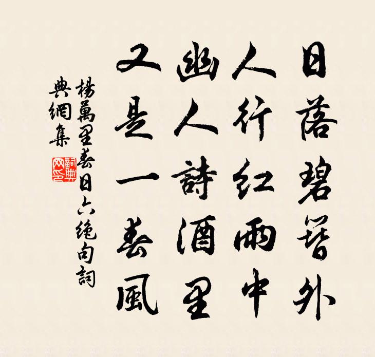 日落碧簪外,人行紅雨中。幽人詩酒里,又是一春風。