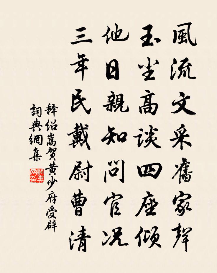 詩詞名句歷史字典書法欣賞書法字典國語詞典說文解字康熙字典古漢語字典標 題 作 者 詩 句 賀黃少府受辟作者:釋紹嵩 朝代:宋代賀黃少府受辟原文風流文采舊家聲,玉塵高談四座傾。他日親知問官況,三年民戴尉曹清。詩詞問答問:賀黃少府受辟的作者是誰?答:釋紹嵩問:賀黃少府受辟寫於哪個朝代?答:宋代釋紹嵩賀黃少府受辟書法欣賞賀黃少府受辟書法作品詩詞推薦滿庭芳(游湖)史浩〔宋代〕和靖重湖,知章一曲,浙江左右為鄰。繡韉彩艦,只許日尋春。正好厭厭夜飲,都寂靜、沒個遊人。夫何故,歡闌一雄雞立籠上一雌覆雛於籠釋善珍〔宋代〕田翁養雞竹作籠,老雌戀雛不顧雄。催租無人歲常豐,殺身為黍堪酬翁。送閻少隱同其弟伯子宣子赴試淮南為一月之別仲並〔宋代〕街頭日夜催槐黃,去去歸帆如許忙。我病公行欠卮酒,少遲飲至共傳觴。又和六日四老會司馬光〔宋代〕萸房迎令凶,菊蕊入芳筵。華燭初長夜,清霜未冷天。悲風咽橫吹,驟雨迭繁弦。聊附鄒枚客,敢希園綺賢。憶王孫 詠柳善住〔元代〕一株閒伴霜陵橋。斜倚東風學舞腰。遊子尋春駿馬驕。欲魂銷。和雨和李誠之待制宴別西湖蘇轍〔宋代〕東來亦何恃,夫子此分符。談笑萬事畢,樽罍眾客俱。高情生遠岫,清興發平湖。坐使羈游士,能忘歲月徂。縱歡送許季韶粹桂林李洪〔宋代〕尺五天邊看頡頏,參辰出處九星霜。未令掌誥吟紅藥,屢喜嘉言貢皂囊。懷紱寓居欣會弁,監州歲晚客殊方。柱林拜羅氏百歲母之明日主人舉酒客張千載心賦詩文天祥〔宋代〕翠微三島近,畫閣五雲橫。春水鷗聲滑,夕陽鴉背明。尊前持一笑,花下臥餘酲。曾見瑤池母,不為虛此生。上巳後一日登快哉亭作賀鑄〔宋代〕上巳信嘉辰,流觴傳舊俗。良游悵不遂,吏局方有屬。東風吹曉雨,萬竅嗥林麓。疑有泊舟人,狂歌河女曲。逾期洞仙歌(丁卯八月病中作)辛棄疾〔宋代〕賢愚相去,算其間能幾。差以毫釐繆千里。細思量義利,舜跖之分,孳孳者,等是雞鳴而起。味甘終易壞,歲晚還偈頌十二首釋如淨〔宋代〕秋風涼,岩桂香。未歸客,思故鄉。吾無隱乎爾,捉賊須捉贓,舞蝶游蜂過短牆。逍遙詠宋太宗〔宋代〕天界殊勝理,凡愚不易知。曩因誰可究,淺近故懷疑。的實歸真性,區邪入正持。樂耶親大道,報就自然之。獻王威儀儲光羲〔唐代〕入與真主言,有騎天馬來。但有華清宮,不用神明台。肅肅長自閒,門靜無人開。送家叔通守光山二首李洪〔宋代〕彼美光山郡,風流楚相城。寢丘聞漢志,潘國尚侯名。泥軾疏榮渥,楓宸眷老成。側聞頒一札,持橐奉承明。京城二十一文天祥〔宋代〕黃屋朔風卷,園林殺氣平。宮殿青門隔,永懷丹鳳城。上晁主客陳師道〔宋代〕兩疏父子共含香,不獨家榮國有光。剩欲展懷因問疾,孰知相對只銜觴。年侵身要兼人健,節近花須滿意黃。從此鬥雞聯句韓愈〔唐代〕大雞昂然來,小雞竦而待。 ——韓愈崢嶸顛盛氣,洗刷凝鮮彩。 ——孟郊高行若矜豪,側睨如伺殆。 ——韓劉僕射東山集學騷江淹〔南北朝〕含秋一顧。眇然山中。檀欒循□。便娟來風。木瑟瑟兮氣芬蒀。石戔戔兮水成文。擿江崖之素草。窺海岫之青雲。蝶戀花 贈李公敏 強村叢書用韓氏玉雨堂藏鈔王結〔元代〕老鶴軒軒心萬里。卻被天風,吹入樊籠里。野態昂藏猶可喜。九皋宵淚流清*。宿鷺窺魚痴計耳。整整丰標,謾說青玉案(和)趙長卿〔宋代〕恍如遼鶴歸華表。閱盡人間巧。天乞一堂山對繞。微波不動,岸巾時照。照見星星好。舞風荷蓋從敧倒。碧樹生涼名句推薦屈指數春來,彈指驚春去。高觀國《卜運算元·泛西湖坐間寅齋同賦》 那作商人婦,愁水復愁風。李白《長干行二首》 舌為利害本,口是禍福門。馮夢龍《醒世恆言·卷二十九》 棠梨葉落胭脂色,蕎麥花開白雪香。王禹偁《村行·馬穿山徑菊初黃》 沽酒清陰時系馬,招涼短檻幾留題。許德溥《西橋柳色》 明月皎皎照我床,星漢西流夜未央。曹丕《燕歌行二首·其一》 不忍覆余觴,臨風淚數行納蘭性德《菩薩蠻·催花未歇花奴鼓》 畫船兒天邊至,酒旗兒風外颭。張養浩《水仙子·詠江南》 東風惡,歡情薄。陸游《釵頭鳳·紅酥手》 一葉浮萍歸大海,為人何處不相逢!吳承恩《西遊記·第四十回》