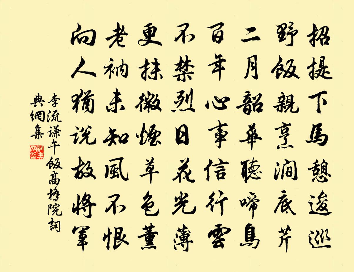 詩詞名句歷史字典書法欣賞書法字典國語詞典說文解字康熙字典古漢語字典標 題 作 者 詩 句 午飯高橋院作者:李流謙 朝代:宋代午飯高橋院原文招提下馬憩逡巡,野飯親烹澗底芹。二月韶華聽啼鳥,百年心事信行雲。不禁烈日花光薄,更抹微菸草色薰。老衲未知風不恨,向人猶說故將軍。詩詞問答問:午飯高橋院的作者是誰?答:李流謙問:午飯高橋院寫於哪個朝代?答:宋代李流謙午飯高橋院書法欣賞午飯高橋院書法作品詩詞推薦偈公六十五首釋鹹傑〔宋代〕四年居此日波波,累及禪和不奈何。今感聖恩林下去,一輪秋月照天河。田家陳師道〔宋代〕雞鳴人當行,犬鳴人當歸。秋來公事急,出處不待時。昨夜三尺雨,灶下已生泥。人言田家樂,爾苦人得知。同師道弟奉親游延平鳳山陳宓〔宋代〕我來一載強,再覿鳳山面。時當秋末垂,群木尚蔥倩。卓彼鸞停姿,清流潔於練。照影眩其儀,世治乃一見。伊予郊廟歌辭。德明興聖廟樂章。亞獻終獻李紓〔唐代〕惟清惟肅,靡聞靡見。舉備九成,俯終三獻。慶彰曼壽,胙撤嘉薦。瘞玉埋牲,禮神斯遍。次胡澹庵題挹翠軒韻王亘〔宋代〕西山排送來,周遭自環翠。俗眼少見之,一覽忘世味。平生三徑心,盍早賦歸計。縱落塵土居,不與章木敵。公餘句宋真宗〔宋代〕該胡聖典通今古,發啟沖年曉典常。越州歌二十首汪元量〔宋代〕脫卻黃袍心莫斯,魏王事業止於斯。孤舟走過揚州去,表奏朝廷乞太師。柳葉詞徐照〔宋代〕嫩葉吹風不自持,淺黃微綠映清池。玉人未識分離恨,折向堂前學畫眉。和鄭制乾謝借居且惠朋樽醉螯詩鄭清之〔宋代〕平生愛山林,里居想王屋。孤月自無朋,斷雲曾不族。詎知莊遵市,儵有賈誼卜。西河就索居,漆園問尊足。翟門次允傑五首許月卿〔宋代〕瓣香曾侍鶴山儔,蜀有鶴林殊匪優。蛻作嬰兒生我室,化為道士掠予舟。相同龜壽□鵬鷃,自混雞群狎鷺鷗。仙子清明感傷戴復古〔宋代〕一笠戴春雨,愁來不可遮。清明思上塚,昨夜夢還家。歸興隨流水,傷心對落花。晉原松下淚,沾灑楚天涯。十二月二十六日趙蕃〔宋代〕水有縈紆何自來,竹能森爽為誰栽。山僧乞飯朝一出,幽子題詩日幾廻。故鶴未妨頻有客,騎驢正爾獨尋梅。得閒恭人強氏輓詞樓鑰〔宋代〕祠部源流遠,來嬪曲阜孫。事夫終婦道,訓子大吾門。頒誥恩光渥,升堂笑語溫。相期送丹旐,馬鬣近周原。嘉陵驛見賈島舊題薛能〔唐代〕賈子命堪悲,唐人獨解詩。左遷今已矣,清絕更無之。畢竟吾猶許,商量眾莫疑。嘉陵四十字,一一是天資。月中行/月宮春周邦彥〔宋代〕蜀絲趁日染乾紅。微暖面脂融。博山細篆靄房櫳。靜看打窗蟲。愁多膽怯疑虛幕,聲不斷、暮景疏鍾。團團四壁小春郊寓目王禹偁〔宋代〕百舌嬌慵未苦啼,雪隨春水下松溪。何人樵樹和雲斫,幾處山田帶雨犁。蜀柳半開鸜鵒眼,海棠深結麝香臍。東風禮五祖大滿禪師塔釋正覺〔宋代〕黃梅果熟,白藕花開。問唯佛性。種異凡胎。衣傳南嶺人將去,松老西山我再來。兩借皮囊成底事,一壺風月湛無歸家李若水〔宋代〕半載長安客意寒,一鞭歸興舊家山。妻孥問我成何事,買得虛名滿世間。天童送深兄歸湖州釋紹曇〔宋代〕采樵深入萬松關,踏破類雲幾朵山。擔折驀知柴束重,掉頭歸唱月彎彎。荷花胡寅〔宋代〕夢到南塘翠蓋稠,奼然得意斂然羞。驚鴻遠映朝霞色,白鷺先窺霽雨秋。裊裊芳馨煩折贈,霏霏涼吹想追游。天花名句推薦曾與美人橋上別,恨無訊息到今朝。劉禹錫《楊柳枝 / 柳枝詞》 才道莫傷神,青衫濕一痕。納蘭性德《菩薩蠻·新寒中酒敲窗雨》 最是多情汴堤柳,春來依舊帶棲鴉!曾棨《維揚懷古》 枯枝無醜葉,涸水吐清泉李白《長歌行》 綠杯紅袖趁重陽。人情似故鄉。晏幾道《阮郎歸·天邊金掌露成霜》 將軍金甲夜不脫,半夜軍行戈相撥,風頭如刀面如割。岑參《走馬川行奉送出師西征 / 走馬川行奉送封大夫出師西征》 石澗凍波聲,雞叫清寒晨。李賀《自昌谷到洛後門》 故國三千里,深宮二十年。張祜《宮詞·故國三千里》 後夜相思,塵隨馬去,月逐舟行。劉過《柳梢青·送盧梅坡》 玉漏銀壺且莫催,鐵關金鎖徹明開。崔液《上元夜六首·其一》
