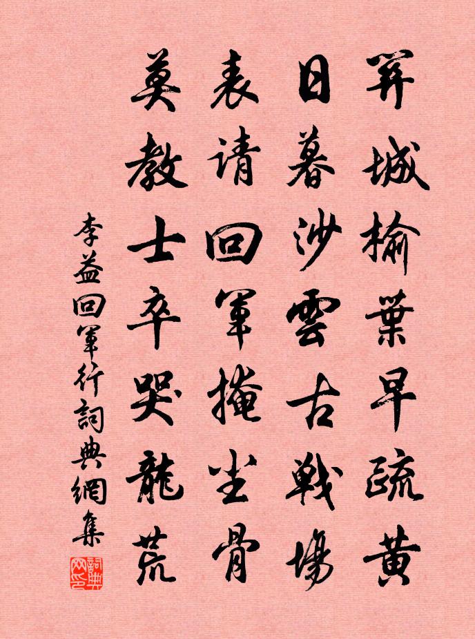 關城榆葉早疏黃,日暮沙雲古戰場。表請回軍掩塵骨,莫教士卒哭龍荒。