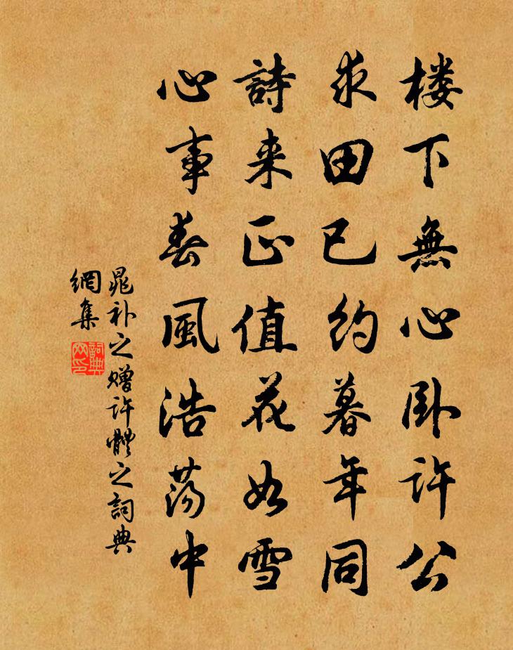 樓下無心臥許公,求田已約暮年同。詩來正值花如雪,心事春風浩蕩中。