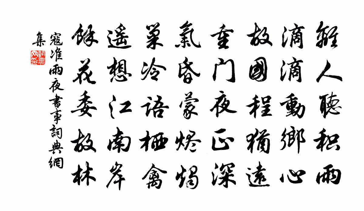 離人聽積雨,滴滴動鄉心。故國程猶遠,重門夜正深。