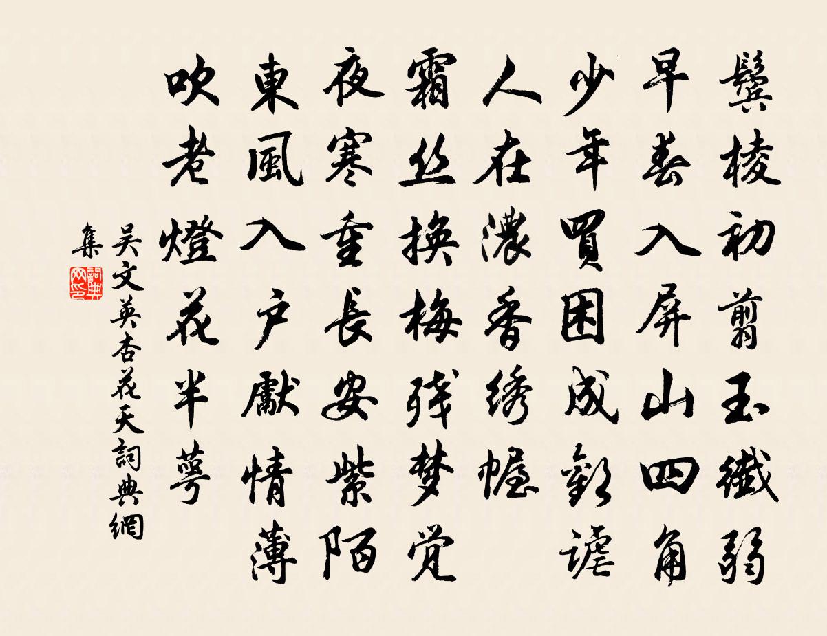 下片“霜絲換”四句,敘老年情景。言如今這位少年已是人老體衰,發如秋霜,處境猶如凋零的梅花,也似黃粱夢醒。雖然身處繁華似錦的臨安都城,但老人的感覺恰如夜深寒重一般壓抑;春風雖象從前一樣吹拂著室中的燈光,然而老人也只感到它只是為了要吹滅燈光,吹殘梅花,而沒有了以前年青時代感受到的春的溫情。