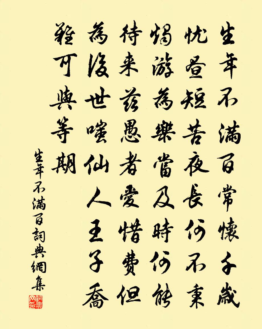 生年不滿百,常懷千歲憂。晝短苦夜長,何不秉燭游!為樂當及時,何能待來茲?愚者愛惜費,但為後世嗤。