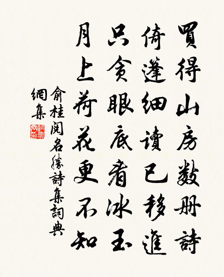詩詞名句歷史字典書法欣賞書法字典國語詞典說文解字康熙字典古漢語字典標 題 作 者 詩 句 閱名勝詩集作者:俞桂 朝代:宋代閱名勝詩集原文買得山房數冊詩,倚篷細讀已移進。只貪眼底看冰玉,月上荷花更不知。詩詞問答問:閱名勝詩集的作者是誰?答:俞桂問:閱名勝詩集寫於哪個朝代?答:宋代俞桂閱名勝詩集書法欣賞閱名勝詩集書法作品詩詞推薦諸公皆和詩再用韻並屬湛挺之七首趙蕃〔宋代〕翰墨平生友,江山數面親。誦騷悲楚國,訪古失秦民。丘壑豈無趣,塵埃空此身。風行思數數,糧食厭頻頻。病目林昉〔宋代〕病目兩旬余,深齊只另居。客知多寄藥,妻勸少看書。畏熱燈羞近,貪涼發屢梳。平生心喜菊,因此賸栽鋤。苦竹行曾季貍〔宋代〕碧草送春晚,綠陰迎夏涼。輕風搖細麥,淺水出新秧。歲月催人老,田園引興長。一廛如可辦,吾亦學耕桑。野飲陸游〔宋代〕青山千載老英雄,濁酒三杯失厄窮。訪古頹垣荒塹里,覓交屠狗賣漿中。平堤漸放春蕪綠,細浪遙翻夕照紅。已把至大梁卻寄匡城主人岑參〔唐代〕一從棄魚釣,十載乾明王。無由謁天階,卻欲歸滄浪。仲秋至東郡,遂見天雨霜。昨日夢故山,蕙草色已黃。平明次韻和景彝秋興梅堯臣〔宋代〕日月機上梭,年華東注波,未驚涼葉墜,已見白髮多。牧馬歸方健,調弓力漸和,籬邊剩曉菊,陶令奈貧何。菩薩蠻舒亶〔宋代〕憶曾把酒賞紅翠。舞腰柳弱歌聲細。縱馬杏園西。歸來香滿衣。寶車空犢駐。事逐孤鴻去。搔首立江乾。春蘿掛暮相見歡向子諲〔宋代〕腰肢一縷纖長。是垂楊。泥泥風中衣袖、冷沈香。花如頰。眉如葉。語如簧。微笑微顰相惱、過迴廊。歸去來集字十首蘇軾〔宋代〕與世不相入,膝琴聊自歡。風光歸笑傲,雲物寄游觀。言話審無倦,心懷良獨安。東皋清有趣,植杖日盤桓。移居北新橋彥質惠詩和答程公許〔宋代〕繡段輕投報苦遲,隔關那復共襟期。艱虞敢自求安宅,懶慢欣知不入時。王粲登樓初有賦,杜陵屏跡可無詩。邊聲和范公希文懷慶朔堂陳希亮〔宋代〕弱柳奇花遞間栽,紅芳綠翠對時開。主人當日孤真賞,魂夢還應屢到來。句陳通方〔唐代〕應念路傍憔悴翼,昔年喬木幸同遷。贊護教釋印肅〔宋代〕給孤施地,慈化為尊。護人成佛,功德奚論。及第後寄梁燭處士伊璠〔唐代〕繡轂尋芳許史家,獨將羈事達江沙。十年辛苦一枝桂,二月艷陽千樹花。鵬化四溟歸碧落,鶴棲三島接青霞。同袍題嘉佑院東軒林師蒧〔宋代〕到處已無花可吹,東風猶自舞殘枝。山僧只解關門睡,春去春來總不知。再宿次前韻周燾〔宋代〕重來端復解征鞍,清夜溪風六月寒。欲寫經行二年事,平林須入畫圖看。沁園春陳德武〔宋代〕冬夜如年,客枕無眠,怎到天明。待數殘二十五、寒更點,聽餘一百八、曉鐘聲。雨卻敲篷,灘頭激纜,總與離人頌古三十八首釋從瑾〔宋代〕踏翻地軸地不動,推倒天關天更高。穩泛兒船歸少室,至今天下起風濤。寄謝三城太守韓子華舍人邵雍〔宋代〕洛陽自為都,二千有餘年。舉步圖籍中,開目今古間。西北岌宮殿,東南傾山川。照人伊洛清,迎門嵩少寒。水竹六月十五日詣水公庵雨作朱熹〔宋代〕雲起欲為雨,中川分晦明。才驚橫嶺斷,已覺疏林鳴。空際旱塵滅,虛堂涼思生。頹檐滴瀝余,忽作流泉傾。況此名句推薦佇立傷神。無奈輕寒著摸人。朱淑真《減字木蘭花·春怨》 孝當竭力,忠則盡命。周興嗣《千字文·全文》 鐵馬紅旗寒日暮,使君猶寄邊城。周紫芝《臨江仙·送光州曾使君》 文死諫,武死戰。曹雪芹《紅樓夢·第三十六回》 天地相合,以降甘露,民莫之令而自均。老子《老子·道經·第三十二章》 何處寄想思,南風搖五兩。王維《送宇文太守赴宣城》 庭花蒙蒙水泠泠,小兒啼索樹上鶯。貫休《春晚書山家屋壁二首》 一身轉戰三千里,一劍曾當百萬師。王維《老將行》 強自取柱,柔自取束。荀子《荀子·勸學》 無情明月,有情歸夢,同到幽閨。劉基《眼兒媚·秋思》