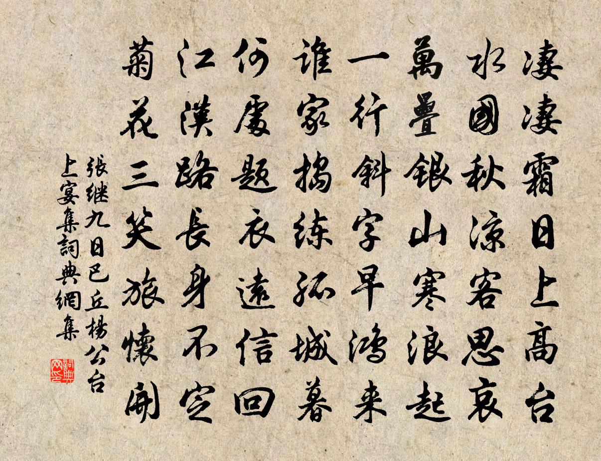 淒淒霜日上高台,水國秋涼客思哀。萬疊銀山寒浪起,一行斜字早鴻來。