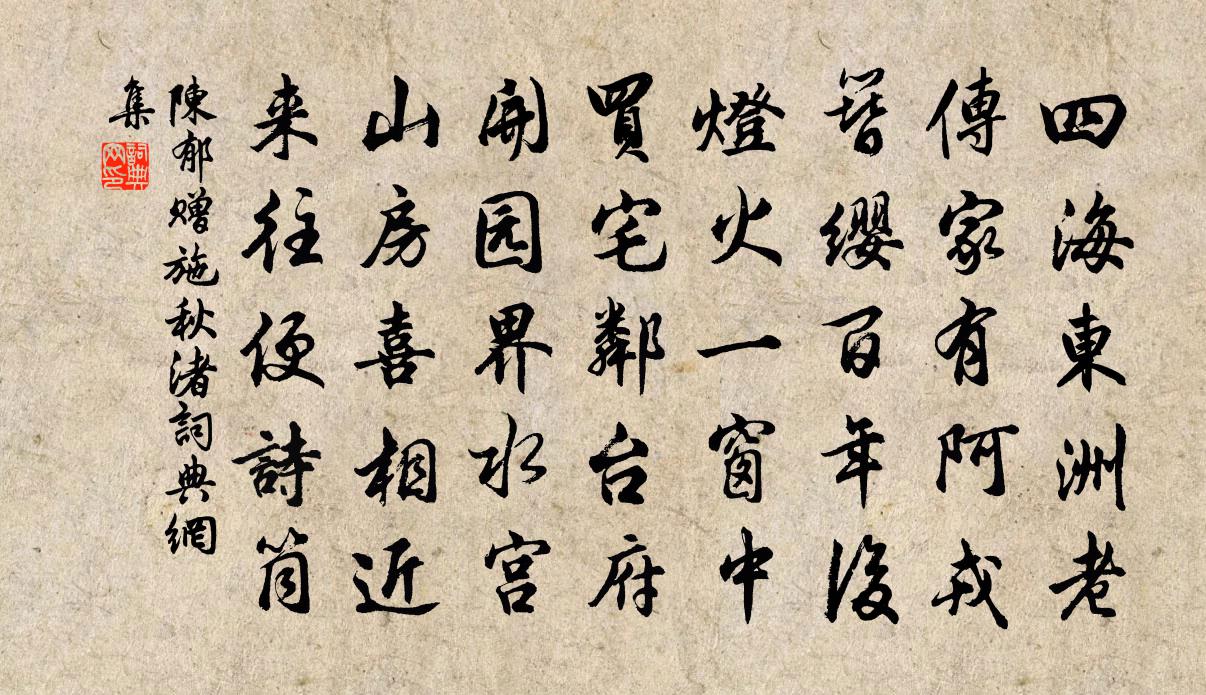 詩詞名句歷史字典書法欣賞書法字典國語詞典說文解字康熙字典古漢語字典標 題 作 者 詩 句 贈施秋渚作者:陳郁 朝代:宋代贈施秋渚原文四海東1/1洲老,傳家有阿戎。簪纓百年後,燈火一窗中。買宅鄰台府,開園界水宮。山房喜相近,來往便詩筒。詩詞問答問:贈施秋渚的作者是誰?答:陳郁問:贈施秋渚寫於哪個朝代?答:宋代陳郁贈施秋渚書法欣賞贈施秋渚書法作品詩詞推薦傷柘枝妓李群玉〔唐代〕曾見雙鸞舞鏡中,聯飛接影對春風。今來獨在花筵散,月滿秋天一半空。晨起陸游〔宋代〕老病少睡眠,臥見天窗白。棲鳥亦已鳴,一一翻去翮。我起將何之,且復守書冊。收歛萬里心,未厭容膝迮。吾家紹興祀太社太稷十七首佚名〔宋代〕乃粒函民,工昭萬古。國有常祀,薦獻式斜。肅肅雍纊,舊章鹹舉。神保聿歸,介我稷黍。孺人林氏輓詞樓鑰〔宋代〕家世甘泉舊,幽閨有令名。賢明教陶侃,勤苦佐淵明。苹澗今保處,鳩桑空復情。誰知悼亡意,揮涕望佳城。登華頂峰孟觀〔宋代〕偶因華頂宿,抬手摘星辰。不敢高聲語,恐尺天上人。乾道七年冊皇太子四首佚名〔宋代〕琱珉瑳瑳,篆金煌煌。對揚於庭,是承是將。星重其暉,日重其光。觀瞻以怪,國有元良。壽張京尹十首彭龜年〔宋代〕翁兒一笑大歡足,雞犬不驚仁意多。欲得使君真實諦,直須堂外識中和。題虎邱顧逢〔宋代〕此山雖小眾山尊,半近吳城半近村。一壑風煙龍窟宅,滿堂巾盔佛兒孫。生公說法台空在,陸羽煎茶井不存。喚起送友人下第歸揚州覲省劉得仁〔唐代〕新柳間花垂,東西京路岐。園林知自到,寢食計相思。雨斷淮山出,帆揚楚樹移。晨昏心已泰,蟬發是回時。嚴陵道上雜詠七首洪咨夔〔宋代〕高高下下客行路,整整斜斜人住家。端的今年蠶較晚,石榴花下響繅車。早秋夜作韋莊〔唐代〕翠簟初清暑半銷,撇簾松韻送輕飆。莎庭露永琴書潤,山郭月明砧杵遙。傍砌綠苔鳴蟋蟀,繞檐紅樹織蠨蛸。不須杏園徐夤〔唐代〕杏苑簫聲好醉鄉,春風嘉宴更無雙。憑誰為謔穆天子,莫把瑤池並曲江。和回山人榴皮題壁舊韻張濡〔宋代〕芒鞋記踏青猶軟,野徑縈紆雪尚余。走筆鋟珉增愧色,可無挽谷一篇書。陪友人中秋夕賞月王安石〔宋代〕海霧看如洗,秋陽望卻昏。光明疑不夜,清瑩欲無坤。掃掠風前坐,留連露下尊。苦吟應到曉,況有我思存。和懽郡重九韻許應龍〔宋代〕鈴齋靜暇鎖棠陰,幽壑何妨窈窕尋。咳唾珠璣輝眾目,錚鏦琴瑟樂賓心。引杯非為黃花醉,設席欣逢皂蓋臨。來歲冷清生活與賦拙何異圍棋酌酒其樂無涯再得一項大受〔宋代〕□帶無遺賞,尋盟乳洞仙。萬山如玉立,三穴自珠聯。局外棋尤審,杯余酒更傳。回頭笑牛女,虹氣直衝天。仙禽送景遜赴階州監稅文同〔宋代〕肅肅彼靈羽,英英下瑤台。揚翹俗采暗,振響仙籟回。凡鳥只斂避,眾人亦驚猜。羅以萬目網,離雙雙翼摧。十載寄侄陳造〔宋代〕擁衾聽良夜,風葉不餘飛。天地清霜冷,江湖旅雁歸。幽人惜短夢,遊子念征衣。窮老人間世,愁城屢合圍。過摩訶池二首宋祁〔宋代〕十頃隋家舊鑿池,池平樹盡但回堤。清塵滿道君知否,半是當年濁水泥。代壽韓平原劉過〔宋代〕衣缽登庸復舊氈,文王尚父趙平原。自從慶曆到今日,只說開禧初改元。朝辟東齋廣東閣,夜看南極照南園。九霞名句推薦玉顏憔悴三年,誰復商量管弦。王建《宮中調笑·團扇》 燈半昏時,月半明時。徐再思《折桂令·春情》 見人惡,即內省。有則改,無加警。李毓秀《弟子規·信》 爭教清淚不成冰?好處便輕別。納蘭性德《好事近·簾外五更風》 天道之數,至則反,盛則衰。管仲《管子·重令》 數里黃沙行客路,不堪回首思秦原。周朴《春日秦國懷古》 相思只在,丁香枝上,豆蔻梢頭。王雱《眼兒媚·楊柳絲絲弄輕柔》 少小雖非投筆吏,論功還欲請長纓。祖詠《望薊門》 湖上春來似畫圖,亂峰圍繞水平鋪。白居易《春題湖上》 夜夜相思更漏殘,傷心明月憑闌乾,想君思我錦衾寒。韋莊《浣溪沙·夜夜相思更漏殘》