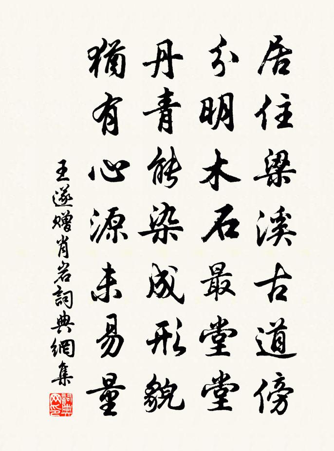 詩詞名句歷史字典書法欣賞書法字典國語詞典說文解字康熙字典古漢語字典標 題 作 者 詩 句 贈肖岩作者:王遂 朝代:宋代贈肖岩原文居住梁溪古道傍,分明木石最堂堂。丹青能染成形貌,猶有心源未易量。詩詞問答問:贈肖岩的作者是誰?答:王遂問:贈肖岩寫於哪個朝代?答:宋代王遂贈肖岩書法欣賞贈肖岩書法作品詩詞推薦靈溪老松歌盧士衡〔唐代〕靈溪古觀壇西角,千尺鱗皴棟樑朴。橫出一枝戛樓閣,直上一枝掃寥廓。白石蒼苔擁根腳,月明風撼寒光落。有時項園即事宋慶之〔宋代〕時節飛花飛,幽林亦自香。閒來看新水,獨立又斜陽。檐角鳥鳴霽,樹根魚就涼。一春風雨過,游事極相妨。送李季允侍郎歸蜀五絕用禪房花竹幽為韻劉宰〔宋代〕地僻風煙好,身閒日月長。未知嘉遯吉,占驗笑京房。張秉叔出紫雲迴鑾圖以示坐客因為賦之孔武仲〔宋代〕開元太平無兵戎,真人味道希夷中。人間之樂已饒足,惟有青霄未追逐。坐中誰似葉先生,以氣為糧常辟穀。朝登侯書記二子席上乞詩遂贈李復〔宋代〕植蒿不為棟,豢豚不成虎。本非英特姿,雖長何足數。男兒生墮地,便要立門戶。謝鳳炳有毛,羊豹兆於乳。探根題惠山園八景 尋詩徑乾隆〔清代〕岩壑有奇趣,煙雲無盡藏。石欄遮曲徑,春水漾方塘。新會忽於此,幽尋每異常。自然成迥句,底用錦為囊?狼山崔敦禮〔宋代〕日日懷歸今得歸,舊時風物未全非。江邊鷗鳥應相笑,底事塵埃滿客衣。雨霽張耒〔宋代〕滯雨忽雲霽,園林有清暉。時鳥亦和鳴,好風清且微。遠愧深山僧,趺坐掩禪扉。豈知芳非歇,詎傷寒暑違。一念臨汝道中趙崇嶓〔宋代〕野水平田稻正青,肩輿軋軋趁新晴。髼頭奴子無拘束,牛背醉眠歌太平。河間文天祥〔宋代〕南歸雁盪報郎君,老子精神健十分。不為瀛洲復相見,阿戎翻隔萬山雲。有感裘萬頃〔宋代〕政爾雙泉憶舊遊,柳江聞又有歸舟。誰能不作千年調,夢斷真成萬事休。傾蓋向來情莫逆,奠芻無計淚空流。重雲漁人王炎〔宋代〕西南月未墮,白霧吞青山。渡口無人行,老漁一舟還。呵手系短纜。襏襫犯夜寒。捕魚養妻子,誰謂斯人閒。傳言玉女姬翼〔元代〕覿面相逢,一顧眼中人識。會心冥處,遙山寸碧。洞天雲影,磊落翠岩蟠石。芝莫好在,幾經秋色。淺淺蓬瀛,談詩禪史彌寧〔宋代〕詩家活法類禪機,悟處工夫誰得知。尋著這些關{捩犬換友}子,國風雅頌不難追。部索印紙方岳〔宋代〕瀑澗茶煙雪屋燈,亂家更入亂雲層。老僧今已倦行腳,不用維那吃飯憑。舟行鄭谷〔唐代〕九派迢迢九月殘,舟人相語且相寬。村逢好處嫌風便,酒到醒來覺夜寒。蓼渚白波喧夏口,柿園紅葉憶長安。季鷹妾薄命常理〔唐代〕十五玉童色,雙蛾青彎彎。鳥銜櫻桃花,此時刺繡閒。嬌小恣所愛,誤人金指環。艷花句引落,滅燭屏風關。妾怕七老會詩(真年八十七)劉真〔唐代〕垂絲今日幸同筵,朱紫居身是大年。賞景尚知心未退,吟詩猶覺力完全。閒庭飲酒當三月,在席揮毫象七賢。山茗正旦上壽紫宸微臣以祀太一初獻不預賜茶酒退程公許〔宋代〕去歲楓橋度歲除,寒燈一盞自抄書。誰知東觀歸繙史,仍許西垣綴佩琚。四辟不憂獰虎豹,九成猶恐眩鶢鶋。彤墀川上懷舊邵雍〔宋代〕地逈川原闊,村孤煙水閒。雷輕龍過浦,雲亂雨移山。田者荷鋤去,漁人背網還。伊予獨霑濕,猶在道途間。名句推薦使殺生之機,奪予之要在大臣,如是者侵。韓非及後人《韓非子·三守》 年年社日停針線。怎忍見、雙飛燕。黃公紹《青玉案·年年社日停針線》 鳥飛反鄉,兔走歸窟,狐死首丘,寒將翔水,各哀其所生。劉安及其門客《淮南子·說林訓》 但夢想、一枝瀟灑,黃昏斜照水周邦彥《花犯·小石梅花》 忠臣不借人以力,貞女不假人以色。劉向《列女傳·貞順傳·楚白貞姬》 梨花院落溶溶月,柳絮池塘淡淡風。晏殊《無題·油壁香車不再逢》 一自胡塵入漢關,十年伊洛路漫漫。陳與義《詠牡丹》 嘆隙中駒,石中火,夢中身。蘇軾《行香子·述懷》 易挑錦婦機中字。難得玉人心下事。劉克莊《玉樓春·戲林推》 蕙風如薰,甘露如醴。左思《三都賦》