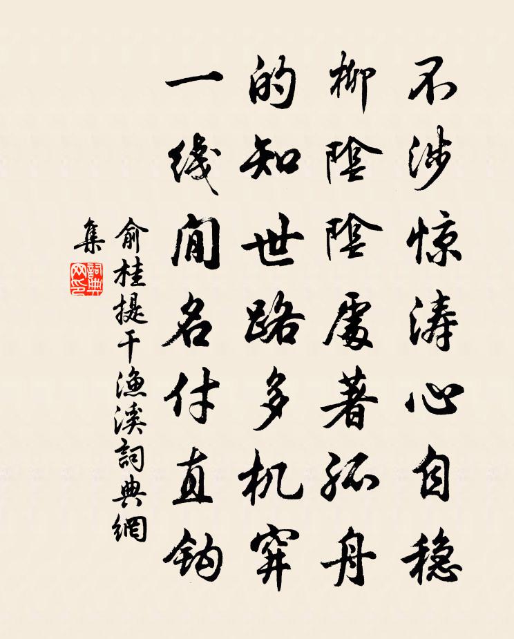 詩詞名句歷史字典書法欣賞書法字典國語詞典說文解字康熙字典古漢語字典標 題 作 者 詩 句 提乾漁溪作者:俞桂 朝代:宋代提乾漁溪原文不涉驚濤心自穩,柳陰陰處著孤舟。的知世路多機穽,一線閒名付直鉤。詩詞問答問:提乾漁溪的作者是誰?答:俞桂問:提乾漁溪寫於哪個朝代?答:宋代俞桂提乾漁溪書法欣賞提乾漁溪書法作品詩詞推薦亂後書事寄同志杜荀鶴〔唐代〕九土如今盡用兵,短戈長戟困書生。思量在世頭堪白,畫度歸山計未成。皇澤正沾新將士,侯門不是舊公卿。到頭使客不至夜歸獨酌楊萬里〔宋代〕使客夜不至,還舍欣小歇。杯盤只草草,足可相暖熱。庭前雪夜明,道是簾外月。及見盤中酥,喚作庭前雪。別蘇徯(赴湖南幕)杜甫〔唐代〕故人有遊子,棄擲傍天隅。他日憐才命,居然屈壯圖。十年猶塌翼,絕倒為驚吁。消渴今如在,提攜愧老夫。豈知和友人題僧院薔薇花三首崔櫓〔唐代〕何人移得在禪家,瑟瑟枝條簇簇霞。爭那寂寥埋草暗,不勝惆悵舞風斜。無緣影對金尊酒,可惜香和石鼎茶。看取振鷺佚名〔先秦〕振鷺于飛,於彼西雍。我客戾止,亦有斯容。在彼無惡,在此無斁。庶幾夙夜,以永終譽。二月三十日與同舍宴李氏園晚歸馬上賦詩司馬光〔宋代〕門前蹀躞金羈滿,坐上連翩玉斝飛。數盡遊絲留客醉,一行垂柳送人歸。同邀勝友時難得,重到名園花已稀。莫惜送知府吳龍圖文同〔宋代〕國初已來治蜀者,處置儘自乖崖公。當時奏使便宜敕,不與天下州府同。行之已及八十載,奸宄消伏誰之功。因循寄方叔姜特立〔宋代〕落葉滿滄灣,墜露濕疏柳。幽人曉無事,杖策經林阜。忽焉若有省,懷此山中友。便欲借風翰,翩翩插雙肘。紫岩雜詠留煙曾協〔宋代〕暝色蒼然至,浮煙漫不分。小留岩竇底,為伴宿檐雲。娛山亭趙蕃〔宋代〕嗜好雖同轍,賢愚本異岐。簞瓢樂吾道,錢馬昧真痴。吾舅端何以,名亭不在茲。登臨如有得,勿用語群兒。萬年枝花董嗣杲〔宋代〕此種何奇等壽椿,吹香時借好風頻。細花當暑飛黃玉,密葉屯陰侍紫宸。深樾暗埋巢鵲乳,纖蕤亂綴網蛛塵。歲寒寄吳夢鶴杜汝能〔宋代〕憐君如泛梗,漂泊竟何之。經歲無來信,還家是幾時。秋高鴻過少,地冷菊開遲。屢夕寒燈下,秋吟只自知。隱靜山二首韓元吉〔宋代〕海上蟠桃手自栽,紅塵一墮隔蓬萊。風帆弱水無由到,乞我當年渡海杯。一葉舟侯善淵〔元代〕頂笠披莎歸去。漸入蘆花深處。綠岸纜漁舟。釣綸收。輕泛壺中一味。野鶴孤雲相濟。橫*韻清幽。樂無愁。電杜范〔宋代〕玉女開天笑,驪龍弄月珠。照眸千壑滿,應手一絲我。晻映同雲表,行移轉海隅。田夫占北極,明日雨平鋪。清江引馬致遠〔元代〕樵夫覺來山月底,釣叟來尋覓。你把柴斧拋,我把魚船棄。尋取個穩便處閒坐地。綠蓑衣紫羅袍誰為你,兩件兒都和處州韋使君新開南溪朱慶餘〔唐代〕地里光圖讖,樵人共說深。悠然想高躅,坐使變荒岑。疏鑿因殊舊,亭台亦自今。靜容猿暫下,閒與鶴同尋。轉旆秋寄從兄賈島(一作秋夜宿西林寄賈島)無可〔唐代〕螟蟲喧暮色,默思坐西林。聽雨寒更徹,開門落葉深。昔因京邑病,並起洞庭心。亦是吾兄事,遲回共至今。送於中丞入蕃冊立朱慶餘〔唐代〕上馬生邊思,戎裝別眾僚。雙旌銜命重,空磧去程遙。迥沒沙中樹,孤飛雪外雕。蕃庭過冊禮,幾日卻回朝。秦樓月 以上六首見中州樂府趙秉文〔金代〕簫聲苦。簫聲吹斷夷山雨。夷山雨。人空不見,吹台歌舞。危亭目極傷平楚。斷霞落日懷千古。懷千古。一杯還酹名句推薦客里看春多草草,總被詩愁分了張炎《清平樂·采芳人杳》 疾風知勁草,板蕩識誠臣。李世民《賜蕭瑀》 香滅繡帷人寂寂,倚檻無言愁思遠。顧敻《玉樓春·柳映玉樓春日晚》 唯器與名,不可以假人左丘明《左傳·成公·成公二年》 宮衣亦有名,端午被恩榮。杜甫《端午日賜衣》 好一似食盡鳥投林,落了片白茫茫大地真乾淨。曹雪芹《紅樓夢·第五回》 落盡梨花春又了。滿地殘陽,翠色和煙老。梅堯臣《蘇幕遮·草》 君子將說富貴,必勉於仁也。戴聖《大戴禮記·曾子制言中第五十五》 短籬殘菊一枝黃。正是亂山深處、過重陽。呂本中《南歌子·驛路侵斜月》 桃紅復含宿雨,柳綠更帶朝煙。王維《田園樂七首·其六》