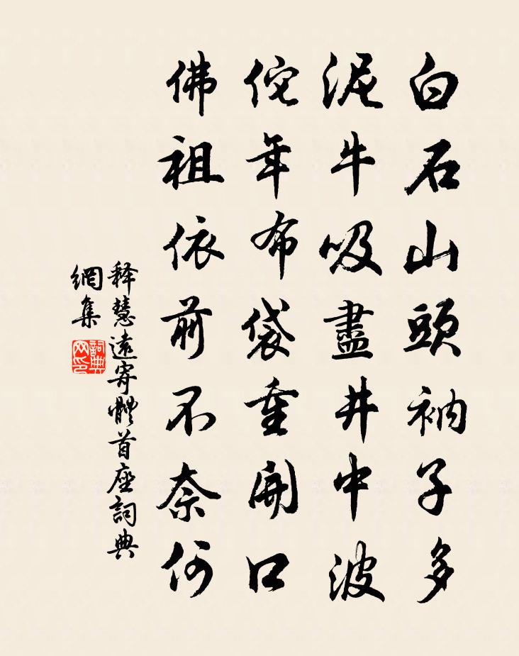 詩詞名句歷史字典書法欣賞書法字典國語詞典說文解字康熙字典古漢語字典標 題 作 者 詩 句 寄體首座作者:釋慧遠 朝代:宋代寄體首座原文白石山頭衲子多,泥牛吸盡井中波。佗年布袋重開口,佛祖依前不奈何。詩詞問答問:寄體首座的作者是誰?答:釋慧遠問:寄體首座寫於哪個朝代?答:宋代釋慧遠寄體首座書法欣賞寄體首座書法作品詩詞推薦季高送酒陳與義〔宋代〕自接麯生蓬戶外,便呼伯雅竹床頭。真逢幼婦著黃絹,直遣從事到青州。杏花王禹偁〔宋代〕紅芳紫萼 * ,蓓蕾粘枝密作團。記得觀燈鳳樓上,百條銀燭淚闌乾。和漢老弟牛尾貍韻虞儔〔宋代〕堂饋流涎玉面貍,也知臭腐出神奇。分無竹葉浮酥面,尚想梅花映雪肌。渠幸臘前能漏網,人言春後亦非時。吾儕清平樂辛棄疾〔宋代〕清詞索笑。莫厭銀杯小。應是天孫新與巧。剪恨裁愁句好。有人夢斷關河。小窗日飲亡何。想見重簾不捲,淚痕滴王可交升仙台四首黃庚〔宋代〕人去台猶在,飛升事可嘉。神仙多變幻,塵世總虛花。練氣顏難老,勞心鬢易華。千年留古蹟,題詠屬詩家。現上人字空甫求語釋紹曇〔宋代〕二址玄門盡掃除,太虛寥豁月輪孤。翻身直透威音外,著得狂花翳眼無。橫山聳翠柳敘〔宋代〕蘭陰山跨浴溪南,春破峰顏三月三。松柏森森翻野籟,竹梧隱隱撲晴嵐。高摩雲漢千尋路,倒浸峰巒百尺潭。此外三姝媚(櫻桃)王沂孫〔宋代〕紅纓懸翠葆。漸金鈴枝深,瑤階花少。萬顆燕支,贈舊情、爭奈弄珠人老。扇底清歌,還記得、樊姬嬌小。幾度相雨中登披風榭望東山晁公溯〔宋代〕岡嶺逶迤草木低,東山好處我能知。色濃意遠真堪畫,須在冥濛奄靄時。八月十四日攜家泛月次韻樓鑰〔宋代〕猶記年時看水嬉,不如此夜月相宜。仙翁一醉非塵世,為問姮娥知未知。憶秦娥·季溫老友歸樵陽人來閒書因以為寄孫道絢〔宋代〕秋寂寞。秋風夜雨傷離索。傷離索。老懷無奈,淚珠零落。故人一去無期約。遲書忽寄西飛鶴。西飛鶴。故人何在易陽早發王勃〔唐代〕飭裝侵曉月,奔策候殘星。危閣尋丹障,回梁屬翠屏。雲間迷樹影,霧裡失峰形。復此涼飆至,空山飛夜螢。晚鶯獻都官強至〔宋代〕自恨飛遷出谷遲,東君不是故相遺。園林縱許容羈跡,蜂蝶還應笑後時。休恃綿蠻能巧囀,還須冷落守空枝。春風宿定陵寺(寺在陵內)盧綸〔唐代〕古塔荒台出禁牆,磬聲初盡漏聲長。雲生紫殿幡花濕,月照青山松柏香。禪室夜聞風過竹,奠筵朝啟露沾裳。誰悟華藏寺會故人王安石〔宋代〕百憂成阻闊,一笑得留連。城郭西風裡,園林落照前。共知官似夢,莫負酒如泉。興罷重攜手,江湖即渺然。和吳中友人見寄韻顧逢〔宋代〕孤蹤水上萍,豈料過希齡。藥聖貧難療,錢神禱不靈。行雲風斷續,蛻葉雨飄零。半世知心者,書燈一點青。詩一首王軫〔宋代〕南篇司馬青衫濕,北句郎官白髮生。堪與江黃永傳唱,離騷經外此歌聲。八月八日發潭州後得絕句四十首趙蕃〔宋代〕溪上秋來境倍佳,附城猶爾況村賒。卻嗟政爾營行棹,不得於茲理釣車。喜郭希范上自癢歸胡仲參〔宋代〕馬蹄明日是君家,千里歸來傍節華。幾夜深閨寒寂寂,有人和淚卜燈花。次韻學士重陽雪中見招不赴前後十六首洪皓〔宋代〕公幹沉綿自懶陳,黃能入夢是何神。眼前散帙看盈幾,肘後名方或問賓。衾枕頻移滋轉困,盤餐少異強加辛。小人名句推薦無限春風來海上。便與春工。染得桃紅似肉紅。蘇軾《減字木蘭花·立春》 候館梅殘,溪橋柳細。歐陽修《踏莎行·候館梅殘》 禍患常積於忽微,而智勇多困於所溺歐陽修《伶官傳序》 中心愿,平虜保民安國。宋江《滿江紅·喜遇重陽》 曉月過殘壘,繁星宿故關。司空曙《賊平後送人北歸》 人有氣、有生、有知,亦且有義,故最為天下貴也。荀子《荀子·王制》 殘星幾點雁橫塞,長笛一聲人倚樓。趙嘏《長安晚秋 / 秋望 / 秋夕》 手紅冰碗藕,藕碗冰紅手。蘇軾《菩薩蠻·回文夏閨怨》 君看獲稻時,粒粒脂膏香。黃燮清《秋日田家雜詠》 前村後壟桑柘深,東鄰西舍無相侵。貫休《春晚書山家屋壁二首》