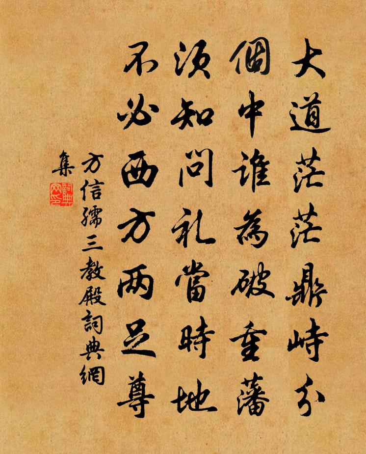 詩詞名句歷史字典書法欣賞書法字典國語詞典說文解字康熙字典古漢語字典標 題 作 者 詩 句 三教殿作者:方信孺 朝代:宋代三教殿原文大道茫茫鼎峙分,箇中誰為破重藩。須知問禮當時地,不必西方兩足尊。詩詞問答問:三教殿的作者是誰?答:方信孺問:三教殿寫於哪個朝代?答:宋代方信孺三教殿書法欣賞三教殿書法作品詩詞推薦次韻杜安行嘉陵春日書事十首郭印〔宋代〕良友何年會,書來細作行。柏寒知歲晚,花落笑春忙。從宦愆行樂,休心得坐忘。神爐丹已就,一粒待君嘗。寄靈隱惠明禪師釋重顯〔宋代〕千峰影里葉初凋,極望還將慰寂寥。也謂毫端不相隔,秋雲秋水奈遙遙。桂枝香(和詹天游就訪)趙功可〔宋代〕曉天涼露。天上玉簫吹,飛聲如雨。金闕高寒,閒卻一庭梅雨。漫漫八表塵埃夢,把文章、洗空千古。精神一似,梅花十絕方岳〔宋代〕竹緣貨殖比封君,松愛微官不避秦。至竟羞與噲等伍,歲寒誰障瘐公塵。食化趙崇鉘〔宋代〕海食多詭心,豢食令人魯。山中食薺人,幽吟肺腸苦。酬蕭閣副惠末利花栽余靖〔宋代〕素艷南方獨出群,只應瓊樹是前身。自緣香極宜晨露,勿謂開遲怨晚春。欄檻故將賓榻近,丹青重整畫圖新。移根少年游(宮詞擬梅溪)周密〔宋代〕簾消寶篆卷宮羅。蜂蝶撲飛梭。一樣東風,燕梁鶯院,那處春多。曉妝日日隨香輦,多在牡丹坡。花深深處,柳陰富池鎮上感懷董嗣杲〔宋代〕富池鎮上土風殊,誰憫流民涸轍魚。樵子乞租營房住,渡官強占廟門居。賈舟聚港傳官點,鬼店揚沙托法祛。第把酒肆行韋應物〔唐代〕豪家沽酒長安陌,一旦起樓高百尺。碧疏玲瓏含春風,銀題彩幟邀上客。回瞻丹鳳闕,直視樂游苑。四方稱賞名已送周尚書弘正詩 一庾信〔南北朝〕交河望合浦。玄菟想朱鳶。共此無期別。知應復幾年。謹和老人瘳字韻洪咨夔〔宋代〕本期洗眼看伊周,到此華胥只夢遊。爛漫蒼苔心事晚,婆娑紅槿鬢華秋。藏頭欲效鑽沙鱉,捫舌空成噍草牛。飯豆禪人並化主寫真求贊釋正覺〔宋代〕一印印空,三乘莫窮。智了離微句,身分函蓋同。彌勒駕來樓閣外,文殊家住覺城東。隨身乾木,到處家風。新柳崔櫓〔唐代〕無情柔態任春催,似不勝風倚古台。多少去年今日恨,御溝顏色洞庭來。酴醾种放〔宋代〕生成從火令,顏色占中央。綠葉排圜翠,青苞蓄異香。叢陰周曲幹,纖刺比鋒芒。一剪梅·袁州解印劉克莊〔宋代〕陌上行人怪府公,還是詩窮,還是文窮?下車上馬太匆匆,來是春風,去是秋風。階銜免得帶兵農,嬉到昏鍾,睡觀壁間鄭宣威早春賞杏花之作司令洪太命余即程公許〔宋代〕過雨麴塵繰淺綠,倚風綬帶娜殷紅。稍知春在酒深處,尤覺日長書課中。典記誤令參鄧下,封囊也擬學新豐。黃去別韋郎中張謂〔唐代〕星軺計日赴岷峨,雲樹連天阻笑歌。南入洞庭隨雁去,西過巫峽聽猿多。崢嶸洲上飛黃蝶,灩澦堆邊起白波。不醉用一代不數人百年能幾見為韻詩賦十章呈陳君趙蕃〔宋代〕東南固多賢,莫與永嘉匹。王鄭已騎鯨,輩流公第一。暮春月內署書閣前海棠花盛開率爾七言八韻寄張洎〔宋代〕去歲海棠花發日,曾將詩句詠芳妍。今來花發春依舊,君已雄飛玉案前。驟隔清塵樞要地,獨攀紅蘂艷陽天。疏枝自桃川至辰州絕句四十有二趙蕃〔宋代〕飛流濺沫瀑爭礲,電擊雷驚江落洪。盡日喧喧不能息,誦書妨我課兒童。名句推薦一味學吃虧,是處事良方。王永彬《圍爐夜話·第五四則》 承恩不在貌,教妾若為容。杜荀鶴《 * 怨》 道可道,非常道;名可名,非常名。劉安及其門客《淮南子·道應訓》 東風有信無人見,露微意、柳際花邊。蘇軾《一叢花·今年春淺侵年》 笑指吾廬何處是?一池荷葉小橋橫。陳繼儒《浣溪沙·初夏夜飲歸》 貧士之腸習黎莧,富人之口厭膏梁。程登吉《幼學瓊林·卷三·貧富》 無事不登三寶殿馮夢龍《警世通言·卷二十八》 千尺陰崖塵不到,惟有層冰積雪。辛棄疾《賀新郎·用前韻送杜叔高》 苕之華,其葉青青。佚名《苕之華》 譬之若水火然,善用之則為福,不能用之則為禍呂不韋《呂氏春秋·紀·孟秋紀》