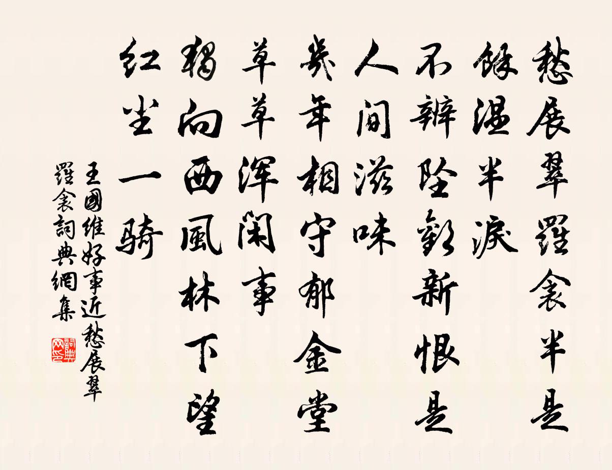 愁展翠羅衾,半是餘溫半淚。不辨墜歡新恨,是人間滋味。幾年相守鬱金堂,草草渾閒事。獨向西風林下,望紅塵一騎。