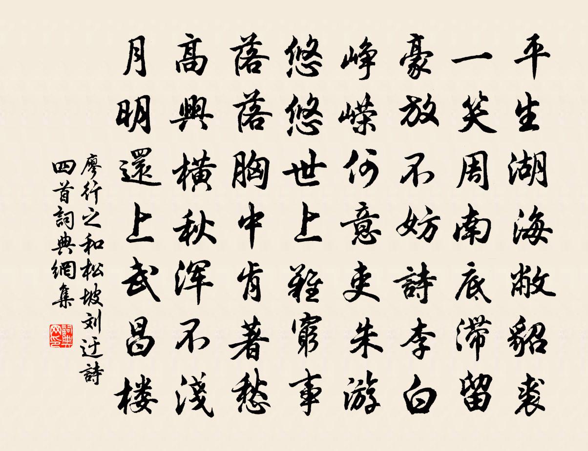 詩詞名句歷史字典書法欣賞書法字典國語詞典說文解字康熙字典古漢語字典標 題 作 者 詩 句 和松坡劉迂詩四首作者:廖行之 朝代:宋代和松坡劉迂詩四首原文平生湖海敝貂裘,一笑周南底滯留。豪放不妨詩李白,崢嶸何意吏朱游,悠悠世上難窮事,落落胸中肯著愁。高興橫秋渾不淺,月明還上武昌樓。詩詞問答問:和松坡劉迂詩四首的作者是誰?答:廖行之問:和松坡劉迂詩四首寫於哪個朝代?答:宋代廖行之和松坡劉迂詩四首書法欣賞和松坡劉迂詩四首書法作品詩詞推薦治平丁未仲秋遊伊洛二川六日晚出洛城西門宿邵雍〔宋代〕向晚驅車出上陽,初程便宿水雲鄉。更聞數弄神仙曲,始信壺中日月長。次韻胡元用末利花樓鑰〔宋代〕殘暑未盡秋欲來,玉刻萬葉瓊英開。孤標雅韻一枝足,江上紫翠空成堆。素娥長與明月約,青女細把輕綃裁。主人甲子秋八月偶思出遊往往累日不能歸或遠至傍陸游〔宋代〕燂湯具浴僧窗暖,舂黍供炊旅甑香。自笑平生為客熟,關山千里一衣囊。縣君赴興慶宮朝賀載之奉行冊禮,因書即事權德輿〔唐代〕合卺交歡二十年,今朝比翼共朝天。風傳漏刻香車度,日照旌旗彩仗鮮。顧我華簪鳴玉珮,看君盛服耀金鈿。相期武陵春(戴昌言家姬供春盤)史浩〔宋代〕報導東皇初弭節,芳思滿凌晨。爭看釵頭彩勝新。金字寫宜春。四坐行盤堆白玉,縴手自和勻。恰似蟾宮妙麗人。享太廟樂章李回〔唐代〕受天明命,敷祐下土。化時以儉,衛文以武。氛消夷夏,俗臻往古。億萬斯年,形於律呂。次韻方教采芹亭方岳〔宋代〕研朱滴露月三更,見說群書作堵環。君自苦於經傳癖,不如借我去看山。宮詞四首李邴〔宋代〕鮫綃淚滴鴛鴦冷,月上欄桿照孤影。躑躅開花過粉牆,轆轤汲水敲金井。禪人並化主寫真求贊釋正覺〔宋代〕據胡床,握麈柄。句中起倒,機頭偏正。真得出思議,妙應亡眺聽。徹二儀萬象根源,識諸佛歷代性命。曲直逆順送贊可參議赴臨安粹三首郭印〔宋代〕亭上銜杯日,江邊摻袂時。一年渾共醉,萬里各相思。老得青眸顧,心將白首期。青雲如在手,故舊莫遐遺。題畫廿四首唐寅〔明代〕端陽竟渡楚江湄,紈褲分曹唱健詞。畫楫萬枝飛鷁道,朱簾十二映娥眉。次韻季真留別李石〔宋代〕即物那知身是客,黃花空自委籬東。淚痕已逐西風盡,只有悲秋寫未窮。春日雜書十首 其四朱淑真〔宋代〕柳垂新綠膩煙光,紫燕惺松語畫梁。午睡忽驚雞唱罷,日移花影上窗香。□字頌黃庭堅〔宋代〕齋余睡兀兀,占盡檐前日。不與一甌茶,眼前黑如漆。望蓬萊 秦川丘處機〔元代〕秦川好,一片錦紋華。日出雨晴山色秀,月明風急水聲嘉。千里淨無涯。余到此,喜慶復難加。天時豐堪養道,吳正仲謫官得故人寄蟹以詩謝之餘次其韻王安石〔宋代〕越客上荊舠,秋風憶把螯。故煩分巨跪,持用佐清糟。飲量寬滄海,詩鋒捷孟勞。甘餐飽觴詠,餘事付鈞陶。曩從玉泉道人見壽亭侯印大可方二寸並解池龍陳杰〔宋代〕玉泉寺中三鈕銅,十年解池討業龍。當時何不佐取流馬出,火德重開兩都日。玄潭觀中半圭鐵,千年龍沙擬蛟孽。山居答客問釋文珦〔宋代〕富貴有何好,只以勞其形。吾居在山林,四體常安寧。寒緝沼中荷,飢斸松下苓。蒼苔沒幽徑,白雲度疏欞。明月插田歌劉禹錫〔唐代〕連州城下,俯接村墟。偶登郡樓,適有所感,遂書其事為俚歌,以俟采詩者。 岡頭花草齊,燕子東西飛。田塍南歌子(晚春)蘇軾〔宋代〕日薄花房綻,風和麥浪輕。夜來微雨洗郊坰。正是一年春好、近清明。已改煎茶火,猶調入粥餳。使君高會有餘清名句推薦起來搔首,梅影橫窗瘦。汪藻《點絳唇·新月娟娟》 乃知兵者是兇器,聖人不得已而用之。李白《戰城南》 夫孝者,善繼人之志,善述人之事者也。子思《中庸·第十九章》 蠻姜豆蔻相思味。算卻在、春風舌底。吳文英《杏花天·詠湯》 仁暴者,皆亡國者也。韓非及後人《韓非子·八說》 誰謂傷心畫不成,畫人心逐世人情。韋莊《金陵圖》 紙上得來終覺淺,絕知此事要躬行。陸游《冬夜讀書示子聿》 清夜何湛湛,孤燭映蘭幕。江淹《銅爵妓》 已知泉路近,欲別故鄉難。夏完淳《別雲間》 離別一何久,七度過中秋。蘇轍《水調歌頭·徐州中秋》