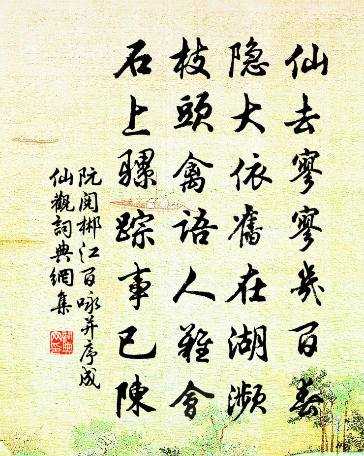 詩詞名句歷史字典書法欣賞書法字典國語詞典說文解字康熙字典古漢語字典標 題 作 者 詩 句 郴江百詠並序成仙觀作者:阮閱 朝代:宋代郴江百詠並序成仙觀原文仙去寥寥幾百春,隱大依舊在湖瀕。枝頭禽語人難會,石上騾蹤事已陳。詩詞問答問:郴江百詠並序成仙觀的作者是誰?答:阮閱問:郴江百詠並序成仙觀寫於哪個朝代?答:宋代阮閱郴江百詠並序成仙觀書法欣賞郴江百詠並序成仙觀書法作品詩詞推薦春日齋中林逋〔宋代〕空階重疊上垣衣,白晝初長社燕歸。落盡海棠人臥病,東風時復動柴扉。送吳榮楷之官浙江三首曾國藩〔清代〕西湖吾未到,夢想若遇之。荷花夏如海,當春萬柳垂。秋月隨潮湧,暮霧天無涯。三百六十寺,嵐翠渺迷離。君去句吳沆〔宋代〕爭屯未就雲頭合,結沈欲成風勢高。丹陽泉林景熙〔宋代〕揚子江中{左奭右斗}夜月,慧山亭上漱朝煙。遙看丹氣霏微裹,二十泉中第四泉。題郭熙雪晴松石平遠圖為張季野作是日同讀杜方回〔宋代〕書貴瘦硬少陵語,豈止評書端為詩。五百年間會此意,畫師汾陽老阿熙。嵬詩瑣畫世一軌,肉腴骨弱精神痴。明窗送鶴還建康章德茂侍郎因成兩詩張鎡〔宋代〕來時雪羽帶緇塵,養得摧殘病離身。曉浴池寬檐蔔繞,夜棲籠閣海棠隣。華亭清唳如前日,蜀道高風過昔人。他日秋夜極熱三首楊萬里〔宋代〕秋神今歲也痴獃,行李如何草草回。白帝羽衣渾不帶,炎官火傘卻將來。夏州崔常侍自少常亞列出領麾幢十韻杜牧〔唐代〕帝命詩書將,登壇禮樂卿。三邊要高枕,萬里得長城。對客猶褒博,填門已旆旌。腰間五綬貴,天下一家榮。野水題昱師房天笑圖李覯〔宋代〕高僧不出院,屏畫天笑圖。客子倦遊者,欲去復踟躕。古人骨朽不可追,今人相見如古時。人間觸事入吾笑,何必和鮑守次韻林德祖十四首傅察〔宋代〕使軺問俗畫輪輕,五馬張筵駐驛亭。他日恩榮封詔紫,佇看蹇諤仗蒲青。才能並賜龍文劍,勳業同分雲母屏。太史玉階怨鄭錫〔唐代〕長門寒水流,高殿曉風秋。昨夜鴛鴦夢,還陪豹尾游。前魚不解泣,共輦豈關羞。那及輕身燕,雙飛上玉樓。送吳夢大監稅赴潮州圃灣二首王邁〔宋代〕一命官無小,心思及物同。高風超俗見,只手救人窮。宦路梅花白,親庭萱草紅。賢明尤易事,最喜遇南豐。高宗郊祀前廟朝享太廟三十首真宗〔宋代〕疏冪三舉,誠意一純。孰陪予祀,公族振振。神具醉止,燕娭窈冥。於萬斯年,綏我思成。新陽改故陰紇乾諷〔唐代〕律管才推候,寒郊忽變陰。微和方應節,積慘已辭林。暗覺余澌斷,潛驚麗景侵。禁城佳氣換,北陸翠煙深。有截七月二十日被檄考試出門項安世〔宋代〕阿婆少也不如人,更說秋來白髮新。欲按新聲忘舊譜,畫鸞歌扇久生塵。偈公六十五首釋鹹傑〔宋代〕呼猿洞口,虛空迸裂。鴉飛不度,如行如說。江城子·中秋早雨晚晴陳著〔宋代〕中秋佳月最端圓。老痴頑。見多番。杯酒相延,今夕不應慳。殘雨如何妨樂事,聲淅淅,點斑斑。天應有意故遮闌南柯子侯善淵〔元代〕鳳去飛還遠,鶴隨翼羽*。石中隱玉蛤珠韜。木長沉丁,草秀紫芝苗。獸變獅麟象,蛇渝化海蛟。魚分水谷變鯨鰲和張孟阜歲旦韻陳傅良〔宋代〕白髮朝看鏡,青燈夜數更。文章輸善宦,名字誤浮生。廢學兒鼾睡,安貧婦饁耕。從今定逢吉,吾已卜先庚。恭鑒二禪人乾浴鑊求頌釋正覺〔宋代〕範金為鑊沸蘭津,分付楞嚴會上賓。妙觸宣明渠具眼,纖塵不受我通身。投諧冷暖渾忘水,迎合溫和似得春。爐鞴名句推薦無冥冥之志者,無昭昭之明;無惛惛之事者,無赫赫之功。荀子《荀子·勸學》 山中一夜雨,樹杪百重泉。王維《送梓州李使君》 天之生此民也,使先知覺後知,使先覺覺後覺也。孟子《孟子·萬章章句上·第七節》 鐵衣霜露重,戰馬歲年深。戎昱《塞下曲·其六》 聞君有兩意,故來相決絕。卓文君《白頭吟》 盡教春思亂如雲,莫管世情輕似絮晏幾道《玉樓春·雕鞍好為鶯花住》 當事者迷,旁觀者清。佚名《增廣賢文·下集》 連山變幽晦,綠水函晏溫柳宗元《飲酒》 山遠天高煙水寒,相思楓葉丹。李煜《長相思·一重山》 但夢想、一枝瀟灑,黃昏斜照水周邦彥《花犯·小石梅花》