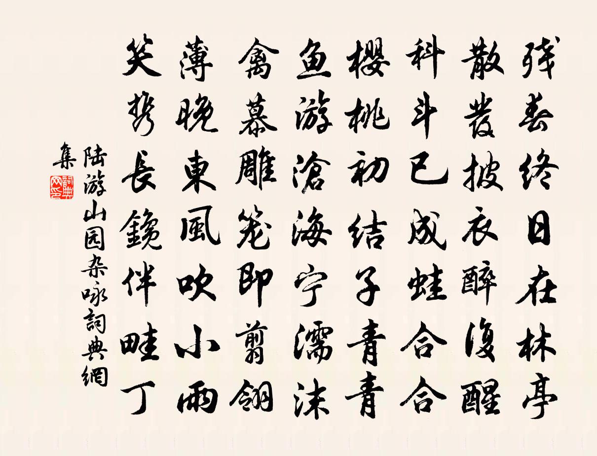 殘春終日在林亭,散發披衣醉復醒。科斗已成蛙合合,櫻桃初結子青青。