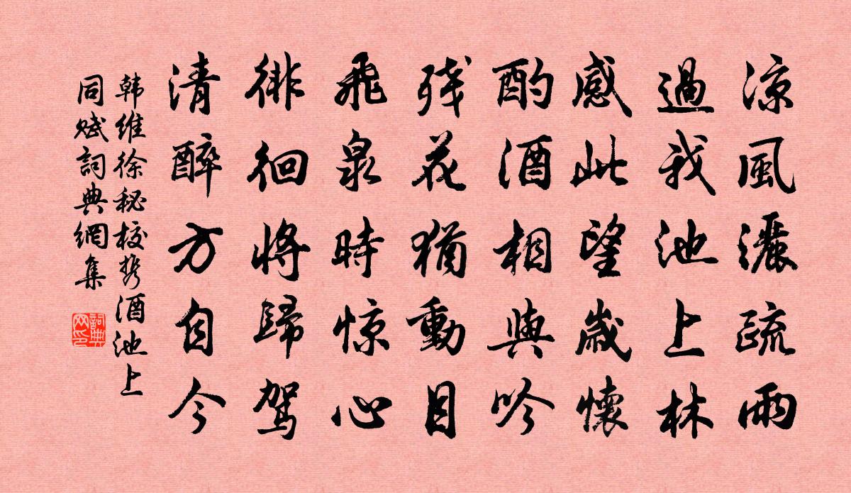 詩詞名句歷史字典書法欣賞書法字典國語詞典說文解字康熙字典古漢語字典標 題 作 者 詩 句 徐秘校攜酒池上同賦作者:韓維 朝代:宋代徐秘校攜酒池上同賦原文涼風灑疏雨,過我池上林。感此望歲懷,酌酒相與吟。殘花猶動目,飛泉時驚心。徘徊將歸駕,清醉方自今。詩詞問答問:徐秘校攜酒池上同賦的作者是誰?答:韓維問:徐秘校攜酒池上同賦寫於哪個朝代?答:宋代韓維徐秘校攜酒池上同賦書法欣賞徐秘校攜酒池上同賦書法作品詩詞推薦東渡早梅一樹,歲華如雪,酣賞成詠羊士諤〔唐代〕暇日留□事,期雲亦□開。鄉心持歲酒,津下賞山梅。晚實和商鼎,濃香拂壽杯。唯 * 北客,日日踏青來。水仙子佚名〔元代〕青山隱隱水茫茫,時節登高卻異鄉。孤城孤客孤舟上,鐵石人也斷腸,淚漣漣斷送了秋光。黃花夢,一夜香,過了范滂徐鈞〔宋代〕慨然攬轡志澄清,一激誰知黨禍成。母子可憐終死別,庶幾廣孝在揚名。毗陵東山李紳〔唐代〕昔人別館淹留處,卜築東山學謝家。叢桂半空摧枳棘,曲池平盡隔煙霞。重開漁浦連天月,更種春園滿地花。依舊讀史偶作二首陳藻〔宋代〕千夫合作一賢人,合數賢人是聖神。莫道眼前無孔子,一身散作萬千身。北京判府司徒侍中生日三十四韻強至〔宋代〕仁祖龍飛榜,宗工鳳舉春。爭先欣得雋,直上欲驚人。終賈年方妙,軻雄學已醇。紆朱光半刺,垂白慰偏親。器業宿江州藥王寺李曾伯〔宋代〕指點菸林正午鍾,亭亭樓閣有無中。鋪張翠蓋松間日,掃灑紅塵竹外風。啼鳥不驚禪入定,落花無跡色成空。解鞍偈頌二百零五首釋正覺〔宋代〕空劫威音前,別有一壺天。御樓觀射獵,不是刈茅田。范宰登瑞峰塔續蒙寵寄古篇輒次來韻林亦之〔宋代〕平明眺遠目,蒼波吐紅暾。已瞻大鰲網,復矚鸕鶿門。宿酲雖已解,衫襟猶酒痕。憑陵不可羈,往往天欲捫。卻憶鷓鴣天石孝友〔宋代〕收拾眉尖眼尾情。當筵相見便相親。偷傳翡翠歌中意,暗合鴛鴦夢裡身。雲態度,月精神。月流雲散兩無情。覺來又五位釋子淳〔宋代〕偏中至,收絲卻返蘆花里。高欹龜枕恣情眠,長江信任波濤起。梁南郊登歌詩沈約〔南北朝〕禮容盛。尊俎列。玄酒陳。陶匏設。獻清酒。致虔潔。王既升。樂已闋。降蒼昊。垂芳烈。朝中措(莆中共樂台)趙師俠〔宋代〕斜陽留照有餘紅。煙靄淡冥濛。麥隴青搖一望,前山翠失雙峰。高台徙倚。松飄逸韻,梅減冰容。俯視塵寰如掌,虞美人草陳郁〔宋代〕彭城高會日置酒,猴冠猶在婦人手。倉皇垓下已重圍,四面悲吟雜刁斗。當年舉佩不倒戈,到此空餘慷慨歌。虞兮頌古三十八首釋慧方〔宋代〕雲門透法身,分明語露親。移步登山頂,峰高與月鄰。再次韻陳造〔宋代〕咄咄嗟數奇,覷覷笑坐馳。超然達觀士,顯晦用一機。夫君抱器業。軒豁見奇姿。付我舟一葉,緡絲漾清漪。敢問夫子惡乎長孟子〔先秦〕 “敢問夫子惡乎長?” 曰:“我知言,我善養吾浩然之氣。” “敢問何謂浩然之氣?” 曰:“難題狄彥哲雲溪隱居二首項安世〔宋代〕閒居郭內似村中,背市臨河一逕通。案上漆書何世字,牆頭碧瓦古時宮。苦遭客子驚鷗鳥,閒在橋邊數釣筒。不是感懷詩一首 時滄州用兵。杜牧〔唐代〕高文會隋季,提劍徇天意。扶持萬代人,步驟三皇地。聖雲繼之神,神仍用文治。德澤酌生靈,沉酣薰骨髓。旄頭壽容山陳普〔宋代〕天下東南有玄圃,左瞰閩浙右俯楚。蘊環露秀周峰巒,異氣時出為雲雨。何年營丘文獻孫,相攸馳檐來胥宇。綿綿名句推薦對望中天地,洞然如刷。史達祖《滿江紅·中秋夜潮》 雲雨朝還暮,煙花春復秋。李珣《巫山一段雲·古廟依青嶂》 一觴雖獨盡,杯盡壺自傾。陶淵明《飲酒·其四》 兵家稱客主異勢,客貴速戰,主貴持重。姚思廉《陳書·列傳·卷二十五》 雁聲遠過瀟湘去,十二樓中月自明。溫庭筠《瑤瑟怨》 情者文之經,辭者理之緯;經正而後緯成,理定而後辭暢:此立文之本源也。劉勰《文心雕龍·情采》 禍患常積於忽微,而智勇多困於所溺歐陽修《伶官傳序》 一夕輕雷落萬絲,霽光浮瓦碧參差。秦觀《春日》 張而不弛,文武弗能也;弛而不張,文武弗為也。一張一弛,文武之道也。戴聖《禮記·雜記下》 別有相思處,啼鳥雜夜風。尹式《別宋常侍》
