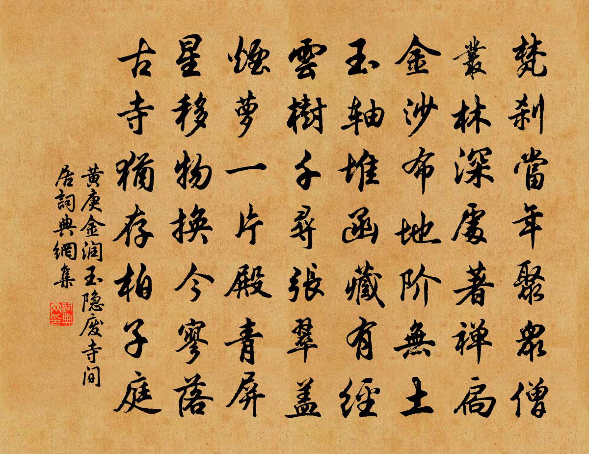 詩詞名句歷史字典書法欣賞書法字典國語詞典說文解字康熙字典古漢語字典標 題 作 者 詩 句 金潤玉隱廢寺間居作者:黃庚 朝代:宋代金潤玉隱廢寺間居原文梵剎當年聚眾僧,叢林深處著禪扃。金沙布地階無土,玉軸堆函藏有經。雲樹千尋張翠蓋,煙蘿一片殿青屏。星移物換今寥落,古寺猶存柏子庭。詩詞問答問:金潤玉隱廢寺間居的作者是誰?答:黃庚問:金潤玉隱廢寺間居寫於哪個朝代?答:宋代黃庚金潤玉隱廢寺間居書法欣賞金潤玉隱廢寺間居書法作品詩詞推薦北窗聞雨劉敞〔宋代〕泄雲霏棟宇,危葉墮霜枝。忽忽時空晚,蕭蕭會自悲。竟無高枕興,還有閉關宜。生事安蓬藋,商歌恣所為。太湖詩縹緲峰皮日休〔唐代〕頭戴華陽帽,手拄大夏筇。清晨陪道侶,來上縹緲峰。帶露嗅藥蔓,和雲尋鹿蹤。時驚鼠回鼠令鼠,飛上千丈松。廬山折桂一枝董嗣杲〔宋代〕風露木葉飛,崖谷清氣足。不知月中花,幾番破粟玉。深岩得秋易,香味真絕俗。幽人領此妙,況寄虎溪曲。花放移居甬江有感屠季〔宋代〕卜宅傍江隈,幽閒絕點埃。青山排闥入,碧水繞籬回。孤況依歸鳥,愁懷對酒杯。百年堪一笑,未死已心灰。自扁門歸陸游〔宋代〕橘柚累累未著霜,陂塘渺渺度秋光。長橋虹臥當官道,重閣翬飛出女牆。煙際遠舟俄已隱,天邊驚雁不成行。歸來和朱晦翁作陳光〔唐代〕去年渭北望卿頻,今日深山屐齒新。珠樹香沾千澗雨,蓮峰翠滴四時春。漁郎有意休相問,樵子無心可與親。石榻明發房溪二首楊萬里〔宋代〕山路婷婷小樹梅,為誰零落為誰開。多情也恨無人賞,故遣低枝拂面來。古意李呂〔宋代〕鴟鴞嘲鳳凰,飛鳴競啾啾。鳳兮問彼鴞,見憎何因由。我居在丹穴,下瑞暫來游。梧桐與竹實,食息無外求。爾來無夢令馬鈺〔元代〕寶殿金門玉鎖。要看搜尋雲朵。無影鑰匙兒,便把轉關剔過。剔過。剔過。自是無升無墮。橫浦十詠六祖劉黻〔宋代〕礁頭功行滿,非意祖師名。世事春風過,禪心夜月明。清泉靈石竇,老缽鎮山城。冷看梅花笑,紛紛事送迎。步蟾宮汪存〔宋代〕玉京此去春猶淺。正雪絮、馬頭零亂。姮娥剪就綠雲裳,待來步蟾宮與換。明年二月桃花岸。棹雙漿、浪平煙暖。南樓令朱彝尊〔清代〕疏雨過輕塵,圓莎結翠茵,惹紅襟乳燕來頻。乍暖乍寒花事了,留不住,塞垣春。 歸夢苦難真,別離情更親,恨留題澹岩張滉〔宋代〕天然一穴透融光,廣闊能容萬頃篁。翻念塵寰苦炎熱,人人付與一襟涼。送簡長師之洛釋文兆〔宋代〕動靜非常態,超然西去心。水期經洛聽,雲約到嵩吟。齋訪煙村遠,禪依竹寺深。祇應風雅道,相府是知音。晉公破賊回重拜台司,以詩示幕中賓客,愈奉和韓愈〔唐代〕南伐旋師太華東,天書夜到冊元功。將軍舊壓三司貴,相國新兼五等崇。鵷鷺欲歸仙仗里,熊羆還入禁營中。長慚次德修仙岩韻陳傅良〔宋代〕我家仙岩人跡稀,客從何來此何時。岷山之陽適海嶠,萬里欲寫心精微。瀑泉自雨一丘壑,有龍蟄不隨群飛。病樵喜小兒病癒陸游〔宋代〕喜見吾家玉雪兒,今朝竹馬遶廊嬉。也知笠澤家風在,十歲能吟病起詩。詩一首於本大〔宋代〕自從明府升仙后,出入塵寰直至今。不是藏名混時候,賣柴沽酒貴無心。伏聞知府秘書欲取小杜桐廬詩語,以見花名堂范成大〔宋代〕使君來暖東堂席,又見堂前花信息。小白猶封竹外枝,微黃已點眉間色。山城十月如春台,聞有細書天上來。說與雜詠一百首項羽劉克莊〔宋代〕頓無英霸氣,尚有婦兒仁。聞漢購吾首,持將贈故人。名句推薦肅肅花絮晚,菲菲紅素輕。杜甫《春遠 / 春運》 善處事者,但就是非可否,審定章程,而不必利於己。王永彬《圍爐夜話·第九則》 見碧水丹山,黃蘆苦竹。宋江《滿江紅·喜遇重陽》 無數春筍滿林生,柴門密掩斷行人。杜甫《詠春筍》 手如柔荑,膚如凝脂佚名《碩人》 送君歸去愁不盡,又惜空度涼風天。王昌齡《送狄宗亨》 有天命者任自為之,不汝禁也。脫脫《宋史·本紀·卷三》 見梨花初帶夜月,海棠半含朝雨。万俟詠《三台·清明應制》 形在江海之上,心存魏闕之下劉勰《文心雕龍·神思》 恥之於人大矣。為機變之巧者,無所用恥焉。孟子《孟子·盡心章句上·第七節》
