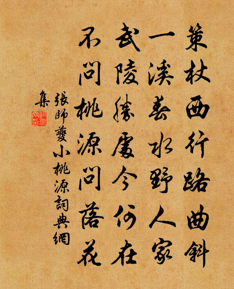 詩詞名句歷史字典書法欣賞書法字典國語詞典說文解字康熙字典古漢語字典標 題 作 者 詩 句 小桃源作者:張師夔 朝代:宋代小桃源原文策杖西行路曲斜,一溪春水野人家。武陵勝處今何在,不問桃源問落花。詩詞問答問:小桃源的作者是誰?答:張師夔問:小桃源寫於哪個朝代?答:宋代張師夔小桃源書法欣賞小桃源書法作品詩詞推薦伯琬明府年兄和予致字韻詩舉英石見遺謹次來喻良能〔宋代〕公家一峰如終南,須信是中有佳致。對之忘飢亦忘愁,豈待聲色兼臭味。嗜好蕭然迥出塵,同年要是我輩人。世間永遇樂·長憶別時蘇軾〔宋代〕孫巨源以八月十五日離海州,坐別於景疏樓上。既而與余會於潤州,至楚州乃別。余以十一月十五日至海州,與太寒食前一日西湖閒泛三首張鎡〔宋代〕驟暖懸知雨信儂,半陰台榭碧烘蒙。何心更敢攜壺去,孤槳微吟尚未工。游硯山王炎〔宋代〕他山石徒多,器寶匿幽僻。產璞芙蓉坑,金聲而玉德。岡巒外鉤聯,地勢中斷隔。曲塢 * 家,路入羊豕跡。澗水喜雨三首吳芾〔宋代〕鑠石流金苦異常,行人誰不困秋陽。狂風忽送排檐雨,滌盡炎威作晚涼。送鄭谷歸宜春曹鄴〔唐代〕無成歸故國,上馬亦高歌。況是飛鳴後,殊為喜慶多。暑銷嵩岳雨,涼吹洞庭波。莫便閒吟去,須期接盛科。摸魚兒(壽東軒)蔣捷〔宋代〕嚲吟鞭、雁峰高處。曾游長壽仙府。年年長見瑤簪會,霞杪蓋芝輕度。開繡戶。笑萬朵香紅,剩染秋光素。清簫麗滿庭芳 贛榆縣諸王廟黃醮罷,贈眾王處一〔元代〕海郡行緣,贛榆闡化,良因復顯諸王。謹修黃,特地召嘉祥。萬里雲收霧卷,微風息、燈燭熒煌。星壇上,步虛壽倅生辰楊簡〔宋代〕州家和氣藹新春,得所親賢蔚豹文。天遣星辰為二屏,我將風月作三分。碧梧翠竹來華胄,岳鳳溟鯤駕慶雲。敬為星回節游避風台與清平官賦南詔驃信〔唐代〕避風善闡台,極目見藤越。悲哉古與今,依然煙與月。自我居震旦,翊衛類夔契。伊昔頸皇運,艱難仰忠烈。不覺柳絮郭印〔宋代〕柳條初弄綠,已覺春風駐。而今二月尾,滿路團飛絮。人生安足恃,忽忽朱顏去。飄零未肯休,萍泛知何處。見之劉太丞仲宣歸華山楊億〔宋代〕早年通籍蒼龍闕,近日移家仙掌峰。方朔上書殊未報,平津開閣杳難逢。騷人章句多懷古,陶令田園且養慵。近郭蒙恩易鎮豫章丐假還鄉途中偶成十七首吳芾〔宋代〕睡里聞風雨,吾行擬暫停。起來搔首坐,喜見一天星。寄朱仲是兼僉戴復古〔宋代〕光陰日夜催吾老,已作雞皮鶴髮翁。萬事裝成百年夢,五行注定一生窮。殘花但有凋零分,枯木難沾造化功。若見漁陽將張籍〔唐代〕塞深沙草白,都護領燕兵。放火燒奚帳,分旗築漢城。下營看嶺勢,尋雪覺人行。更向桑乾北,擒生問磧名。題蕭宰十二詠堂三山兩水之亭戴復古〔宋代〕百載園林復故廬,收功全在五車書。一翁二季蘇家樣,三水兩山喻曲居。十二詠成傳不朽,三千篇出又何如。年來次韻章宰陳造〔宋代〕窮山從薄宦,小郡著衰翁。政術甘疎拙,辭壇敢長雄。一飢才自救,五細未宜中。又擬包羞去,京塵冒軟紅。奉和襲美醉中即席見贈次韻張賁〔唐代〕桂枝新下月中仙,學海詞鋒譽藹然。文陣已推忠信甲,窮波猶認孝廉船。清標稱住羊車上,俗韻慚居鶴氅前。共許苑中見美人詩何遜〔南北朝〕羅袖風中卷。玉釵林下耀。團扇承落花。復持掩余笑。金縷曲(和龔竹卿客中韻)劉辰翁〔宋代〕何處從頭說。但傾尊、淋漓醉墨,疏疏密密。看取兩輪東西者,也是樊籠中物。這光景、年來都別。白髮道人隆中名句推薦酒後競風采,三杯弄寶刀。李白《白馬篇》 花褪殘紅青杏小。燕子飛時,綠水人家繞。蘇軾《蝶戀花·春景》 權,然後知輕重;度,然後知長短。孟子《孟子·梁惠王章句上·第八節》 己之困辱宜忍,而在人則不可忍。洪應明《菜根譚·概論》 憶共錦衾無半縫,郎似桐花,妾似桐花鳳。王士禎《蝶戀花·和漱玉詞》 相逢清露下,流影濕衣襟。袁枚《夜過借園見主人坐月下吹笛》 君子能勤小物,故無大患。司馬光《資治通鑑·周紀·周紀一》 柳垂江上影,梅謝雪中枝。晏幾道《臨江仙·身外閒愁空滿》 出其東門,有女如雲。佚名《出其東門》 天之道,利而不害;聖人之道,為而不爭。老子《老子·德經·第八十一章》