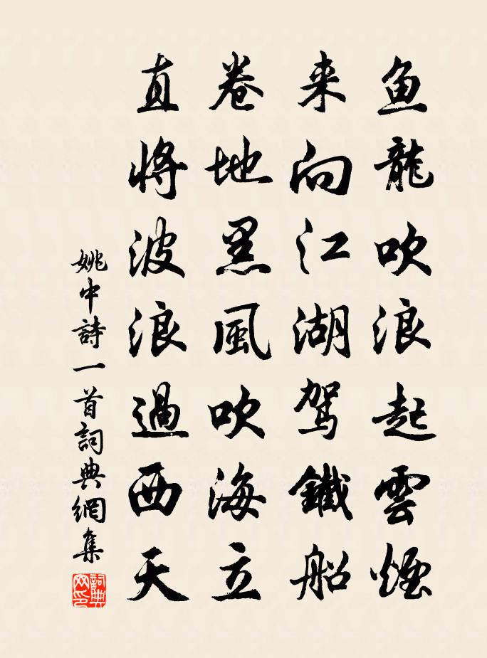 詩詞名句歷史字典書法欣賞書法字典國語詞典說文解字康熙字典古漢語字典標 題 作 者 詩 句 詩一首作者:姚中 朝代:宋代詩一首原文魚龍吹浪起雲煙,來向江湖駕鐵船。捲地黑風吹海立,直將波浪過西天。詩詞問答問:詩一首的作者是誰?答:姚中問:詩一首寫於哪個朝代?答:宋代姚中詩一首書法欣賞詩一首書法作品詩詞推薦晚春道中四首陳棣〔宋代〕纖穠掃盡換清陰,便有南風欲薦琴。漫道仙葩歸閬苑,小兒造化本無心。意難忘陳允平〔宋代〕額粉宮黃。襯桃花扇底,歌送瑤觴。裙拖金縷細,衫唾碧花香。瓊佩冷,玉肌涼。羅襪步滄浪。漫共伊,心盟意約西齋秋日雜書五首方回〔宋代〕閒閒閉園門,默默坐書室。幽幽絕來人,寂寂度長日。苦桃何累累,秋顆壓枝密。桃苦不可食,熟爛未忍摘。時聞漢宮春(題鍾肇長短句)劉克莊〔宋代〕謝病歸來,便文殊相問,懶下禪床。雀羅晨有剝啄,顛倒衣裳。袖中贄卷,原夫輩、安敢爭強。若不是,子期苗裔草 / 賦得古原草送別白居易〔唐代〕離離原上草,一歲一枯榮。野火燒不盡,春風吹又生。遠芳侵古道,晴翠接荒城。又送王孫去,萋萋滿別情。長思仙侯善淵〔元代〕道心寧。慧燈明。玩寶童兒啟道經。清如佩玉聲。湛然澄。煥然凝。燕靜華池吞玉瑛。還純體自貞。三麗人行高斯得〔宋代〕相公列屋芙蓉城,煙紅露綠千娉婷。朝回迎笑擁前後,忽遭唾棄嫌膻腥。汝曹面作死瓦色,爭似平康坊裹人。連眉臘前月季楊萬里〔宋代〕只道花無十日紅,此花無日不春風。一尖已剝臙脂筆,四破猶包翡翠茸。別有香超桃李外,更同梅斗雪霜中。折來緣識宋太宗〔宋代〕照耀乾坤大道光,神仙隱見不相妨。非凡非聖能回向,始信三天日月長。聞曼叔腹疾走筆為戲梅堯臣〔宋代〕方聞病下利,曾不藥物止。區區溷匽間,其往寧得已。每為青蠅喧,似與紫姑喜。傾腸倒腹後,乃是胸中美。梅林即事四首劉應時〔宋代〕瘦減腰圍盡不妨,豈堪三篾束枯腸。自憐尚有風流債,酷愛斷橋流水香。答昌言求薯蕷苗司馬光〔宋代〕冬實散肥壤,春苗動新葉。雅意非遺人,野情聊自愜。何言好事者,求訪來相疊。會種十畝余,坐取詩盈篋。挽枝江朱學諭項安世〔宋代〕身受傃軒詩,兒修涑水儀。百年生也直,三嘆古之遺。處易疑狐峭,因難見惠私。此風今遠笑,吾涕自漣洏。自題山亭三首徐鉉〔唐代〕小舫行乘月,高齋臥看山。退公聊自足,爭敢望長閒。月中仙 望海王丹桂〔元代〕暑氣遊戲方闌,漸遊戲雲收四野遊戲,山海明遊戲霽。憑高放目,視萬里汪洋,東連無極。廓然風浪靜,屢顯現、臘月殊有春意二首張耒〔宋代〕一夜長風無片雲,曉來風動似初春。應知春近催桃李,更有輕寒不著人。山房假寐夢有一客抱琴奏曲而去既覺詩以記之釋文珦〔宋代〕山房夜坐無眾喧,隱几而臥方澹然。忽夢有人來我前,從容為我揮五弦。琴聲一一皆清圓,如聽廣樂於鈞天。曲終挽寧宗皇帝章六首王邁〔宋代〕至道天同大,清心水不渾。六宮行幸少,尺宅煉真存。厭代金鑒殿,收魂玉帝垣。星辰羅上界,還奉太微尊。瑞金縣西池雙蓮汪簿有詩見寄因以和之金君卿〔宋代〕惠政多應草木知,藕花呈瑞向西池。雙紅共蒂初含笑,眾卉千名總合奇。寵降帝妃媯汭日,恍迷仙佩漢臯時。若教句吳沆〔宋代〕起於懷素節,嘉乃伴虛心。名句推薦松花釀酒,春水煎茶。張可久《人月圓·山中書事》 斟酌乎質文之間,而隱括乎雅俗之際,可與言通變矣。劉勰《文心雕龍·通變》 蓬頭稚子學垂綸,側坐莓苔草映身。胡令能《小兒垂釣》 碧玉妝成一樹高,萬條垂下綠絲絛。賀知章《詠柳 / 柳枝詞》 秋陰不散霜飛晚,留得枯荷聽雨聲。李商隱《宿駱氏亭寄懷崔雍崔袞》 春色三分,二分塵土,一分流水。蘇軾《水龍吟·次韻章質夫楊花詞》 對酒當歌,強樂還無味。柳永《蝶戀花·佇倚危樓風細細》 在善用,不在眾。宋祁、歐陽修、范鎮、呂夏卿等《新唐書·列傳·卷三十六》 香聞流水處,影落野人家。道源《早梅》 君懷良不開,賤妾當何依。曹植《明月上高樓》
