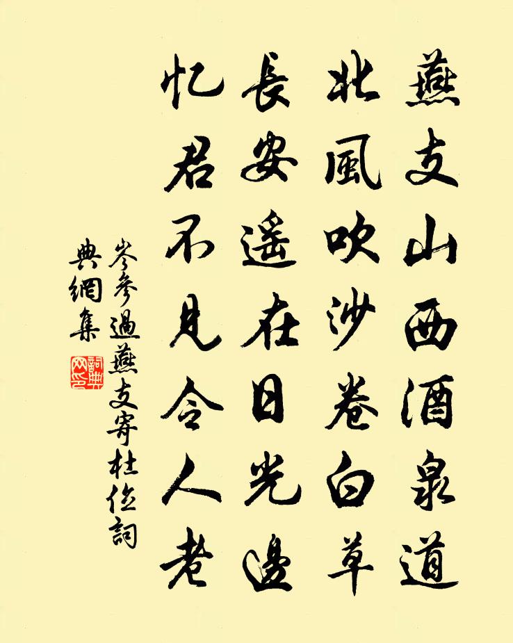 燕支山西酒泉道,北風吹沙卷白草。長安遙在日光邊,憶君不見令人老。