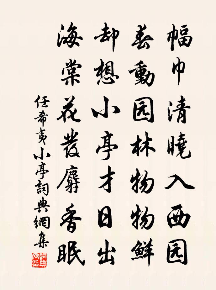 詩詞名句歷史字典書法欣賞書法字典國語詞典說文解字康熙字典古漢語字典標 題 作 者 詩 句 小亭作者:任希夷 朝代:宋代小亭原文幅巾清曉入西園,春動園林物物鮮,卻想小亭才日出,海棠花發麝香眠。詩詞問答問:小亭的作者是誰?答:任希夷問:小亭寫於哪個朝代?答:宋代任希夷小亭書法欣賞小亭書法作品詩詞推薦送道友歸天台貫休〔唐代〕蘚濃苔濕冷層層,珍重先生獨去登。氣養三田傳未得,藥非八石許還曾。雲根應狎玉斧子,月徑多尋銀地僧。太守東亭閒望白居易〔唐代〕東亭盡日坐,誰伴寂寥身。綠桂為佳客,紅蕉當美人。笑言雖不接,情狀似相親。不作悠悠想,如何度晚春?怨馮小青〔明代〕新妝竟與畫圖爭,知是昭陽第幾名?瘦影自臨春水照,卿須憐我我憐卿。園人送瓜杜甫〔唐代〕江間雖炎瘴,瓜熟亦不早。柏公鎮夔國,滯務茲一掃。食新先戰士,共少及溪老。傾筐蒲鴿青,滿眼顏色好。竹竿壽梁漕吳泳〔宋代〕維日在婁春事殷,維桐始華天氣新。亂紅繞樹綠幄均,櫻筍又薦冰盤珍。知是燕胎協卜、牛宿會辰,繡衣立當霄漢頌古十七首釋道行〔宋代〕枯樹雲棄葉,凋梅雪作花。擊桐成木響,蘸雪吃冬瓜。長天秋水,孤鶩落霞。吳江太湖龍王殿鄭起〔宋代〕吾謁龍王殿,龍王在何許。太湖三萬頃,水族龍為主。離離明月宮,渺渺寒煙渚。天下有旱蝗,吾亦能行雨。觀裴秀才松石障歌皎然〔唐代〕誰工此松唯拂墨,巧思丹青營不得。初寫松梢風正生,此中勢與真松爭。高柯細葉動颯颯,乍聽幽飀如有聲。左右禽言九首脫布袴劉克莊〔宋代〕貴家紈袴金梭織,貧家布袴才蔽膝。半夜打門持文書,脫袴貰酒待里胥。何時贖袴要禦寒,亦為官掩催租瘢。和王景彝晚赴江鄰幾飲梅堯臣〔宋代〕殘雪晚生寒,良朋邀我飲。逢君三省歸,交轡一相審。乘興興未盡,既杯杯太甚。夜闌踏月回,火冷人已寢。夢秦氏贈言曹雪芹〔清代〕三春過後諸芳盡,各自須尋各自門。即事劉應時〔宋代〕暖雲芳草媚晴川,花正嬌春柳欲眠。老景侵尋生事拙,舊巢歸燕自相憐。廣津倉檢視斛斗孔武仲〔宋代〕長渠西來擬天漢,千里清陰綠楊岸。高墉傑屋如屯雲,碧瓦參差插天半。小樓三尺偷晨光,山低堆積白與黃。千艘玩晚菊宋祁〔宋代〕佳節雖雲晚,繁英尚獨開。新醪相伴熟,寒蝶不空來。細折愁香破,長吟恐暝催。自嫌霜白鬢,將插重裴回。少女詞二首施肩吾〔唐代〕嬌羞不肯點新黃,踏過金鈿出繡床。信物無端寄誰去,等閒裁破錦鴛鴦。同心帶里脫金錢,買取頭花翠羽連。手執春寒復作陸游〔宋代〕春寒已解忽復作,病思不堪當語誰?青燈熒熒耿欲滅,殘雨滴滴休無期。故人已死夢中見,壯志未忘心自知。青絲同人看梅顧禧〔宋代〕梅花引我入溪深,半繞青松半翠林。已耐歲寒成好友,還將春色作幽岑。蒼煙踏破鞋無跡,明月桃來杖有心。贏得河間府陳孚〔元代〕北風河間道,沙飛雲浩浩。上有銜蘆不鳴之寒雁,下有隕霜半死之秋草。城外平波青黛光,大魚跳波一尺長。牧童京使回,累得南省諸公書,因以長句詩寄謝蕭白居易〔唐代〕雪壓泥埋未死身,每勞存問愧交親。浮萍飄泊三千里,列宿參差十五人。禁月落時君待漏,畬煙深處我行春。瘴鄉狐裘歌先秦無名〔先秦〕狐裘尨茸。一國三公。吾誰適從。名句推薦事雖小,勿擅為。苟擅為,子道虧。李毓秀《弟子規·入則孝》 君行逾十年,孤妾常獨棲。曹植《明月上高樓》 何意百鍊剛,化為繞指柔。劉琨《重贈盧諶》 吹燈窗更明,月照一天雪。袁枚《十二月十五夜》 為政在人。取人以身。修身以道。修道以仁。子思《中庸·第二十章》 霰雪紛其無垠兮,雲霏霏而承宇。屈原《九章》 欲寄彩箋兼尺素,山長水闊知何處?晏殊《蝶戀花·檻菊愁煙蘭泣露》 中原事業如江左,芳草何須怨六朝。納蘭性德《秣陵懷古·山色江聲共寂寥》 昨夜東風入武陽,陌頭楊柳黃金色。李白《早春寄王漢陽》 寂寂聞猿愁,行行見雲收李白《尋高鳳石門山中元丹丘》