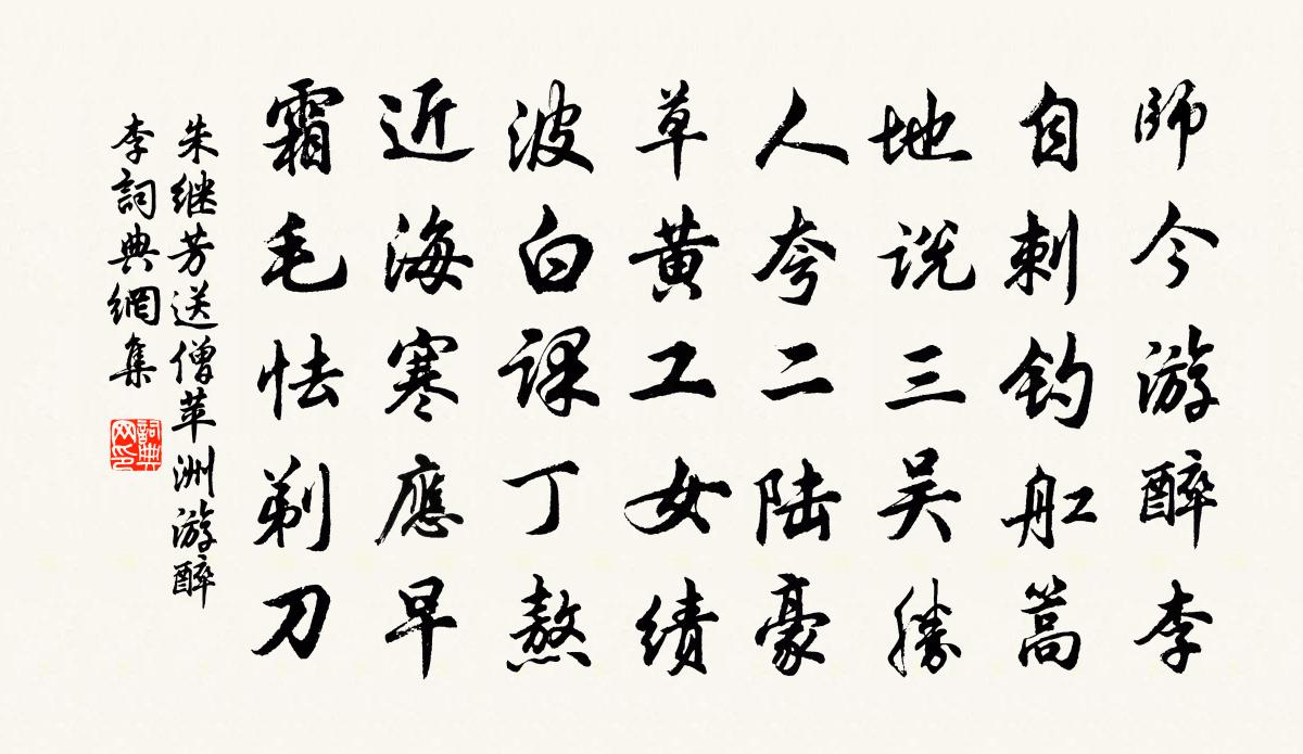 詩詞名句歷史字典書法欣賞書法字典國語詞典說文解字康熙字典古漢語字典標 題 作 者 詩 句 送僧苹洲游醉李作者:朱繼芳 朝代:宋代送僧苹洲游醉李原文師今游醉李,自刺釣舡篙。地說三吳勝,人夸二陸豪。草黃工女績,波白課丁熬。近海寒應早,霜毛怯剃刀。詩詞問答問:送僧苹洲游醉李的作者是誰?答:朱繼芳問:送僧苹洲游醉李寫於哪個朝代?答:宋代朱繼芳送僧苹洲游醉李書法欣賞送僧苹洲游醉李書法作品詩詞推薦偈頌二十一首釋堅璧〔宋代〕玉象吞獅子,泥牛上繡鞍。御樓觀射獵,不是刈茆田。度揭鴻嶺(漳州)慕容韋〔唐代〕閩越曾為塞,將軍舊置營。我歌空感慨,西北望神京。魏鵬負期醉臥戲題練裙賈雲華〔宋代〕暮雨朝雲少定蹤,空勞神女下巫峰。襄王自是無情緒,醉臥明月花影中。即事虞儔〔宋代〕已是春光晚,那堪雨氣昏。數莖驚白髮,萬感集清樽。才力須時展,功名有命存。眼前何足校,一笑任乾坤。小樓敖陶孫〔宋代〕只有書樓日日登,欄乾東角每深憑。一層已是悉無奈,想見仙人十二層。彭婆館逢韋判官使還戴叔倫〔唐代〕受辭分路遠,會府見君稀。雨雪經年去,軒車此日歸。暮春愁見別,久客順相依。寂寞伊川上,楊花空自飛。又謝丁執中寄黃龍菜王洋〔宋代〕吳山草長春暖時,吳人髻中金卷葹。家家饋薦作寒食,貧富豐儉要適且。富兼庶品助取醉,貧得勝具兼喔詩。金瓶京使回自臨川,得從兄書寄詩,依韻和徐鉉〔唐代〕珍重還京使,殷勤話故人。別離長掛夢,寵祿不關身。趣向今成道,聲華舊絕塵。莫嗟客鬢老,詩句逐時新。送元本忠北上王冕〔元代〕天台有奇觀,方廣石樑懸斷岸。青天倒瀉瀑布寒,五百大士皆頑漢。道人一出初無心,手翻貝葉開珠林。十載湖山晚秋集賢院即事寄徐薛二侍郎常袞〔唐代〕穆穆上清居,沈沈中秘書。金鋪深內殿,石甃淨寒渠。花樹台斜倚,空煙閣半虛。縹囊披錦繡,翠軸卷瓊琚。墨潤煙李嶠〔唐代〕瑞氣凌青閣,空濛上翠微。迥浮雙闕路,遙拂九仙衣。桑柘迎寒色,松篁暗晚暉。還當紫霄上,時接彩鸞飛。廣陵五題其一次韻子由題九曲池秦觀〔宋代〕蕭瑟通池閟茂林,岸傍無復屬車音。涵春似恨隋家遠,漲曉疑連蜀井深。鬥草事空煙冉冉,司花人遠樹陰陰。勞生西江月宋自遜〔宋代〕何敢笑人乾祿,自知無分彈冠。只將貧賤博清閒。留取書遮老眼。世上風波任險,門前路徑須寬。心無妄想夢魂安浴雌賈似道〔宋代〕餵食三尾時時鈴,免使蟲兒咬失傷。常將三尾頻頻浴,解使呼雌有彩光。中秋招王才臣賞梅花廷秀待制有詩次韻周必大〔宋代〕山中無歷記時節,望月巡檐探花發。適看如來金粟布,旋觀姑射膚凝雪。春自春兮秋自秋,總把繁枝插滿頭。那知觀法駕自鳳翔回錢起〔唐代〕欃搶一掃滅,閶闔九重開。海晏鯨鯢盡,天旋日月來。聖情蘇品物,龍御辟雲雷。曉漏移仙仗,朝陽出帝台。周慚書僧房洪邁〔宋代〕陸續流泉自成句,來擁紅爐聽山雨。道人更有深深處,語曲如珠蟻幾度。幾硯無塵寒欲霧,雕盤篆破孤螢吐。味如小舟航湖夜歸書觸目陸游〔宋代〕電掣半空雲黯黮,船浮積水浪憑陵。茫然不辨身何處,猶喜東南見塔燈。思歸李商隱〔唐代〕固有樓堪倚,能無酒可傾。嶺雲春沮洳,江月夜晴明。魚亂書何托,猿哀夢易驚。舊居連上苑,時節正遷鶯。玉山道士鄧有功〔宋代〕玉豀豀上雨聲乾,日暮東風客衲寒。數樹梅花吹作雪,行人猶自倚闌乾。名句推薦長驅入,歌台舞榭,風卷落花愁徐君寶妻《滿庭芳·漢上繁華》 心即理也。天下又有心外之事,心外之理乎王陽明《傳習錄·卷上·徐愛錄》 行人莫問當年事,故國東來渭水流。許渾《鹹陽城東樓 / 鹹陽城西樓晚眺 / 西門》 江頭未是風波惡,別有人間行路難!辛棄疾《鷓鴣天·送人》 日啖荔枝三百顆,不辭長作嶺南人。蘇軾《惠州一絕》 無限傷心夕照中,故國淒涼,剩粉余紅。夏完淳《一剪梅·詠柳》 莊生曉夢迷蝴蝶,望帝春心托杜鵑。李商隱《錦瑟》 聞君有兩意,故來相決絕。卓文君《白頭吟》 當年萬里覓封侯。匹馬戍梁州。陸游《訴衷情·當年萬里覓封侯》 安得倚天劍,跨海斬長鯨。李白《臨江王節士歌》