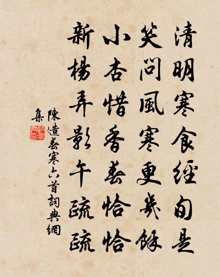詩詞名句歷史字典書法欣賞書法字典國語詞典說文解字康熙字典古漢語字典標 題 作 者 詩 句 春寒六首作者:陳造 朝代:宋代春寒六首原文清明寒食經旬是,笑問風寒更幾餘。小杏惜香春恰恰,新楊弄影午疏疏。詩詞問答問:春寒六首的作者是誰?答:陳造問:春寒六首寫於哪個朝代?答:宋代陳造春寒六首書法欣賞春寒六首書法作品詩詞推薦卜運算元 齒落辛棄疾〔宋代〕剛者不堅牢,柔者難摧挫。不信張開口了看,舌在牙先墮。已闕兩邊廂,又豁中間個。說與兒曹莫笑翁,狗竇從君千秋歲佚名〔宋代〕記當初歸我,似德耀、嫁梁鴻。算三十年間,艱難歷遍,甘苦相同。新來有孫可抱,也添些、喜色到眉峰。今日又和州留別穆郎中劉長卿〔唐代〕播遷悲遠道,搖落感衰容。今日猶多難,何年更此逢。世交黃葉散,鄉路白雲重。明發看煙樹,唯聞江北鍾。題四夢圖黃粱劉克莊〔宋代〕偶然眠一覺,推枕起來驚。寂寞猶前日,榮華已隔生。龍門應制宋之問〔唐代〕宿雨霽氛埃,流雲度城闕。河堤柳新翠,苑樹花先發。洛陽花柳此時濃,山水樓台映幾重。群公拂霧朝翔鳳,天子九月七夜喜新涼張九成〔宋代〕晚來天宇陰,便有如許涼。衣襟不作苦,燈火耿寒光。青編如故人,入眼興未央。憶昔炎歊日,蒸郁如揚湯。百事龍洞二首張嵲〔宋代〕瀑溜落岩冰柱碎,迸珠跳沫似飛埃。西風更與遊人便,時送輕塵灑面來。皇太妃合春帖子五首蘇頌〔宋代〕冰散瑤津波隱隱,雪殘鳷鵲氣蔥蔥。新春遊豫祈民福,紅傘琱輿從兩宮。新定感興五首范仲淹〔宋代〕山水真名郡,恩多補諫官。中間好田錫,風月亦盤桓。江行大雨水漲四首方回〔宋代〕何處岸頹漂大樹,明朝水落閣平灘。村民爭剪為薪去,萬事從前預料難。續南有嘉魚曾豐〔宋代〕維夏之時,維孟之月。誰浪爾跡,於哺於歠。惟物是訹,與潏俱出。莫稅其{上四下畢},亦孔之拙。李翰林徐夤〔唐代〕謫下三清列八仙,獲調羹鼎侍龍顏。吟開鎖闥窺天近,醉臥金鑾待詔閒。舊隱不歸劉備國,旅魂長寄謝公山。遺編蝶戀花佚名〔宋代〕環取其終始不絕。兼致彩絲一絇,文竹茶合碾子一枚。此數物不足見珍,意者欲君子如玉之潔,鄙志如環不解。淚涿州汪元量〔宋代〕瀘溝橋下水泠泠,落木無邊秋正清。牛馬亂鋪黃帝野,鷹鸇高摩涿州城。柳亭日射旌旗影,花館風傳鼓吹聲。歸客出塞徐錫麟〔清代〕軍歌應唱大刀環,誓滅胡奴出玉關。只解沙場為國死,何須馬革裹屍還。太常引(壽南澗)辛棄疾〔宋代〕君王著意履聲間。便令押、紫宸班。今代又尊韓。道吏部、文章泰山。一杯千歲,問公何事,早伴赤松閒。功業後和葉樞密同游南明姜特立〔宋代〕出郭眼增明,遐觀酒共傾。好風吹暑氣,快雨送雷聲。僧磬清敲寂,鶯簧巧弄晴。論交方繾綣,宗此別時情。喜雨賀鑄〔宋代〕終春久旱暵,涉夏俄溽暑。垢汗浼衣襟,梅津蒸柱礎。黃霾閉赤景,測候錯辰午。沙燕逐風鳶,翻飛遡來雨。紛紛寄薌林故人林景熙〔宋代〕狺狺多楚狗,何處續離騷。草徑無塵入,秋峰與節高。寄南嶽廖融潘若沖〔宋代〕曾經別墅住行蹤,春浪和煙撼釣筒。共步幽亭連石蘚,寄眠靜榻帶松風。秋來頻夢岳雲白,別後應添鶴頂紅。又泛名句推薦偶然值林叟,談笑無還期。王維《終南別業 / 初至山中 / 入山寄城中故人》 十年種木,一年種穀,都付兒童。元好問《人月圓·重岡已隔紅塵斷》 長江悲已滯,萬里念將歸。王勃《山中》 露清枕簟藕花香,恨悠揚。顧敻《虞美人·觸簾風送景陽鍾》 宮女如花滿春殿,只今惟有鷓鴣飛。李白《越中覽古》 讀書如吃飯,善吃者長精神,不善吃者生痰瘤。袁枚《隨園詩話·卷十三》 雨里雞鳴一兩家,竹溪村路板橋斜。王建《雨過山村》 蜂須輕惹百花心,蕙風蘭思寄清琴。薛昭蘊《浣溪沙·握手河橋柳似金》 還將兩行淚,遙寄海西頭。孟浩然《宿桐廬江寄廣陵舊遊》 露濕晴花春殿香,月明歌吹在昭陽。李益《宮怨》