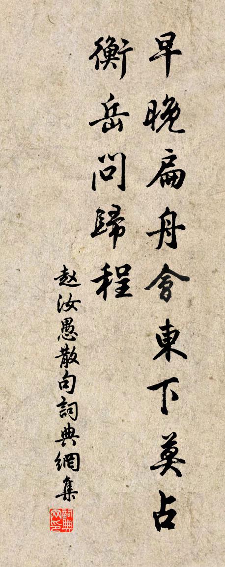 詩詞名句歷史字典書法欣賞書法字典國語詞典說文解字康熙字典古漢語字典標 題 作 者 詩 句 句作者:趙汝愚 朝代:宋代句原文早晚扁舟會東下,莫占衡岳問歸程。詩詞問答問:句的作者是誰?答:趙汝愚問:句寫於哪個朝代?答:宋代趙汝愚句書法欣賞句書法作品詩詞推薦不出項安世〔宋代〕老子年來驚五饋,閉門不出動經旬。誰家花有傾城色,何處園無持酒人。直以故書消遣日,短於佳句奈何春。東君岳陽樓雜詠十二絕胡寅〔宋代〕玄德驍雄世所知,蛟龍寧肯在污池。館於貳室謀何陋,借與全荊意自奇。偈頌一百六十首釋宗杲〔宋代〕已著槽廠,將錯就錯,騎卻聖僧,不妨快樂。龍象蹴蹋,非驢所作。堪笑諸方,妄生穿鑒。休穿鑒,禪麟只有一隻萬年歡(寄韻次膺叔)晁補之〔宋代〕十里環溪,記當年並游,依舊風景。采舫紅妝,重泛九秋清鏡。莫嘆歌台蔓草,喜相逢、歡情猶勝。苹洲畔、橫玉次韻斯遠見過三首趙蕃〔宋代〕形影相隨一病身,窮愁忽忽又經春。為傳車轍來何自,知是君存寂寞濱。宇宙吟邵雍〔宋代〕宇宙在乎手,萬物在乎身。綿綿而若存,用之豈有勤。詩三首嚴中和〔宋代〕一聲杜宇三更後,向曉綠陰連碧苔。卻恨樓高春數尺,柳綿飛不上窗來。同王昌齡送族弟襄歸桂陽二首李白〔唐代〕秦地見碧草,楚謠對清樽。把酒爾何思,鷓鴣啼南園。余欲羅浮隱,猶懷明主恩。躊躇紫宮戀,孤負滄洲言。終然鷓鴣天 錦峰晴雪沈禧〔元代〕蜀錦峰頭雪半融。倚空一朵玉芙蓉。面朝陽處光消釋。背向陰邊尚積重。天氣朗,日光瞳。看來渾似畫圖中。灞橋文宗嗜蛤蜊圖贊釋心月〔宋代〕一點悲心擘不開,鑊湯袞處笑盈腮。希奇之事朕深信,是與君王說不地來。題蕭照山水舒岳祥〔宋代〕煙雨峰巒無古今,斷崖迷徑靜愔愔。隔溪樵子遙相語,昨夜克流爾許深。霜後紀園中草木十二絕范成大〔宋代〕遮藏茉莉檻,纏裹芭蕉身。我亦入室處,忍寒待陽春。相和歌辭。王昭君三首東方虬〔唐代〕漢道初全盛,朝廷足武臣。何須薄命妾,辛苦遠和親。掩涕辭丹鳳,銜悲向白龍。單于浪驚喜,無復舊時容。胡地煎茶峰陳岩〔宋代〕緩火烘來活水煎,山頭卓錫取清泉。品茶懶檢茶經看,舌本無非有味禪。別李義杜甫〔唐代〕神堯十八子,十七王其門。道國洎舒國,督唯親弟昆。中外貴賤殊,余亦忝諸孫。丈人嗣三葉,之子白玉溫。道國步自玉局會飲於判院塗丈廨舍正得日字度正〔宋代〕肩輿訪藥市,散步困兩膝。行行初及門,品第已不一。細閱廊宇下,紛然莫窮詰。席地堆雄附,連盤佇參術。雲乳題處士林亭李濤〔唐代〕帝里高人宅,蒼苔繞徑深。捲簾山入戶,摘葉鳥移林。石沼養龜水,月台留客琴。生涯一樽酒,名利不關心。青玉案元好問〔金代〕熙春台下花無數。紅紫映桃溪路。蝶往蜂來知幾許。翠筠亭外,綠楊堤畔,時聽嬌鶯語。綺筵羅列開尊俎。總是神拜大父墓蘇泂〔宋代〕六載今如此,青松到屋樑。何言聲籍籍,直作去堂堂。事已難追悔,天高只痛傷。當時巴蜀使,書疏不能忘。夜權德輿〔唐代〕猿聲到枕上,愁夢紛難理。寂寞深夜寒,青霜落秋水。名句推薦念故人,千里至此共明月。寇準《踏莎行·寒草煙光闊》 欲速則不達。孔子弟子《論語·子路篇》 慮澹物自輕,意愜理無違。謝靈運《石壁精舍還湖中作》 提三尺劍以定四海吳兢《貞觀政要·卷八·論貢賦》 凍臉有痕皆是血,酸心無恨亦成灰。曹雪芹《詠紅梅花得“梅”字》 少小雖非投筆吏,論功還欲請長纓。祖詠《望薊門》 遊子春衫已試單,桃花飛盡野梅酸。吳濤《絕句·遊子春衫已試單》 老來情味減,對別酒,怯流年。辛棄疾《木蘭花慢·滁州送范倅》 治國猶如栽樹,本根不搖,則枝葉茂榮。吳兢《貞觀政要·卷一·論政體》 鶯初解語,最是一年春好處。蘇軾《減字木蘭花·鶯初解語》