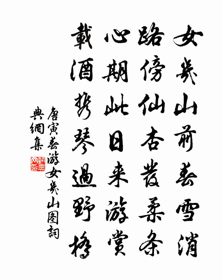 女幾山前春雪消,路傍仙杏發柔條。心期此日來游賞,載酒攜琴過野橋。