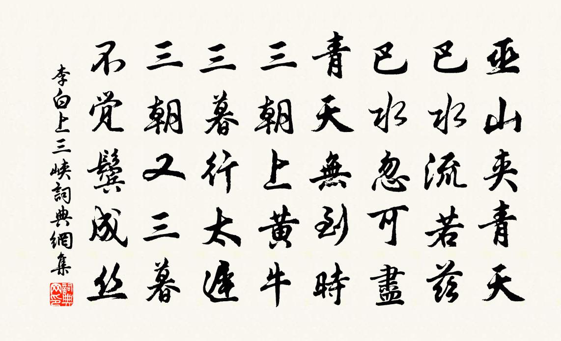 學者王國維在《人間詞話》中說:“昔人論詩詞,有景語、情語之別,不知一切景語皆情語也。”李白詩里《上三峽》相映成趣的是《下江陵》(《早發白帝城》),後者是詩人流放途中忽聞赦書,旋即乘舟東返時寫下的名篇。《上三峽》寫於詩人流放途中,詩中描寫巫山險峻,巴水紆曲,舟行遲遲,愁令發白。流放者唯覺逆境難熬,心情憤懣,壯麗風光為之減色。《下江陵》是詩人流放途中忽聞赦書,旋即乘舟東返時寫下的,城高入雲,晨光初燦,氣象開朗,舟行輕快。“一日千里”是詩人心態輕鬆的主觀感受,喜悅心情渲染得淋漓盡致。同一位詩人,同一處景致,卻氣象迥異,正是“融情入景”的鮮明寫照。
