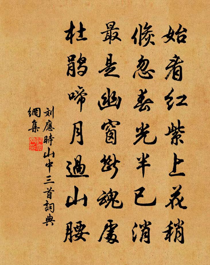 詩詞名句歷史字典書法欣賞書法字典國語詞典說文解字康熙字典古漢語字典標 題 作 者 詩 句 山中三首作者:劉應時 朝代:宋代山中三首原文始看紅紫上花稍,倏忽春光半已消。最是幽窗斷魂處,杜鵑啼月過山腰。詩詞問答問:山中三首的作者是誰?答:劉應時問:山中三首寫於哪個朝代?答:宋代劉應時山中三首書法欣賞山中三首書法作品詩詞推薦林子中以詩寄文與可及余與可既歿追和其韻蘇軾〔宋代〕斯人所甚厭,投畀每不受。欲其少須臾,奪去惟恐後。雲誰屍此職,無乃亦假守。賦才有巨細,無異斛與斗。胡不白髮嘆盧綸〔唐代〕發白曉梳頭,女驚妻淚流。不知絲色後,堪得幾回秋。賀太常黃少卿呂聲之〔宋代〕自從朝奏一封還,便整歸裝問故山。剩得清名千載重,何妨晚節十年閒。慣尋夜雪逵溪路,卻謝春風漢殿班。國史將至慎邑寄鼎袁說友〔宋代〕踏盡瓊瑤百里山,欲投城郭暮雲間。紅爐速置一壺酒,故歲誰家新歲還。昌大師住廣福說偈勉之釋心月〔宋代〕桂岩桂子久飄香,時節催開選佛場。莫作末山施半杓,使人特地喚娘娘。轉調醜奴兒/採桑子黃庭堅〔宋代〕得意許多時。長醉賞、月影花枝。暴風狂雨年年有,金籠鎖定,鶯雛燕友,不被雞期。紅旆轉逶迤。悔無計、千里衰至和王達善舒岳祥〔宋代〕衰來知已漸,老去不容遲。居長常先導,徐行且遠期。相看飄鶴髮,久坐綻烏皮。百歲休嫌短,修名千載垂。吊膳曹從叔郎中李洞〔唐代〕華省支殘俸,寒蔬辦祭稀。安墳對白閣,買石折朱衣。蜀客彈琴哭,江鷗入宅飛。帆吹佳句遠,不獨遍王畿。窮兔謠二首司馬光〔宋代〕兔營三窟定何在,棘間塹底高邱巔。卻行百步方躍入,示免余蹤留雪四。少年何為無惻隱,解鷹縱犬薰以煙。人言題方武城詩卷羅椅〔宋代〕斯人懷妙質,事事合唐賢。命短於長吉,吟情似閬仙。寒鴉政鳴噪,獨鶴已蹁躚。落日山亭下,沈思一愴然。謁金門趙彥端〔宋代〕休相憶。明夜遠如今日。樓外綠煙村冪冪。花飛如許急。柳岸晚來船集。波底斜陽紅濕。送盡去雲成獨立。酒醒愁忝役湘州與宣城吏民別詩謝朓〔南北朝〕羽齡倦簪履。薄晚忝華奧。閒沃盡地區。山泉諧所好。幸遇昌化穆。惇俗罕驚暴。四時從偃息。三省無侵冒。下車寄審知並屬彥博三首趙蕃〔宋代〕豫章稠眾木,孔翠逐群飛。梁棟期終用,文章莫露機。枉為時俗忌,空使寸心違。語以王郎子,因來答是非。學古詩何遜〔南北朝〕長安美少年。羽騎暮連翩。玉羈瑪瑙勒。金絡珊瑚鞭。陣雲橫塞起。赤日下城圓。追兵待都護。烽火望祁連。虎落交阮嗣宗一首舒岳祥〔宋代〕貧莫客千里,富莫不出門。迫隘多陵辱,飄搖困風塵。所以丈夫志,奮翼凌清氛。一舉蹴四海,載舉登崑崙。玉皇落花陸游〔宋代〕山杏溪桃次第開,狂風正用此時來。未妨老子憑欄興,滿地殘紅點綠苔。句蕭德藻〔宋代〕秋浩蕩中遙指點,一螺許是定王城。山中詞王令〔宋代〕山中兮何游,登彼山兮樂天高。棄吾馬以取步,降吾車兮足兩履。石當道兮行旁,木礙上兮下俯。曾蹈險之非艱,薛舍人母方氏太恭人挽章二首楊萬里〔宋代〕賦感東征句,詩愁陟屺篇。生前九齡夢,眼底五朝天。錦告渾無恙,雲車忽香然。不堪青竹筍,歸路不迎船。即席次必強六絕句李新〔宋代〕且倚東風拚酒酣,莫將食口配春蠶。還家更有無窮興,曲水飄香滿舍南。名句推薦此時相望不相聞,願逐月華流照君。張若虛《春江花月夜》 雁盡書難寄,愁多夢不成。沈如筠《閨怨二首·其一》 先拂商弦后角羽,四郊秋葉驚摵摵。李頎《聽董大彈胡笳聲兼寄語弄房給事》 時節是重陽,菊花牽恨長。徐燦《菩薩蠻·秋閨》 平明日出東南地,滿磧寒光生鐵衣。李益《度破訥沙二首·其二 / 塞北行次度破訥沙》 老母與子別,呼天野草間。李白《豫章行》 鎖離愁,連綿無際,來時陌上初熏。韓縝《鳳簫吟·鎖離愁》 涕零雨面毀形顏,誰能懷憂獨不嘆。曹丕《燕歌行二首·其二》 夫眾喣漂山,聚蚊成雷班固《漢書·傳·景十三王傳》 凡與敵戰,若便利之地,敵先結陣而據之,我後去趨戰,則我勞而為敵所勝。佚名《百戰奇略·第六卷·勞戰》