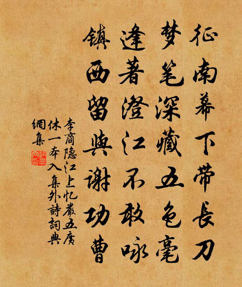 征南幕下帶長刀,夢筆深藏五色毫。逢著澄江不敢詠,鎮西留與謝功曹。
