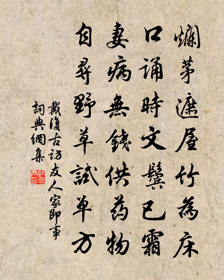 爛茅遮屋竹為床,口誦時文鬢已霜。妻病無錢供藥物,自尋野草試單方。