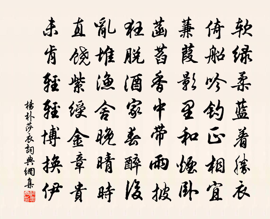 詩詞名句歷史字典書法欣賞書法字典國語詞典說文解字康熙字典古漢語字典標 題 作 者 詩 句 莎衣作者:楊朴 朝代:宋代莎衣原文軟綠柔藍著勝衣,倚船吟釣正相宜。蒹葭影里和煙臥,菡萏香中帶雨披。狂脫酒家春醉後,亂堆漁舍晚晴時。直饒紫綬金章貴,未肯輕輕博換伊。詩詞問答問:莎衣的作者是誰?答:楊朴問:莎衣寫於哪個朝代?答:宋代問:莎衣是什麼體裁?答:七律楊朴莎衣書法欣賞莎衣書法作品詩詞推薦殘句:不誇四子錦為幄黃庭堅〔宋代〕不誇四子錦為幄,肯道太真雲想衣。於忽操王令〔宋代〕於忽乎,不可以為,其又奚為。謂雞斯飛,誰得而羈。謂豕斯突,何取於縛。是皆以食而得之,吾方飢而噫。雞兮蕭山縣下遇雨二首周弼〔宋代〕悠悠心厭出江沙,過得丘亭轉落斜。村店自知行客倦,勸嘗新酒賣甜瓜。使東川郵亭月元稹〔唐代〕君多務實我多情,大抵偏嗔步月明。今夜山郵與蠻嶂,君應堅臥我還行。余大父著作嘗以所得沈元用給事歙硯遺水南林劉克莊〔宋代〕隆乾手澤稀疏甚,數帖恓其在水南。但看吾翁貽歙石,固應之子餉端岩。丁寧後裔藏為好,羞愧先民寶不貪。自笑題陳景明梅廬戴復古〔宋代〕手栽梅核待成林,慈母當年屬望深。梅未成林人已往,空酸孝子一生心。再用才子富文華校讎天祿閣韻贈周教授陳造〔宋代〕徇物笑蠻觸,自守等毅豹。寸壤聞蚓吟,九萬觀鵬踔。孰知塵外士,戴目懶此校。營營彼誰子,磔蝟計微效。記夢二首釋雲岫〔宋代〕兔角崢嶸出象頭,六街齊打鳳皇球。烏投墨沼雲將合,鷺宿銀河月正秋。過故洛陽城司馬光〔宋代〕四合連山繚繞青,三川滉漾素波明。春風不識興亡意,草色年年滿故城。雨後十小絕以一雨洗殘暑萬家生早涼為韻章甫〔宋代〕去秋旱太甚,百神無不舉。今歲感天公,時有容易雨。題金元鼎至樂堂韓元吉〔宋代〕百歲休論七十稀,羨君林壤得熙怡。賦歸已久同元亭,至樂真能慕啟期。一壑過人聊自足,萬鍾於我亦何思。故應漁家傲·近日門前溪水漲歐陽修〔宋代〕近日門前溪水漲。郎船幾度偷相訪。船小難開紅斗帳。無計向。合歡影里空惆悵。願妾身為紅菡萏。年年生在秋江胡氏妙圓求頌釋曇華〔宋代〕八年伏枕今安樂,安樂常思病苦詩。苦樂本來真實義,要須猛省力扶持。題墨梅袁說友〔宋代〕輕楳拂拂余清,筆下翻成月下橫。昨夜小屏幽夢斷,恍如煙雨瘴江城。郴江百詠並序雕玉山阮閱〔宋代〕{倍亻換山}嶁崎嶇面碧霄,何曾溫潤似瓊瑤。一堆頑石彬江上,縱有昆刀不可雕。書喜陸游〔宋代〕寵辱元知不足驚,退居兀兀餞餘生。冰魚可釣羹材足,霜稻方登糴價平。鄰媼已安諸子養,園丁初葺數椽成。鄉閭鳳皇嶺陳岩〔宋代〕望望梧桐一划齊,山深曾是鳳來棲。只今吾道非耶是,更有何人歌鳳兮。詠竹宋庠〔宋代〕嵇阮生平憶共游,此君高節最凌秋。見童少作並門騎,千畝留封渭水侯。送陸肱歸吳興李頻〔唐代〕雪後江上去,風光故國新。清渾天氣曉,綠動浪花春。勸酒提壺鳥,乘舟震澤人。誰知滄海月,取桂卻來秦。題吉州承天院清涼軒黃庭堅〔宋代〕菩薩清涼月,游於畢竟空。我觀諸境盡,心與古人同。僧發侵眉白,桃花映竹紅。儻來尋祖意,展手似家風。名句推薦重陽獨酌杯中酒,抱病起登江上台。杜甫《九日五首·其一》 南陵水面漫悠悠,風緊雲輕欲變秋。杜牧《南陵道中 / 寄遠》 蛇無頭而不行,鳥無翅而不飛。施耐庵《水滸傳·第六十回》 泉聲咽危石,日色冷青松。王維《過香積寺》 漸近燕山。回首鄉關歸路難。蔣氏女《減字木蘭花·題雄州驛》 絡緯秋啼金井闌,微霜淒淒簟色寒。李白《長相思·其一》 明敕星馳封寶劍,辭君一夜取樓蘭。王昌齡《從軍行七首》 欲人之處高爵祿,則以讓賢也;多財則以分貧也。墨子《墨子·49章 魯問》 丈夫一言許人,千金不易。司馬光《資治通鑑·唐紀二》 紅樹青山日欲斜,長郊草色綠無涯。歐陽修《豐樂亭遊春·其三》