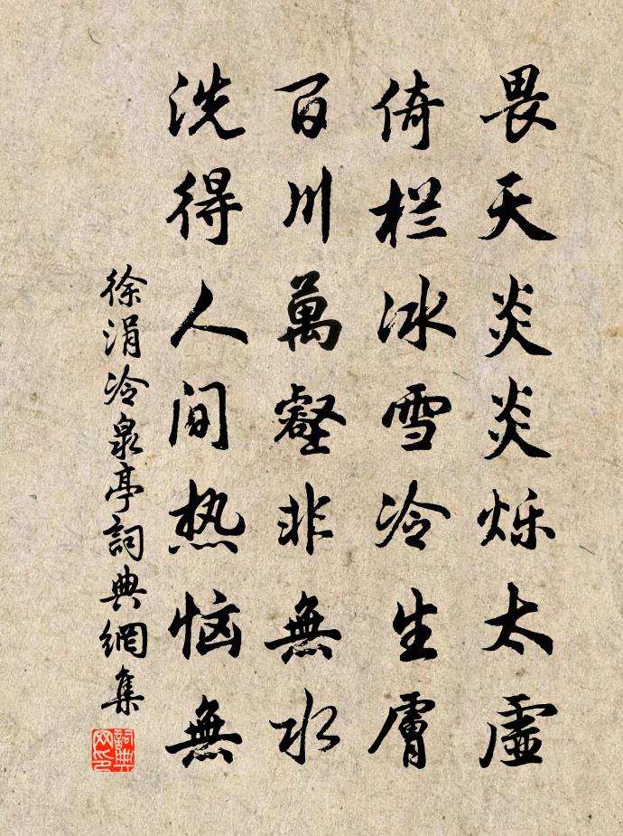 詩詞名句歷史字典書法欣賞書法字典國語詞典說文解字康熙字典古漢語字典標 題 作 者 詩 句 冷泉亭作者:徐涓 朝代:宋代冷泉亭原文畏天炎炎爍太虛,倚欄冰雪冷生膚。百川萬壑非無水,洗得人間熱惱無。詩詞問答問:冷泉亭的作者是誰?答:徐涓問:冷泉亭寫於哪個朝代?答:宋代徐涓冷泉亭書法欣賞冷泉亭書法作品詩詞推薦贈郎德父釋紹嵩〔宋代〕衣弊履穿不諱窮,籬門和竹夾西東。閒棲已合稱高士,發興真成繼庾公。人世鶴歸雙鬢上,丹霄路在五言中。卻須和沈仲一北湖十詠豫章閣陳傅良〔宋代〕人去岷峨水自流,豫章三字竟沈浮。懷人好上層樓看,木落山寒不肯秋。集江瀆池亭宋祁〔宋代〕五月追涼地,滄江剩素漣。林煙昏午日,樓影壓池天。篠密工迷徑,荷欹巧避船。機忘更何事,魚鳥亦留連。觀獵韋莊〔唐代〕苑牆東畔欲斜暉,傍苑穿花兔正肥。公子喜逢朝罷日,將軍夸換戰時衣。鶻翻錦翅雲中落,犬帶金鈴草上飛。直待踏雲行馬鈺〔元代〕重到興平,廣開言路。驀然興盡思歸去。踏莎行計指長安,願人早早心開悟。貧富由天,子孫陰注。算來分定休思送史志道帥建康李洪〔宋代〕簪橐明光備武文,玉麟暫剖別堯雲。朝中禮樂謀元帥,天下英雄有使君。陋矣齊丘當十萬,鄙哉諸葛眎三分。公歸太常引韓玉〔宋代〕東城歸路水雲間。幾曾放、夢魂閒。何日整歸鞍。又人對、西風憑欄。溫柔情性,繫懷傷感,欲訴訴應難。愁聚兩蘭梅詩龍輔〔宋代〕蘭梅逐候舒,種此欲何如。蘭葉堪崇佩,梅花好寄書。一萼紅 登蓬萊閣有感周密〔宋代〕步深幽,正雲黃天淡,雪意未全休。鑒曲寒沙,茂林菸草,俯仰千古悠悠。歲華晚,漂零漸遠,誰念我,同載五湖游龍井喻良能〔宋代〕致身通濕大槐夢,快意畋魚紫石潭。何似相攜古蘭若,細看香篆味茶甘。題林唐臣別業釋紹嵩〔宋代〕茅屋周回松竹陰,依稀氣象似山林。一窗風月生涯足,相與清名映古今。寄周愚卿兄弟趙蕃〔宋代〕渚花飄錦已殘春,幾對江山思故人。邂逅欲書書不得,醒狂於此見天真。又登碧雲亭感懷三十首吳芾〔宋代〕晚上危亭望彼蒼,時時飛電迸流光。嗟人生世須臾里,未必能如電久長。朝中措朱敦儒〔宋代〕元宵初過少吹彈。樓角彩燈殘。踏雪閒尋深院,攜壺試覓幽歡。 * 暫語,文君未寢,五老雙鸞。要共梅花同曉,慶春澤佚名〔宋代〕曉風嚴,正蕭然兔園,薄霧微罩。梅漸弄白,聳危苞、勻勝胭脂,半點瓊瑰小。望江南、信息何杳。縱壽陽妍姿,海陽十詠飛練瀑劉禹錫〔唐代〕晶晶擲岩端,潔光如可把。瓊枝曲不折,雲片晴猶下。石堅激清響,葉動承餘灑。前時明月中,見是銀河瀉。寄溧陽陳朋元明府,約秋末過之范成大〔宋代〕海內交情兩斷金,一官分袂阻登臨。書來恰值看雲眼,夢往誰知共月心。道義只今無捷徑,溪山依舊有清音。西風觀化朱繼芳〔宋代〕看見青蟲作蝶時,不知蝶是此身非。床頭為有南華卷,午枕酣來忽夢飛。丁家洲陽枋〔宋代〕水雲留住覺無墳,札菊催歸知有奪。百丈黃錯牽月色,長洲灣處宿丁家。自江西歸至舊任官舍,贈袁贊府(時經劉展平後)劉長卿〔唐代〕卻見同官喜復悲,此生何幸有歸期。空庭客至逢搖落,舊邑人稀經亂離。湘路來過回雁處,江城臥聽搗衣時。南方名句推薦蠟淚惱東風,舊壘眠新燕。納蘭性德《生查子·鞭影落春堤》 愛臣太親,必危其身;人臣太貴,必易主位。韓非及後人《韓非子·愛臣》 更待菊黃家醞熟,共君一醉一陶然。白居易《與夢得沽酒閒飲且約後期》 不怨天,不尤人。孔子弟子《論語·憲問篇》 正是浴蘭時節動。菖蒲酒美清尊共。歐陽修《漁家傲·五月榴花妖艷烘》 其出彌遠,其知彌少。老子《老子·德經·第四十七章》 謙尊而光,卑而不可逾,君子之終也。佚名《易傳·彖傳上·謙》 草枯鷹眼疾,雪盡馬蹄輕。王維《觀獵》 尚想舊情憐婢僕,也曾因夢送錢財。元稹《遣悲懷三首·其二》 多情卻被無情惱。蘇軾《蝶戀花·春景》