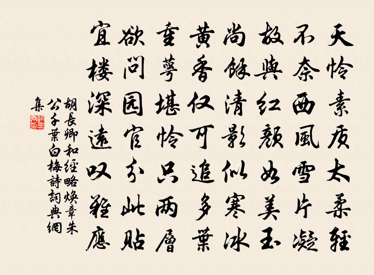 詩詞名句歷史字典書法欣賞書法字典國語詞典說文解字康熙字典古漢語字典標 題 作 者 詩 句 和經略煥章朱公千葉白梅詩作者:胡長卿 朝代:宋代和經略煥章朱公千葉白梅詩原文天憐素質太柔輕,不奈西風雪片凝。故與紅顏如美玉,尚余清影似寒冰。黃香僅可追多葉,重萼堪憐只兩層。欲問園官分此貼,宜樓深遠嘆難應。詩詞問答問:和經略煥章朱公千葉白梅詩的作者是誰?答:胡長卿問:和經略煥章朱公千葉白梅詩寫於哪個朝代?答:宋代胡長卿和經略煥章朱公千葉白梅詩書法欣賞和經略煥章朱公千葉白梅詩書法作品詩詞推薦見黃仲達感秋意張耒〔宋代〕秋風吹衡茅,寂歷如荒村。獨立無與語,悲蟲鳴草根。老木經疾風,枝葉僅得存。疏蔭不滿地,白日耿當軒。北城賜詹騤宋真宗〔宋代〕名閱夸詹氏,新居古五雲。擢科魁眾士,拔萃喜超群。禮肅人畏敬,臚傳世共聞。好將多錦繡,五色耀龍文。再和楊公濟梅花十絕蘇軾〔宋代〕人去殘英滿酒樽,不堪細雨濕黃昏。夜寒那得穿花蝶,知是風流楚客魂。頌證道歌證道歌釋印肅〔宋代〕深嗟蒙懂頑皮靼,只道無人來剔撥。我今年少或龍鍾,胡亂度生管廣撻。偈頌一百三十六首釋惟一〔宋代〕瞿曇未解這一著,雪嶺六年空卜度。不知眼病見空花,認作明星一何錯。自累猶可,更累兒孫。珊瑚枕上兩行淚,挽王德彰劉宰〔宋代〕籃輿咿軋不辭貧,鳥帽離披當幅巾。一劑沖和療寒疾,鄉間不復見斯人。范山人畫山水歌顧況〔唐代〕山崢嶸,水泓澄。漫漫汗汗一筆耕,一草一木棲神明。忽如空中有物,物中有聲。復如遠道望鄉客,夢繞山川身不吳尉東閣西亭劉過〔宋代〕石板橋東閣,軒窗如此華。碧虛澄水鑒,紅影侵霜花。似串歌雲駐,如泥醉帽斜。但驚風露冷,飄落怕還家。仲春雜書二首趙蕃〔宋代〕社公能作雨,社子復成晴。日薄風仍薄,花明柳亦明。吳仲庶殿院寄示與呂沖之馬仲塗唱和詩六篇邀梅堯臣〔宋代〕我實山野人,不識經濟宜。聞歌汴渠勞,謾綴汴渠詩。汴水源本清,隨分黃河枝。濁流方已盛,清派不可推。天王和樂天秋涼閒臥劉禹錫〔唐代〕暑退人體輕,雨餘天色改。荷珠貫索斷,竹粉殘妝在。高僧掃室請,逸客登樓待。槐柳漸蕭疏,閒門少光彩。游杭州山蘇軾〔宋代〕山平村塢迷,野寺鐘相答。晚陰雲失莽,落日猶在塔。行招兩社僧,共步青山月。送客渡石橋,迎客出林樾。幽尋和葉尚書解印二首劉克莊〔宋代〕郡人不識疾呼聲,甘雨和風遍一城。歲久偏多遺愛事,天高未察借留情。舟行精舍漁歌晚,家近華亭鶴唳清。莫比杵聲齊·砧面瑩賀鑄〔宋代〕砧面瑩,杵聲齊。搗就征衣淚墨題。寄到玉關應萬里,戍人猶在玉關西。靈山曾豐〔宋代〕三過靈山總有緣,曉無逗靄晚無煙。橫眠吳楚中央地,高拄東南半壁天。芝草本為人所上,水晶猶得氣之偏。山靈寒拾贊釋道璨〔宋代〕蒼崖鎖寒色,題目分明極。無端書兩字,劃地失平仄。颺卻筆,放卻墨,一句瞭然超百億。懷寄同志釋文珦〔宋代〕垂垂當莫景,每每憶同參。金石敦風誼,雲山異北南。道機應已熟,世夢莫教酣。路遠難相語,裁詩寄短函。岳陽樓晚望崔珏〔唐代〕乾坤千里水雲間,釣艇如萍去復還。樓上北風斜卷席,湖中西日倒銜山。懷沙有恨騷人往,鼓瑟無聲帝子閒。何事居延海樹聞鶯同作陳子昂〔唐代〕邊池無芳樹。鶯聲忽聽新。間關如有意。愁絕若懷人。明妃失漢寵。蔡女沒胡塵。坐聞應落淚。況憶故園春。儀真和同官韻二首劉宰〔宋代〕簿書塵里見清揚,握手論心味更長。何日出林共歸去,故園花竹可游藏。顏徒自樂一瓢飲,漢殿爭陪萬壽觴。馬革名句推薦四月南風大麥黃,棗花未落桐葉長。李頎《送陳章甫》 命室攜童弱,良日登遠遊陶淵明《酬劉柴桑》 不修身而求個名於世者,猶貌甚惡而責妍影於鏡也。顏之推《顏氏家訓·名實篇》 微雨眾卉新,一雷驚蟄始。韋應物《觀田家》 寒日蕭蕭上瑣窗,梧桐應恨夜來霜。李清照《鷓鴣天·寒日蕭蕭上瑣窗》 南山與秋色,氣勢兩相高。杜牧《長安秋望》 見出以知入,觀往以知來列子及其弟子《列子·說符》 人生自是有情痴,此恨不關風與月。歐陽修《玉樓春·尊前擬把歸期說》 但東望、故人翹首。戴復古《賀新郎·寄豐真州》 機關算盡太聰明,反算了卿卿性命。曹雪芹《紅樓夢·第五回》