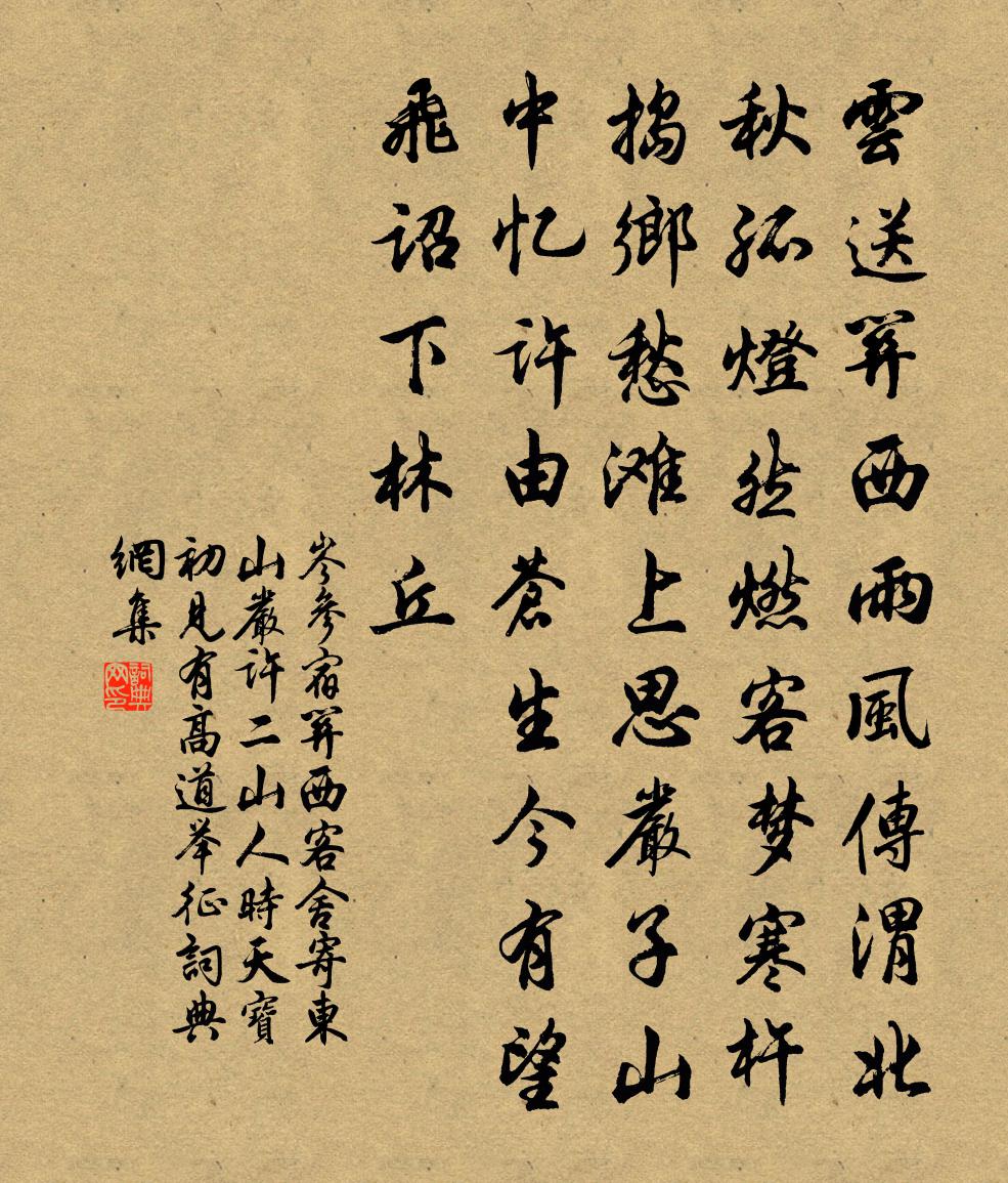 問:《宿關西客舍寄東山嚴、許二山人時天寶初…見有高道舉征》的作者是誰?答:岑參