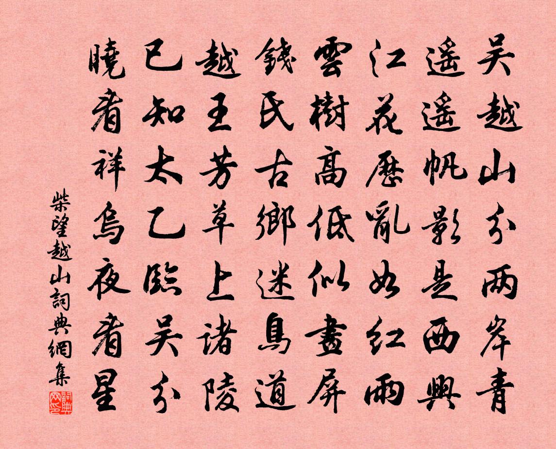 詩詞名句歷史字典書法欣賞書法字典國語詞典說文解字康熙字典古漢語字典標 題 作 者 詩 句 越山作者:柴望 朝代:宋代越山原文吳越山分兩岸青,遙遙帆影是西興。江花歷亂如紅雨,雲樹高低似畫屏。錢氏古鄉迷鳥道,越王芳草上諸陵。已知太乙臨吳分,曉看祥烏夜看星。詩詞問答問:越山的作者是誰?答:柴望問:越山寫於哪個朝代?答:宋代柴望越山書法欣賞越山書法作品詩詞推薦行次羅鄴〔唐代〕終日長程復短程,一山行盡一山青。路傍君子莫相笑,天上由來有客星。觀雲陳長方〔宋代〕浮雲聚散復西東,此處容君一線通。全體露時如不領,問君何日解相逢。偶成曹彥約〔宋代〕回心三朋不違仁,已後元曾小失真。一片雲花輕關水,冥冥不復省漓醇。八六子(次篔房韻)李演〔宋代〕乍鷗邊、一番腴綠,流戲又怨苹花。看晚吹、約晴歸路,夕陽分落漁家。輕雲半遮。縈情芳草無涯。還報舞香一曲戲作家釀二首蘇轍〔宋代〕我飲半合耳,晨興不可無。千錢買一斗,眾口分須臾。月俸本有助,法許吏未俞。愍愍坐相視,饞涎落盤盂。潁潩月岩葛立方〔宋代〕頭轉狻猊身臥虎,斕斑苔蘚蒼顏古。鑿空融結寶月形,只露半規余未吐。正觀傍睨苦有恨,擬借天工修月斧。桂樹贈軒轅先生貫休〔唐代〕曾親文景上金鑾,語共容城語一般。久向紅霞居不出,若非清世見應難。滿爐藥熟分仙盡,幾局棋終看海乾。略問袁居士來自桐廬索詩贈二絕句林季仲〔宋代〕霜髯垂臆杖過眉,得得桐廬江上來。對我休談釣台好,姓名方掛北山移。偈頌一百五十首釋心月〔宋代〕與麽則易,不與麽則難。不與麽則易,與麽則難。金烏飛上玉欄乾,眨上眉毛子細看。山水畫唐寅〔明代〕水色山光明几上,松陰竹影度窗前。焚香對坐渾無事,自與詩書結靜緣。幽居初夏陸游〔宋代〕鬢毛禿盡齒牙疏,難受人間折簡呼。詩酒本來無藉在,形骸況復不枝梧。槐陰漸密能鄣日,池水新生可浴鳧。移得入白水訪劉致中昆仲劉子翬〔宋代〕夜雨歇清曉,山椒雲氣昏。駕言聊出遊,窈窕窮川原。側帽避橫篠,揚祛障晴暾。春泉散石壁,細草羅丘園。陟峻題金陵王處士水亭(此亭蓋齊朝南苑,又是陸機故宅)李白〔唐代〕王子耽玄言,賢豪多在門。好鵝尋道士,愛竹嘯名園。樹色老荒苑,池光盪華軒。此堂見明月,更憶陸平原。掃拭新晴陸游〔宋代〕雨葉玲瓏曉日明,經旬風雨得初晴。欹眠歇盡人間念,時聽幽禽一兩聲。東籬陸游〔宋代〕漫道深居晝掩關,東籬栽接不曾閒。每因清夢遊敷水,自覺前身隱華山。花發時時攜綠酒,客來往往羨朱顏。藥爐西江月佚名〔宋代〕翡翠枝頭晚萼,嬋娟月里飄香。春蘭秋蕙作尋常。不與夭桃朋黨。笑見深紅淺白,從教蝶舞蜂忙。風流標緻道家妝木蘭花慢(歸隱湖山,書寄陸處梅)張炎〔宋代〕二分春是雨,采香徑、綠陰鋪。正私語晴蛙,于飛晚燕,閒掩紋疏。流光慣欺病酒,問楊花、過了有花無。啼鴂初鵲橋仙(□□立春)郭應祥〔宋代〕泥牛擊罷,銀幡卸了,又是一番春至。有人耳畔語低低,道宜入、新年吉利。堆盤紅縷,浮杯綠蟻,自有及時風味句李先〔宋代〕寧舍濟川航。岳館沈佺期〔唐代〕洞壑仙人館,孤峰玉女台。空濛朝氣合,窈窕夕陽開。流澗含輕雨,虛岩應薄雷。正逢鸞與鶴,歌舞出天來。名句推薦人生不滿百,常懷千歲憂。佚名《增廣賢文·上集》 朝作輕寒暮作陰,愁中不覺已春深。屈大均《壬戌清明作》 菀菀黃柳絲,濛濛雜花垂。常建《春詞二首》 行盡江南,不與離人遇。晏幾道《蝶戀花·夢入江南煙水路》 滿堂唯有燭花紅,歌且從容,杯且從容。辛棄疾《一剪梅·中秋元月》 禍與福同門,利與害同城。佚名《增廣賢文·下集》 樂殊貴賤,禮別尊卑。周興嗣《千字文·全文》 綠陰青子老溪橋。羞見東鄰嬌小。吳文英《西江月·賦瑤圃青梅枝上晚花》 千金縱買相如賦,脈脈此情誰訴。辛棄疾《摸魚兒·更能消幾番風雨》 殘酒憶荊高,燕趙悲歌事未消。陳維崧《南鄉子·邢州道上作》