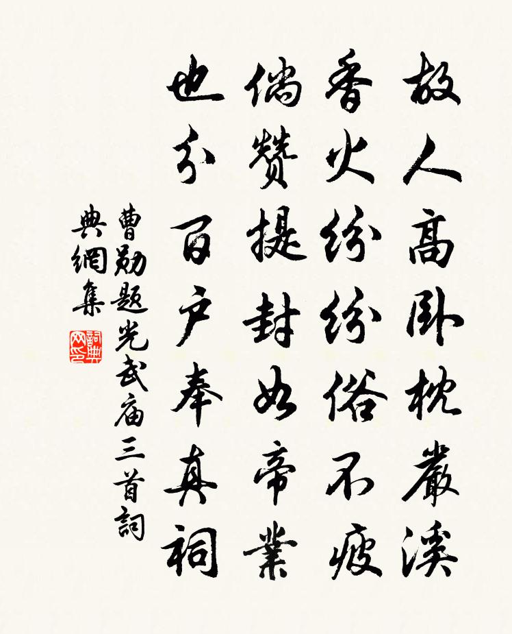 詩詞名句歷史字典書法欣賞書法字典國語詞典說文解字康熙字典古漢語字典標 題 作 者 詩 句 題光武廟三首作者:曹勛 朝代:宋代題光武廟三首原文故人高臥枕嚴溪,香火紛紛俗不疲。倘贊提封如帝業,也分百戶奉真祠。詩詞問答問:題光武廟三首的作者是誰?答:曹勛問:題光武廟三首寫於哪個朝代?答:宋代曹勛題光武廟三首書法欣賞題光武廟三首書法作品詩詞推薦宮辭李商隱〔唐代〕君恩如水向東流,得寵憂移失寵愁。莫向尊前奏《花落》,涼風只在殿西頭。次韻盧監方岳〔宋代〕蘭亭人寂幾何年,著我糟丘亦冗員。尋訪雪溪無酒債,主張禊帖有詩權。千岩秀處書如堵,五月涼時藕似船。只麽春日偶書寇準〔宋代〕柳岸花塘慵獨賞,閒門春盡阻閒遊。少年多故心先老,卻被人疑似白頭。孤憤吟十三首高斯得〔宋代〕國家元氣是人材,稍露光芒盡力催。今日舉朝皆婦女,邦衡此語亦誠哉。詠史詩谷口胡曾〔唐代〕一旦天真逐水流,虎爭龍戰為諸侯。子真獨有煙霞趣,谷口耕鋤到白頭。己酉元日陸游〔宋代〕夜雨解殘雪,朝陽開積陰。桃符呵筆寫,椒酒過花斟。巷柳搖風早,街泥濺馬深。行宮放朝賀,共識慕堯心。句錢惟演〔宋代〕雪意未成雲著地,秋聲不斷雁連天。送郎侍郎致政歸錢塘釋重顯〔宋代〕帆掛西風別海城,二疏千古道相應。誰夸富貴沽時譽,自笑經綸作技能。殘葉賦題紅片片,遠山供望碧層層。武林浣溪沙 暮春集興邵亨貞〔元代〕竹檻雲*古畫圖。煙堤花*小蓬壺。畫長人靜鳥相呼。玄璧光浮銅雀研,紫綿香冷博山爐。半欹高枕當人扶。偈頌八十五首釋妙倫〔宋代〕小魚吞大魚,尾巴露一橛。漁翁醉不知,空把絲綸掣。睡起舒邦佐〔宋代〕睡起挼挲兩眼眵,捲簾惟見水平池。小窗幽寂無人到,自撥爐薰試一旗。畫虎游次公〔宋代〕平生射虎裴將軍,馬獰如龍弓百鈞。手捻白羽旁無人,注虎使虎不敢奔。須臾叢薄爛斑出,人馬不知俱辟易。矢知夜賦陸游〔宋代〕檐滴新春雨,窗昏半夜燈。病無詩一字,窮賴酒三升。世路澀如棘,祠官冷欲冰。殘年只此是,年少解飛騰。偈頌十五首釋寶印〔宋代〕前箭射人可,後箭射人深。鍾先生沒後,此道少知音。中峰吳泳〔宋代〕連空閣道結飛霞,衲子云游少住家。問訊兩仙呼不應,鳥啼驚落一岩花。過鼌掾端智賀鑄〔宋代〕西風吹晚雨,飢雀噪寒叢。文舉對談客,坐慙觴豆空。咄嗟宦遊子,貧病略相同。斗俸折腰得,醉錢常不供。君看秋興陸游〔宋代〕囷儲赤米枝梧飯,篋有青氈準擬寒。政使堆金無處用,不須常貯一錢看。次韻子瞻送陳睦龍圖出守潭州蘇轍〔宋代〕海上石橋餘折棟,大舶記君過鐵瓮。東行萬里若乘空,老蜃辰鯨應入鞚。波搖風卷臥不起,免教髀肉鞍磨痛。歸來次韻和答斯遠入城見迎詩趙蕃〔宋代〕往辱攜詩送,今勞入郭迎。交情如許厚,俗眼亦增明。冬仲溪宜涸,灘長路失平。要歸歸已近,物物系吾情。浣溪沙(泊望仙橋月夜舟中留客)毛滂〔宋代〕晚色輕涼入畫船。雲峰飛盡玉為天。疏飆自為月褰簾。細酌流霞君且住,更深風月更清妍。為誰淒斷小橋邊。名句推薦臥看滿天雲不動,不知雲與我俱東。陳與義《襄邑道中》 雁行緣石徑,魚貫度飛梁。鮑照《代出自薊北門行》 守節自誓,親誨之學。歐陽修《畫地學書》 太乙近天都,連山接海隅王維《終南山》 江頭未是風波惡,別有人間行路難!辛棄疾《鷓鴣天·送人》 青紫雖被體,不如早還鄉。杜甫《夏夜嘆》 獨行獨坐,獨唱獨酬還獨臥。朱淑真《減字木蘭花·春怨》 念月榭攜手,露橋聞笛。周邦彥《蘭陵王·柳》 楊花落,燕子橫穿朱閣。李清臣《謁金門·楊花落》 奈何今之人,雙目送飛鴻。李白《鞠歌行》