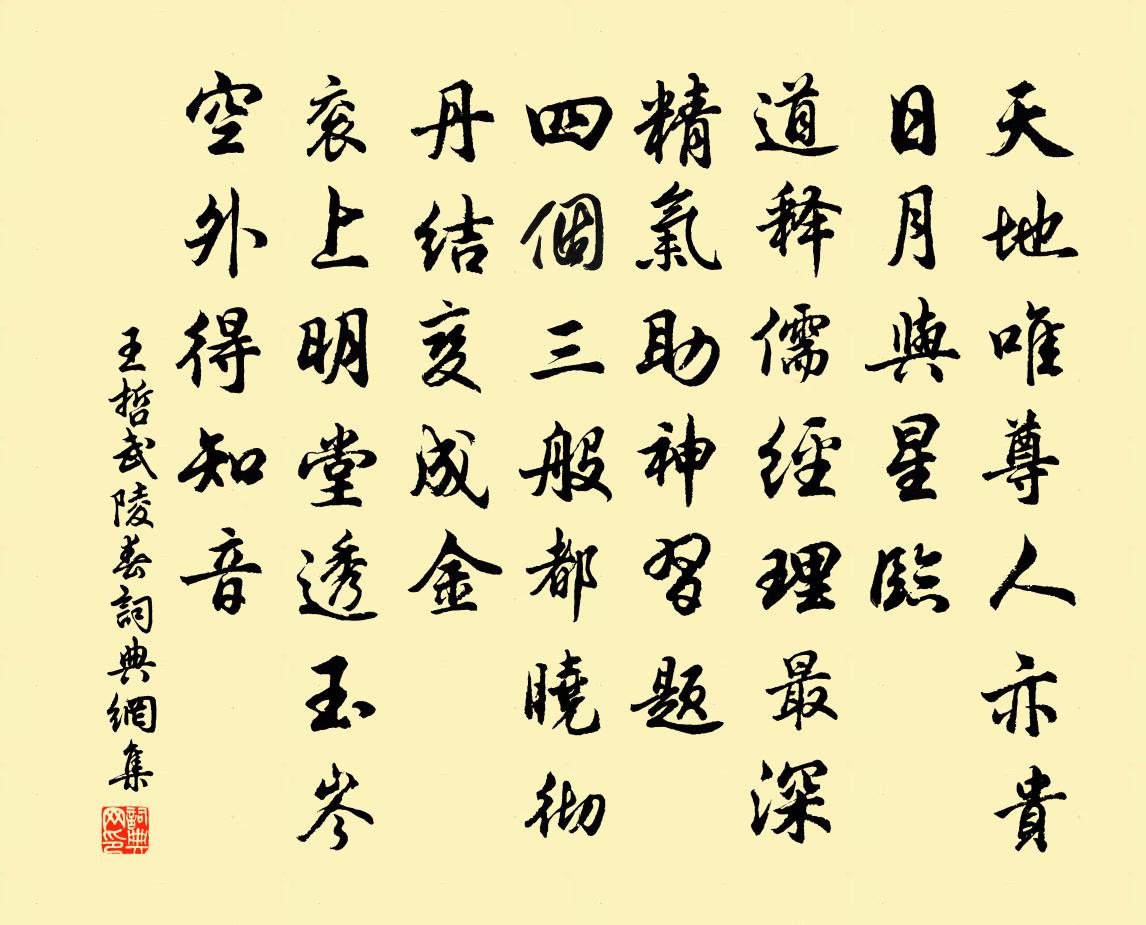 詩詞名句歷史字典書法欣賞書法字典國語詞典說文解字康熙字典古漢語字典標 題 作 者 詩 句 武陵春作者:王哲 朝代:元代武陵春原文天地唯尊人亦貴,日月與星臨。道釋儒經理最深。精氣助神習題。四個三般都曉徹,丹結變成金。袞上明堂透玉岑。空外得知音。詩詞問答問:武陵春的作者是誰?答:王哲問:武陵春寫於哪個朝代?答:元代問:武陵春是什麼體裁?答:詞王哲武陵春書法欣賞武陵春書法作品詩詞推薦念奴嬌沈瀛〔宋代〕陽春布暖,又還見、光景如梭催逼。帝里皇都人共道,好個前時春色。默默暗沈,含顰不語,此意誰人識。何如索偈頌一百三十六首釋惟一〔宋代〕獅子吼,無畏說,百獸聞之皆腦裂。望江南(贈談獻可)張孝祥〔宋代〕談子醉,獨立睨東風。未試玉堂揮翰手,只今楚澤釣魚翁。萬事舉杯空。謀一笑,一笑與君同。身老南山看射虎,簡周宗聖張弋〔宋代〕曠野有芳芷,近江無早鶯。春詩定多少,旬日又清明。樹暗憐楊柳,花開認橘橙。相尋每乖阻,夢裡亦愁生。東宮出示和御製秋懷詩恭和二首周必大〔宋代〕沛宮歌風雲,威德加四海。雄詞照千古,編簡亦光彩。惟皇與同符,興寄秋序改。宸章振遠響,寂寞喑眾籟。有如政黃牛贊釋慧開〔宋代〕資福從來不識羞,橘皮熟炙逞風流。倚筇懶賢侯不命,又卻騎牛更覓牛。秋山寄陳讜言王昌齡〔唐代〕岩間寒事早,眾山木已黃。北風何蕭蕭,茲夕露為霜。感激未能寐,中宵時慨慷。黃蟲初悲鳴,玄鳥去我梁。獨臥送歐陽仲勉通判渭州孔武仲〔宋代〕當年筆戰共詞場,老大聯祛振鷺行。薦牘北來當玉座,軺車西去擁銀章。潼關曉色雲藏市,渭貢春寒菜有霜。公退次萬年賁和尚韻釋慧遠〔宋代〕就得頭來正好參,倚佗門戶不相諳。導師故有眠雲句,應笑空生夢裹談。呈江西倉使汪太社二首曾豐〔宋代〕乾道群充賦,尚書獨主盟。當今賢使者,似我老先生。湛輩追隨念,韓門顧盼情。相逢談不了,敢更以詩鳴。晚望有感鄭剛中〔宋代〕霜作晴寒策策風,數家籬落澹煙中。沙鷗徑去魚兒飽,野鳥相呼柿子紅。寺隱鐘聲穿竹去,洞深人跡與雲通。雁門嘉平旦雪陳起〔宋代〕天一孕真精,裁成六出霙。大聲聞竹折,空色助梅清。節壯氈甘齧,兵奇鶩自驚。男兒須事業,謾說剡舟明。偈頌七十六首釋師觀〔宋代〕撾動禾山鼓,吹起少林笛。當機覿面提,覿面當機疾。咄,一任風吹日炙。獻大京兆薛常侍能鄭谷〔唐代〕恥將官業競前途,自愛篇章古不如。一炷香新開道院,數坊人聚避朝車。縱游藉草花垂酒,閒臥臨窗燕拂書。唯有游陵雲寺蘇洵〔宋代〕長江觸山山欲摧,古佛咒水山之隈,千航萬舸膝前過,仰視絕頂皆徘徊。足踏重濤怒洶湧,背負喬嶽高崔嵬。予昔元夕八首陳世崇〔宋代〕寒星萬點御香飄,和氣潛回積雪消。盈耳嵩呼聲不絕,熙熙春意入簫韶。偈頌六十五首釋普濟〔宋代〕冬不寒,臘後看。無人知此意,令我憶南泉。題黃嗣深家所蓄惠崇秋晚畫曾幾〔宋代〕叢蘆受風低,積潦得霜淺。沙勻洲渚淨,水澹鳧鴨遠。禪扉掩晝夜,短紙開秋晚。欲問此間詩,半山呼不返。和傅山父小園十詠李曾伯〔宋代〕喬木豈能忘故國,結茅聊復紀新亭。此君玉立傍無友,猶有幽禽靜可聽。水龍吟(雪霽登吳山見滄閣,聞城中簫鼓聲)翁元龍〔宋代〕畫樓紅濕斜陽,素妝褪出山眉翠。街聲暮起,塵侵燈戶,月來舞地。宮柳招鶯,水葒飄雁,隔年春意。黯梨雲,散名句推薦五更鼓角聲悲壯,三峽星河影動搖。杜甫《閣夜》 問相思、他日鏡中看,蕭蕭發。嚴羽《滿江紅·送廖叔仁赴闕》 側見雙翠鳥,巢在三珠樹張九齡《感遇十二首·其四》 見楊柳飛綿滾滾,對桃花醉臉醺醺。王實甫《十二月過堯民歌·別情》 鷹擊長空,魚翔淺底,萬類霜天競自由。 * 《沁園春·長沙》 少室眾峰幾峰別,一峰晴見一峰雪。李頎《少室雪晴送王寧》 海水夢悠悠,君愁我亦愁。佚名《西洲曲》 菡萏香銷翠葉殘,西風愁起綠波間。李璟《攤破浣溪沙·菡萏香銷翠葉殘》 治世不一道,便國不必法古。商鞅《商君書·更法》 元方難為兄,季方難為弟。劉義慶《世說新語·德行》
