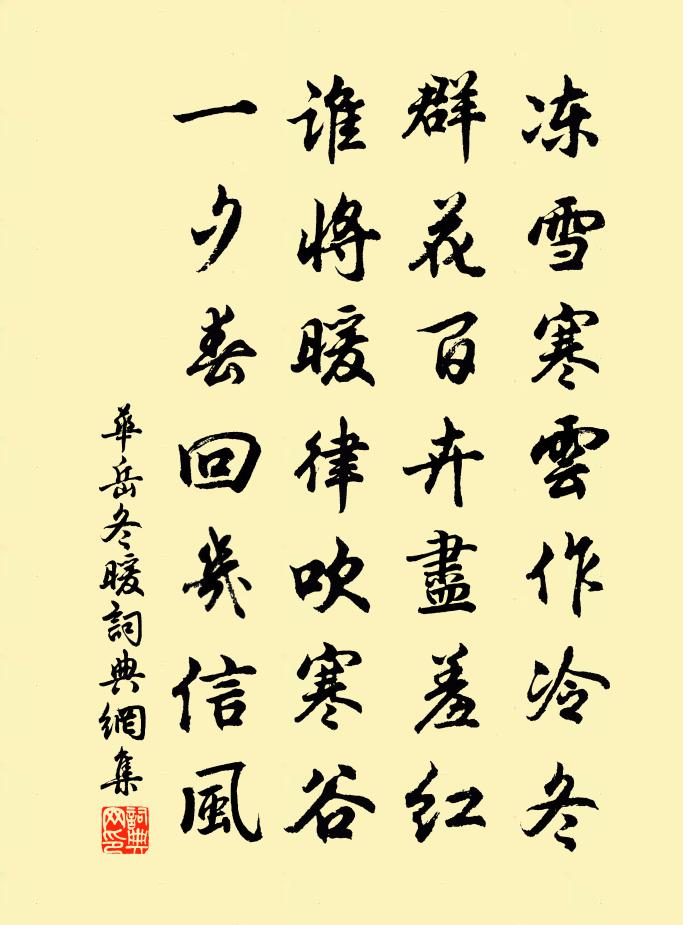 詩詞名句歷史字典書法欣賞書法字典國語詞典說文解字康熙字典古漢語字典標 題 作 者 詩 句 冬暖作者:華岳 朝代:宋代冬暖原文凍雪寒雲作冷冬,群花百卉盡羞紅。誰將暖律吹寒谷,一夕春回幾信風。詩詞問答問:冬暖的作者是誰?答:華岳問:冬暖寫於哪個朝代?答:宋代華岳冬暖書法欣賞冬暖書法作品詩詞推薦月夜憶樂天兼寄微之(一作月夜寄微之,憶樂天)劉禹錫〔唐代〕今宵帝城月,一望雪相似。遙想洛陽城,清光正如此。知君當此夕,亦望鏡湖水。展轉相憶心,月明千萬里。劉伶徐鈞〔宋代〕宗尚無為學有原,背違師訓亦安然。至於身死便埋說,明犯莊書所戒言。當欲游南山行曹植〔魏晉〕東海廣且深。由卑下百川。五嶽雖高大。不逆垢與塵。良木不十圍。洪條無所因。長者能博愛。天下寄其身。大匠游郭希呂石洞二十詠石井劉過〔宋代〕銀床繞周遭,一規寒浸水。試敲拄杖看,恐觸蛟龍起。送陳器之赴紹興初官薛師石〔宋代〕郡古湖如鏡,照人心膽清。閒曹應事簡,盡日讀書聲。府主舊知舉,同僚親弟兄。人言遊宦樂,難得比君榮。寄贈湯司諫二首趙蕃〔宋代〕自聞寬法離新州,日日江頭數過舟。學子尚知稱述作,君王寧不念謀猷。五車頗困十年讀,一見蘄勝萬戶侯。我亦白蓮黃庚〔宋代〕泰華峰頭種,移根植野塘。一池秋夜月,萬柄曉天霜。西帝羅青蓋,真妃逞素狂。鷺飛無認處,點點水雲鄉。奉陪侍中游石筍溪十二韻盧綸〔唐代〕朝日照靈山,山溪浩紛錯。圖書無舊記,鯀禹應新鑿。雙壁瀉天河,一峰吐蓮萼。潭心亂雪卷,岩腹繁珠落。彩蛤盧巴驛聞張御史張判官欲到不得待留贈之張說〔唐代〕旅竄南方遠,傳聞北使來。舊庭知玉樹,合浦識珠胎。白髮因愁改,丹心託夢回。皇恩若再造,為憶不然灰。宿難老堂張伯常〔宋代〕漆園秋淨夜堂虛,偶伴橫林隱者居。紙縐白雲垂帳厚,荻篩明月簾疏。玉棋子奪三軍令,金剪刀翻數體書。疏廣拂奉和幸安樂公主山莊應制李迥秀〔唐代〕詰旦重門聞警蹕,傳言太主奏山林。是日回輿羅萬騎,此時歡喜賜千金。鷺羽鳳簫參樂曲,荻園竹徑接帷陰。手舞平都山二首李流謙〔宋代〕殷勤雪色鹿,報我上空濛。老鶴三山客,蒼松百歲翁。洞雲浮地出,池水與江通。仙榼無多酌,逡巡兩頰紅。和元絳〔宋代〕晼晚年垂盡,陰沈氣始凝。雲霄方一色,霰雪忽相仍。何處茲辰好,吾州自古稱。稽山呈刻畫,鏗水弄鮮澄。佛土送休上人之荊門玉泉寺韓維〔宋代〕憐師真達者,於世了無求。萬事漚起滅,一身雲去留。樓台金地古,風雨玉泉秋。安得超塵網,相從物外游。寄薛景石趙師秀〔宋代〕虛窗風颯然,獨臥聽殘蟬。家務貧多闕,詩篇老漸圓。清秋添一月,故里別三年。最憶君門首,黃花匝野泉。自嘆拙李山甫〔唐代〕自憐心計拙,欲語更悲辛。世亂僮欺主,年衰鬼弄人。鏡中顏欲老,江上業長貧。不是劉公樂,何由變此身。春雨陸游〔宋代〕倚闌正爾受斜陽,細雨霏霏度野塘。本為柳枝留淺色,卻教梅蕊洗幽香。小沾蝶粉初何惜,暫澀鶯聲亦未妨。造物和御史韋大夫喜霽之作褚亮〔唐代〕晴天度旅雁,斜影照殘虹。野淨餘煙盡,山明遠色同。沙平寒水落,葉脆晚枝空。白簡光朝幰,彤騶出禁中。息駕庭梅詠張九齡〔唐代〕芳意何能早,孤榮亦自危。更憐花蒂弱,不受歲寒移。朝雪那相妒,陰風已屢吹。馨香雖尚爾,飄蕩復誰知。偈傾一百六十九首釋智朋〔宋代〕南州北州,萬緒千頭。釣絲絞水,紙捻無油。鶴神飛上天,土宿騎黃牛。大海有十件奇物事,未曾說著。名句推薦春宵一刻值千金,花有清香月有陰。蘇軾《春宵·春宵一刻值千金》 憶共錦衾無半縫,郎似桐花,妾似桐花鳳。王士禎《蝶戀花·和漱玉詞》 君子博學而日參省乎己,則知明而行無過矣。荀子《荀子·勸學》 禁里疏鍾官舍晚,省中啼鳥吏人稀。王維《酬郭給事 / 贈郭給事》 務本節用財無極。荀子《荀子·成相》 月出驚山鳥,時鳴春澗中。王維《鳥鳴澗》 柳條百尺拂銀塘,且莫深青只淺黃。楊萬里《新柳》 扈蹕老臣身萬里,天寒來此聽江聲!陸游《龍興寺吊少陵先生寓居》 細影將圓質,人間幾處看。薛濤《月》 秋來相顧尚飄蓬,未就丹砂愧葛洪。杜甫《贈李白》