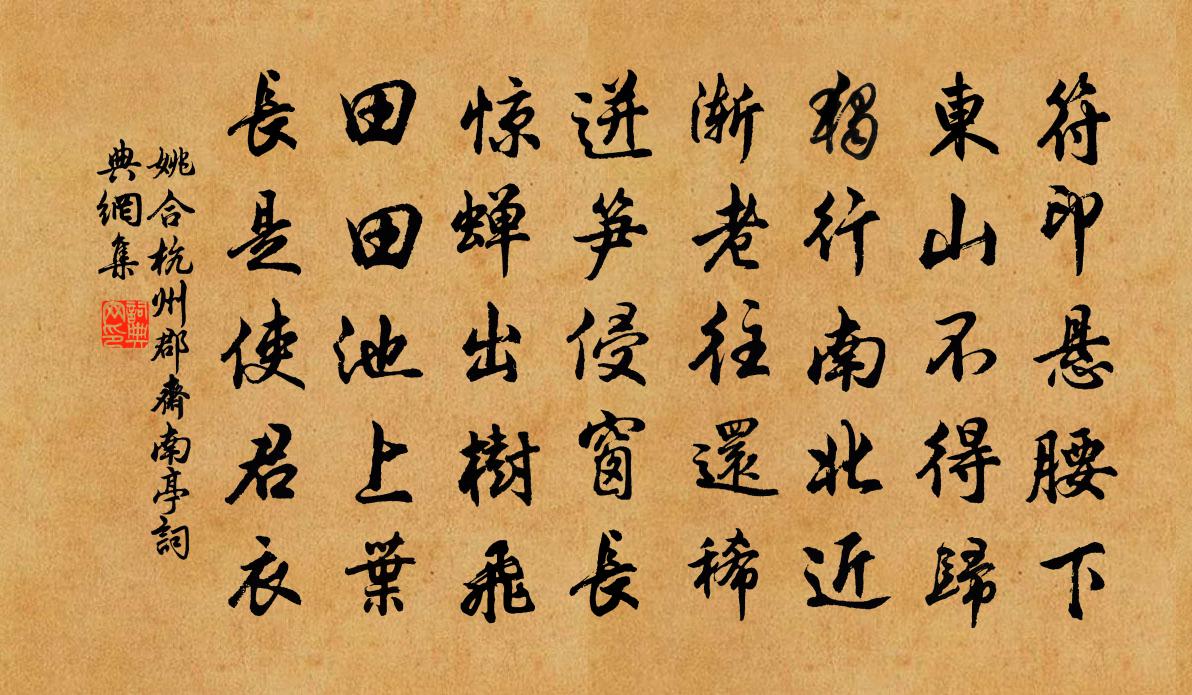 詩詞名句歷史字典書法欣賞書法字典國語詞典說文解字康熙字典古漢語字典標 題 作 者 詩 句 杭州郡齋南亭作者:姚合 朝代:唐代杭州郡齋南亭原文符印懸腰下,東山不得歸。獨行南北近,漸老往還稀。迸筍侵窗長,驚蟬出樹飛。田田池上葉,長是使君衣。詩詞問答問:杭州郡齋南亭的作者是誰?答:姚合問:杭州郡齋南亭寫於哪個朝代?答:唐代問:杭州郡齋南亭是什麼體裁?答:五律姚合杭州郡齋南亭書法欣賞杭州郡齋南亭書法作品注釋全唐詩:卷500-40詩詞推薦賀新郎(肇慶府送談金華、張月窗)葛長庚〔宋代〕謂是無情者。又如何、臨歧欲別,淚珠如灑。此去蘭舟雙槳急,兩岸秋山似畫。況已是、芙蓉開也。小立西風楊柳松陸肱〔唐代〕雪霜知勁質,今古占嘉名。斷砌盤根遠,疏林偃蓋清。鶴棲何代色,僧老四時聲。鬱郁心彌久,煙高萬井生。壽春進祝聖七首搜揚草澤貫休〔唐代〕俟時兼待價,垂棘出塵埃。仄席三旌切,移山萬里來。煙霞衣上落,閶闔雪中開。壽酒今朝進,無非出世才。紀秀野之景舒邦佐〔宋代〕秀野吾曾到,名新景亦嘉。雨移新到竹,晴接舊來花。矗矗山圍立,團團樹繞家。病中心漫往,無計聚摶沙。贈張員外兒杜荀鶴〔唐代〕張公一子才三歲,聞客吟聲便出來。喚物舌頭猶未穩,誦詩心孔迥然開。天生便是成家慶,年長終為間世才。月里水亭陸游〔宋代〕水亭不受俗塵侵,葛帳筠床弄素琴。一片風光誰畫得:紅蜻蜓點綠荷心。江城梅花引(登高)劉將孫〔宋代〕明霞回雨霽秋空。笑難逢。步城東。直上翠微,客有可人同。回首向來輕節序,筋力異,心猶在,愧鬢蓬。悲年冉景祐釋奠武成王六首佚名〔宋代〕上公揶事,兗服斯皇。禮容濟濟,佩鄉鏘鏘。靈斿惚怳,嘉薦令芳。神具醉止,降福穰穰。送劉通判二首趙蕃〔宋代〕射策今晁董,摛詞昔左班。題輿已最課,召節待遄頒。鵬背九萬里,龍媒十二閒。除書看台閣,盛事聳荊蠻。思越人(集句)鄭少微〔宋代〕欲把長繩系日難。紛紛從此見花殘。休將世事兼身事,須看人間比夢間。紅燭繼,艷歌闌。等閒留客卻成歡。勸君平江守禱晴即應時近元夕矣寄呈五絕句仲並〔宋代〕丹邱雨裹看春回,密霧濃雲撥不開。怪底寒窗烘曉日,朱轓親禱梵宮來。偶成曹彥約〔宋代〕桃紅柳綠簇春華,燕語鶯啼盡日嘉。誰信聲聲沂水詠,又知處處杏支家。題張氏池亭齊己〔唐代〕樹石叢叢別,詩家趣向幽。有時閒客散,始覺細泉流。蝶到琴棋畔,花過島嶼頭。月明紅藕上,應見白龜游。茶湯會乞頌釋法薰〔宋代〕鋪心無下亦無高,一等無心次第澆。便是口吞三世佛,霑化涓滴也難消。漕司檄勸稼望見資州憶王褒李鼎祚度正〔宋代〕文王既沒易中沒,孔子重明漢又衰。可惜李生真力學,但求象數不求詞。秦接衰周漢接秦,漢儒議論盡真醇。如何凌雲峰釋延壽〔宋代〕煙蘿高巘勢凌雲,影瀉斜陽出海門。曾與支公探隱去,夜寒雷雨上方聞。訾家洲樂雷發〔宋代〕竹塢松灣遍屨痕,斷碑無首野苔昏。江山應識前賢事,裴柳今存幾世孫。島霧海霞留古意,春猿秋鶴冷騷魂。何人句李曾伯〔宋代〕每恨從來欠機會,卻憐今代少英雄。邵武李公晦方子佳士也以其祖澹軒先生呂之行孫應時〔宋代〕海內非無士,南中更有公。一門嚴禮范,十世篤儒風。不遇心何愧,雖亡道未窮。芝蘭今鼎盛,天必報陰功。送邢昂處士南遊范仲淹〔宋代〕落落崆峒一大儒,四方心逸憶江湖。東南賴有林君復,萬里清風去不孤。名句推薦性孤高似柏,阿嬌金屋。陸容《滿江紅·詠竹》 驚風亂颭芙蓉水,密雨斜侵薜荔牆。柳宗元《登柳州城樓寄漳汀封連四州》 垂柳依依惹暮煙,素魄娟娟當繡軒。王元鼎《憑欄人·閨怨》 春山暖日和風,闌乾樓閣簾櫳,楊柳鞦韆院中。白樸《天淨沙·春》 今夕何夕,見此良人?佚名《綢繆》 雨里雞鳴一兩家,竹溪村路板橋斜。王建《雨過山村》 蠟燭有心還惜別,替人垂淚到天明。杜牧《贈別》 絕頂茅庵里,老衲正孤吟。納蘭性德《水調歌頭·題西山秋爽圖》 大者不能,小者不為,是棄國捐身之道也。荀子《荀子·大略》 寬而栗,柔而立,愿而恭,亂而敬,擾而毅,直而溫,簡而廉,剛而塞,強而義。佚名《尚書·虞書·皋陶謨》