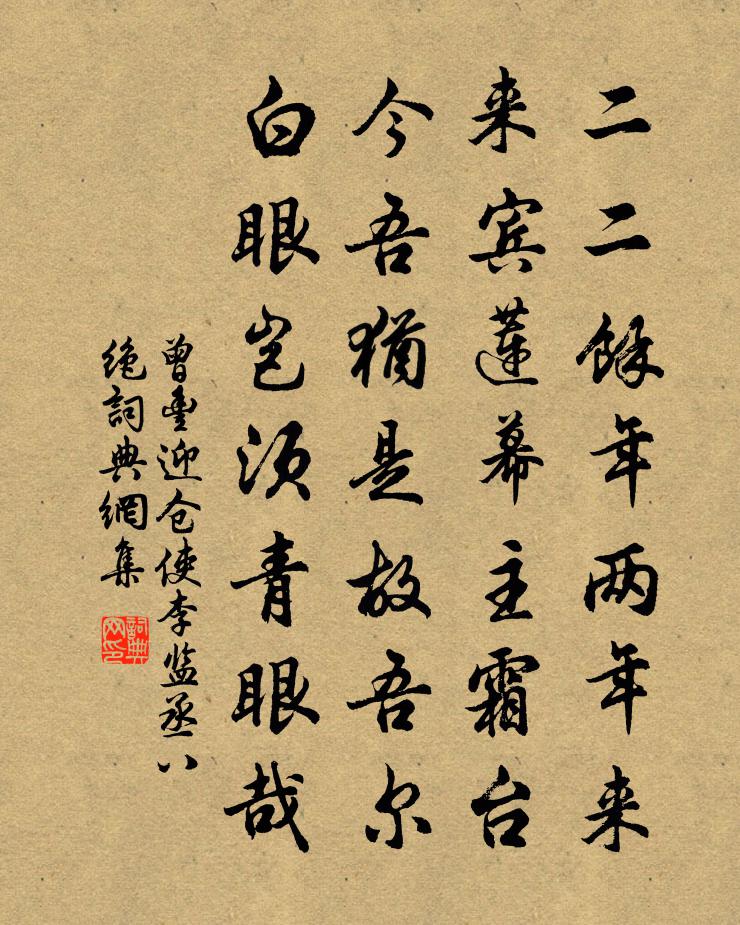 詩詞名句歷史字典書法欣賞書法字典國語詞典說文解字康熙字典古漢語字典標 題 作 者 詩 句 迎倉使李監丞八絕作者:曾豐 朝代:宋代迎倉使李監丞八絕原文二二餘年兩年來,來賓蓮幕主霜台。今吾猶是故吾爾,白眼豈須青眼哉。詩詞問答問:迎倉使李監丞八絕的作者是誰?答:曾豐問:迎倉使李監丞八絕寫於哪個朝代?答:宋代曾豐迎倉使李監丞八絕書法欣賞迎倉使李監丞八絕書法作品詩詞推薦昭潭十愛梅摯〔宋代〕我愛昭州士,平居富塾庠。興賢遵漢詔,論秀美周鄉。藝苑蒲開牒,書堂縹結囊。蟾宮前後進,一一手間香。和梁簽判潁州西湖十三題射堂蘇頌〔宋代〕射者如仁求審固,美哉成室序朋儔。今時賓禮存無幾,舍矢猶堪一獻酬。永康虎頭山孫應時〔宋代〕去年東上虎頭灘,今年西踏虎頭山。定無萬里封侯相,且復兩川行腳還。眼中金馬碧雞路,坐上銅梁玉壘關。丈夫宮詞王仲修〔宋代〕璧月珠星應律灰,兩班稱慶一陽回。九韶聲裹千秋曲,五色雲中萬壽杯。寄裴生乞釣鉤溫庭筠〔唐代〕一隨菱棹謁王侯,深愧移文負釣舟。今日太湖風色好,卻將詩句乞魚鉤。雨李嶠〔唐代〕西北雲膚起,東南雨足來。靈童出海見,神女向台回。斜影風前合,圓文水上開。十旬無破塊,九土信康哉。老而健貧而詩自志其喜八首方回〔宋代〕弱冠至休致,日須成一詩。貧猶常飲客,老幸不招醫。節慾無真病,輕財似太痴。此吟得佳句,新買早梅枝。夏日寺中有懷薛能〔唐代〕亭午四鄰睡,院中唯鳥鳴。當門塞鴻去,欹枕世人情。地燥蒼苔裂,天涼晚月生。歸家豈不願,辛苦未知名。題玉山村叟屋壁錢起〔唐代〕谷口好泉石,居人能陸沈。牛羊下山小,煙火隔雲深。一逕入溪色,數家連竹陰。藏虹辭晚雨,驚隼落殘禽。涉趣南湖台三首蔣堂〔宋代〕水次揭危亭,煙堤四面平。栽薦延宿鷺,種柳待啼鶯。雪霽清流漲,風來夜艇橫。輕肥莫臨顧,我老懶逢迎。袷享八首真宗〔宋代〕上天眷命,佑我丕基。翼翼皇祖,不耀其輝。積厚流長,福祿攸宜。祀事孔時,曾孫篤之。方氏墓廬扁曰白雲飛處薛嵎〔宋代〕諸峰互隱蔽,一望一增悲。觸目易成感,思親無盡時。松扉陰似雨,翁仲立如痴。出岫亦何意,悠然自不知。古漁父詞十二首王銍〔宋代〕萬里號風雪滿山,黃蘆晻靄水汪灣。九衢朝馬愁泥滑,不識漁翁興未閒。寄孫莘老湖州墨妙亭曾鞏〔宋代〕隆名盛位知難久,壯字豐碑亦易亡。棗木已非真篆刻,色絲空喜好文章。峴山漢水成虛擲,大廈深檐且秘藏。好事江帆羅鄴〔唐代〕別離不獨恨蹄輪,渡口風帆發理頻。何處青樓方憑檻,半江斜日認歸人。有所思(一作古有所思行)李白〔唐代〕我思仙人乃在碧海之東隅。海寒多天風,白波連山倒蓬壺。長鯨噴涌不可涉,撫心茫茫淚如珠。西來青鳥東飛去,酹江月 用子周僉司詠雪韻曹伯啟〔元代〕六花凌亂,算神工、不用并州刀剪。乍密還疏斜復整,眼底萬更千變。宿麥連雲,遺蝗入地,四海愁顏展。呼童洗次答邦直、子由五首蘇軾〔宋代〕五斗塵勞尚足留,閉關卻欲治幽憂。羞為毛遂囊中穎,未許朱雲地下游。無事會須成好飲,思歸時欲賦登樓。羨君九日宴浙江西亭錢起〔唐代〕詩人九日憐芳菊,筵客高齋宴浙江。漁浦浪花搖素壁,西陵樹色入秋窗。木奴向熟懸金實,桑落新開瀉玉缸。四子無題蘇泂〔宋代〕夢到巫山起較遲,花梢日在不多時。關心自對空梁語,一個飛來燕子知。名句推薦又如知痛,必已自痛了,方知痛。王陽明《傳習錄·卷上·徐愛錄》 夜闌臥聽風吹雨,鐵馬冰河入夢來。陸游《十一月四日風雨大作》 光陰荏苒,日月如梭。施耐庵《水滸傳·第六十二回》 國將興,必貴師而重傅荀子《荀子·大略》 天時人事日相催,冬至陽生春又來。杜甫《小至》 九日登高處,群山入望賒。趙時春《原州九日》 燕子歸來愁不語。舊巢無覓處。李好古《謁金門·花過雨》 首夏猶清和,芳草亦未歇。謝靈運《游赤石進帆海》 數樹梨花,晚風吹墮半汀鷺。吳文英《齊天樂·新煙初試花如夢》 我寄愁心與明月,隨君直到夜郎西。李白《聞王昌齡左遷龍標遙有此寄》