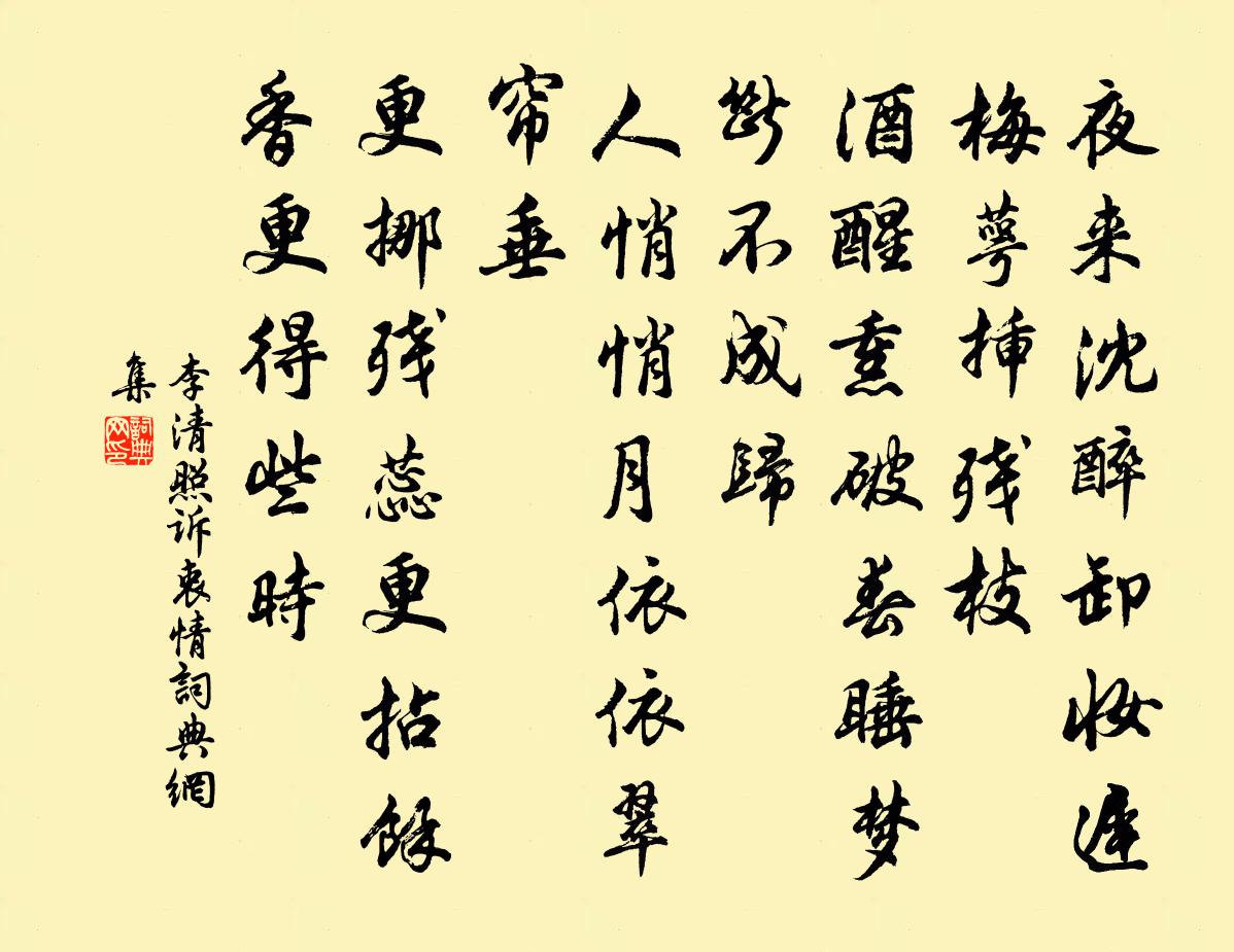 夜來沈醉卸妝遲,梅萼插殘枝。酒醒熏破春睡,夢斷不成歸。