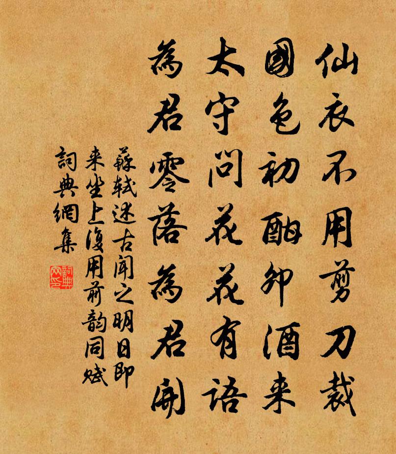 仙衣不用剪刀裁,國色初酣卯酒來。太守問花花有語,為君零落為君開。